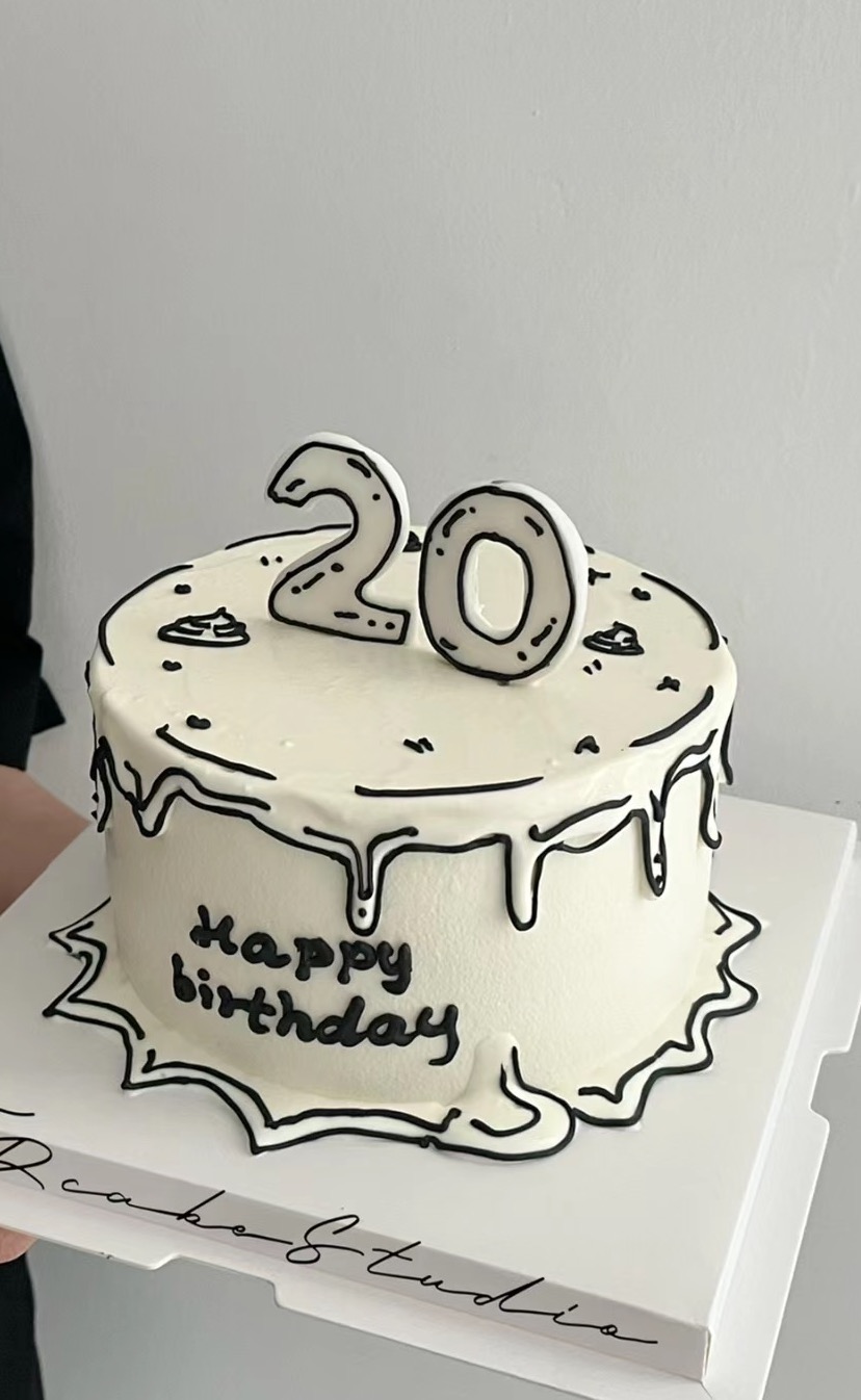 【优品系列】---二次元【黑白线条数字竖牌】蛋糕