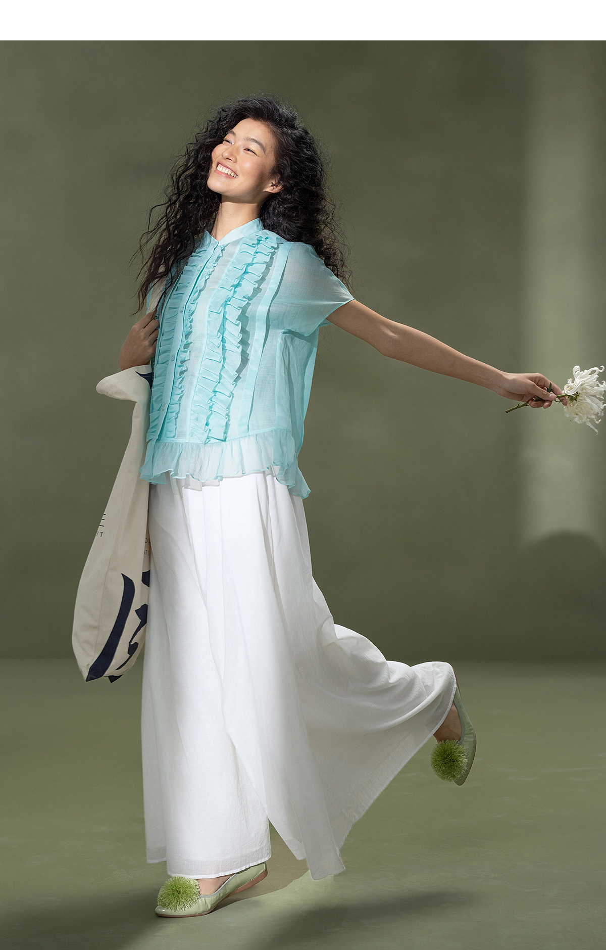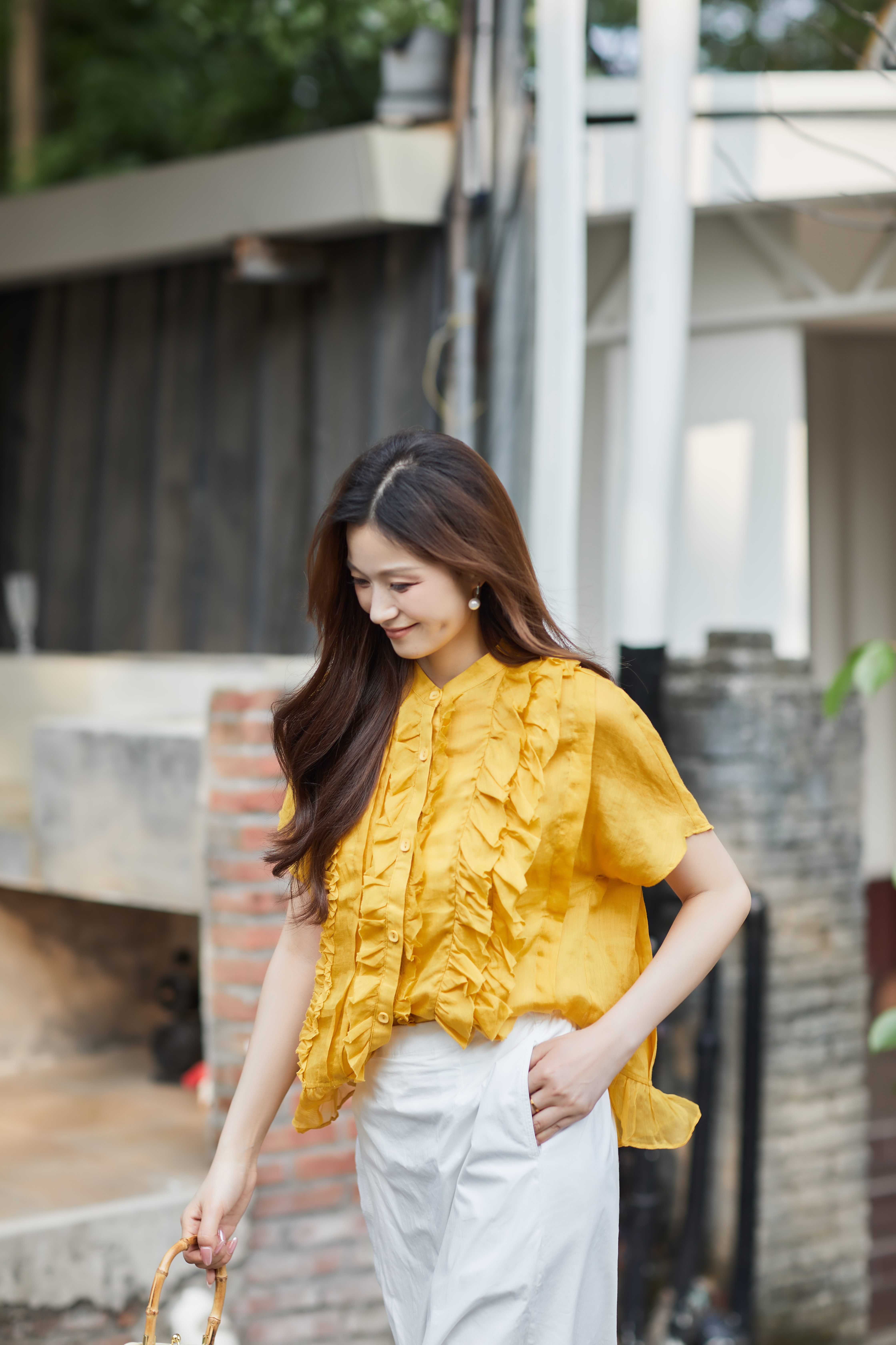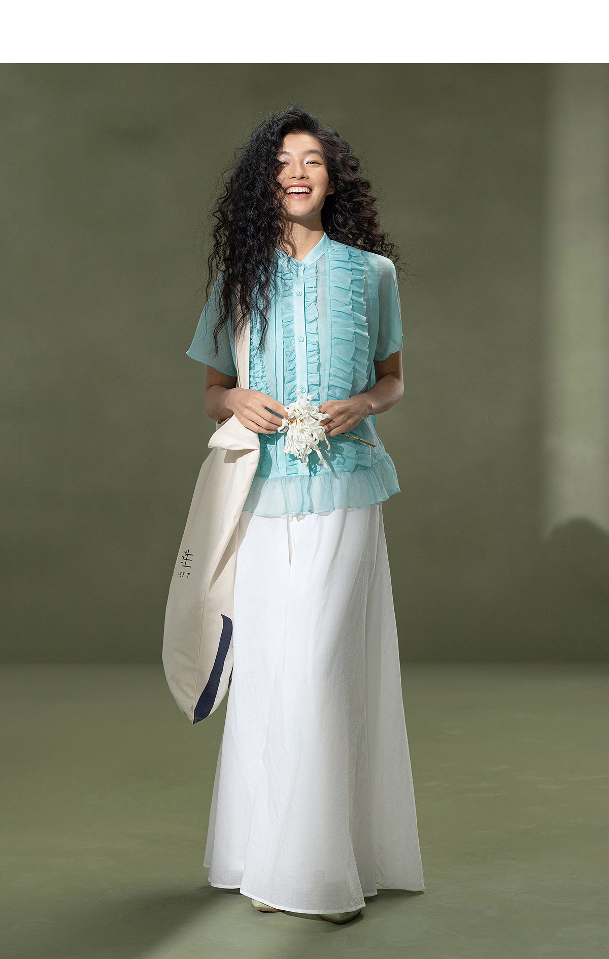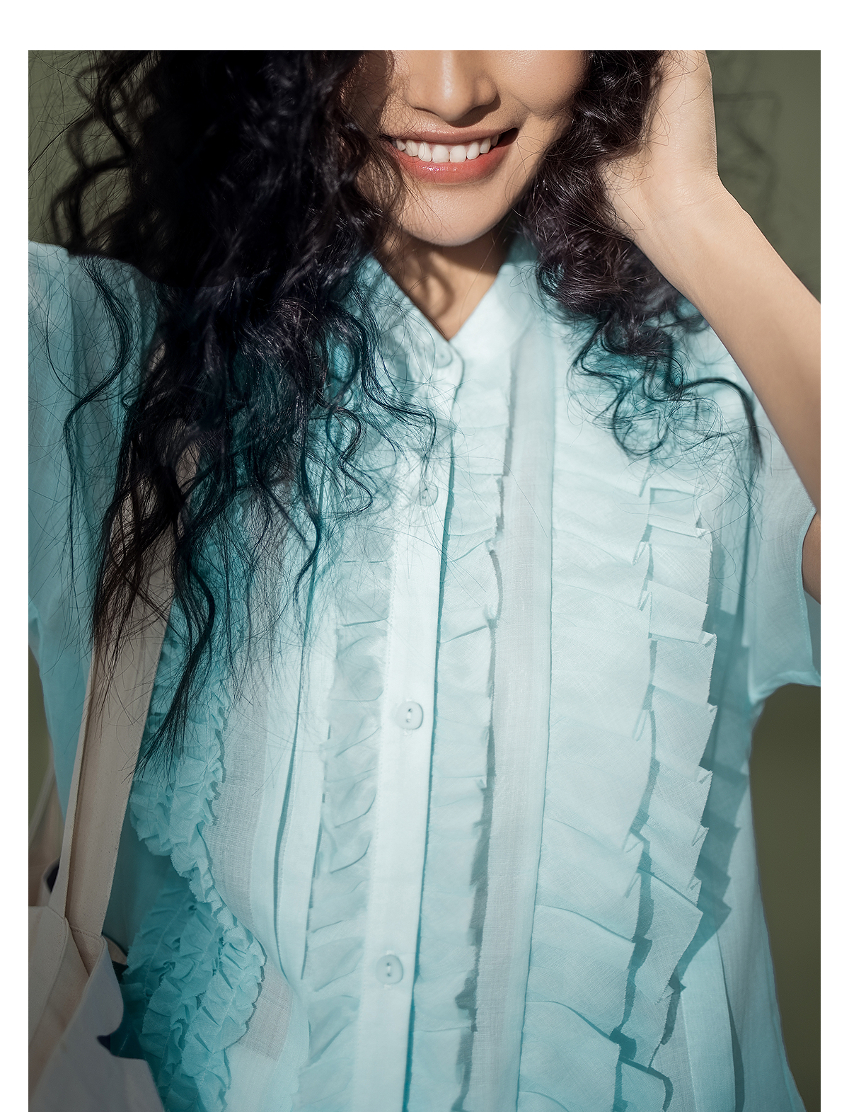 【林栖设计小店】荷影轻曳|苎麻优雅多色荷叶边夏新款花边衬衫上衣1962014