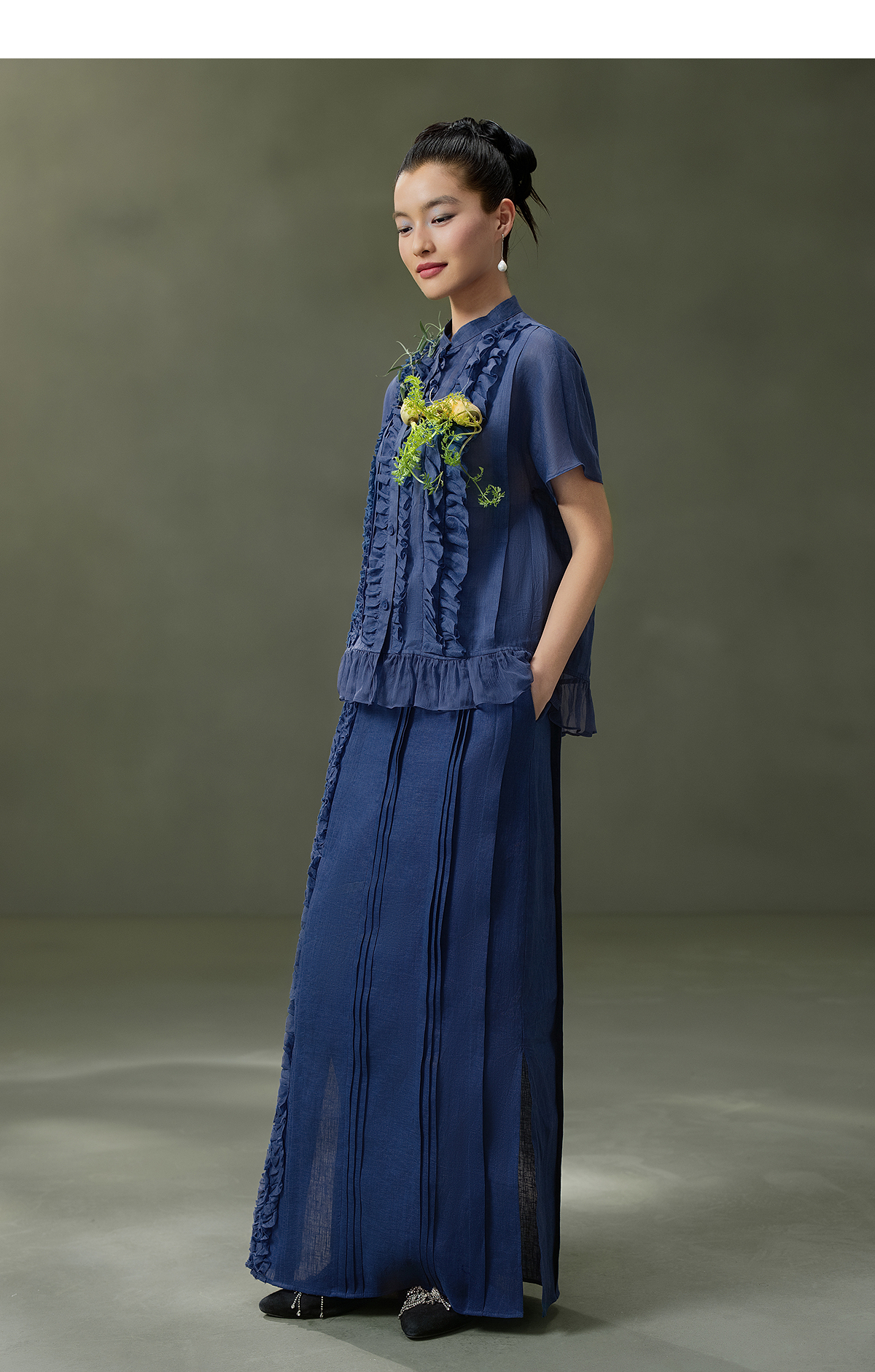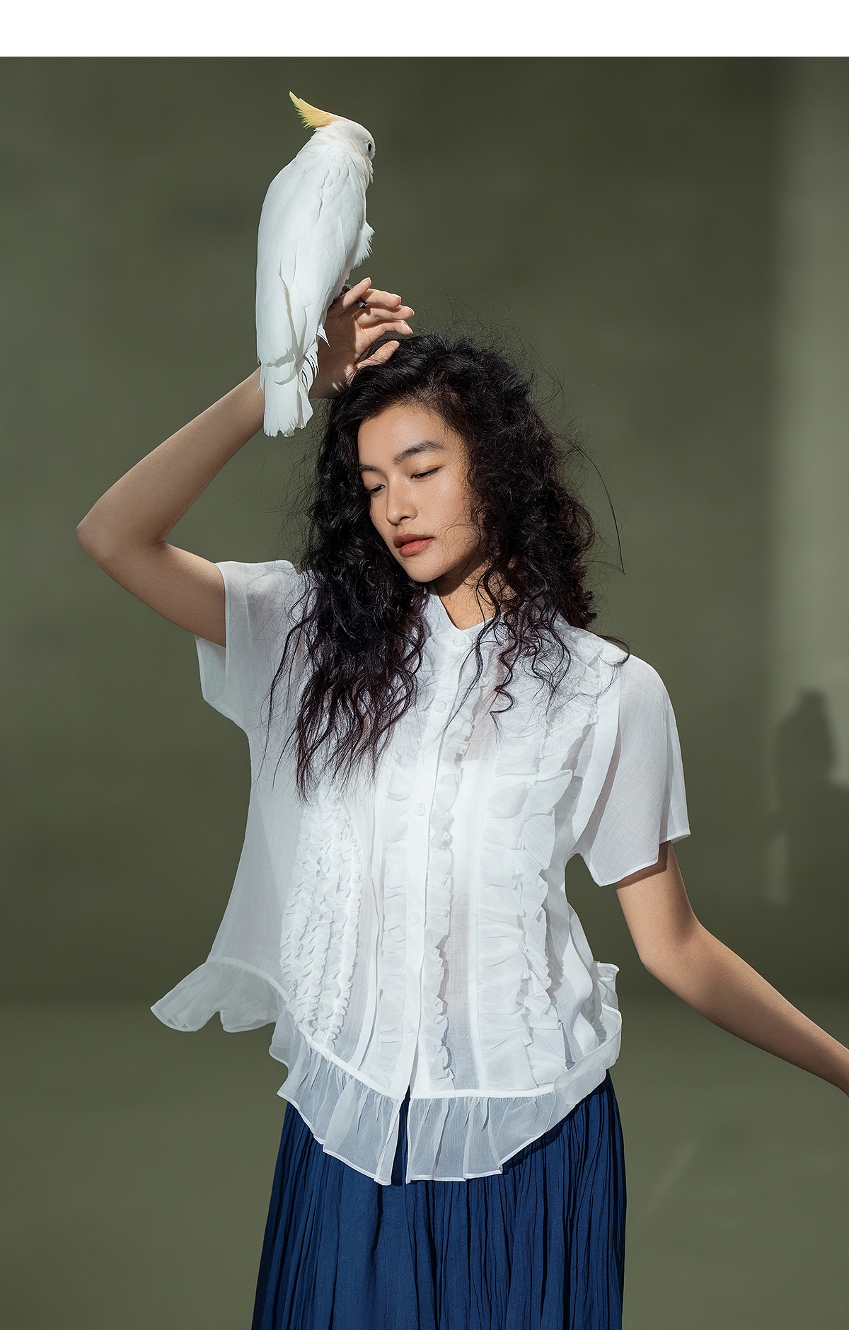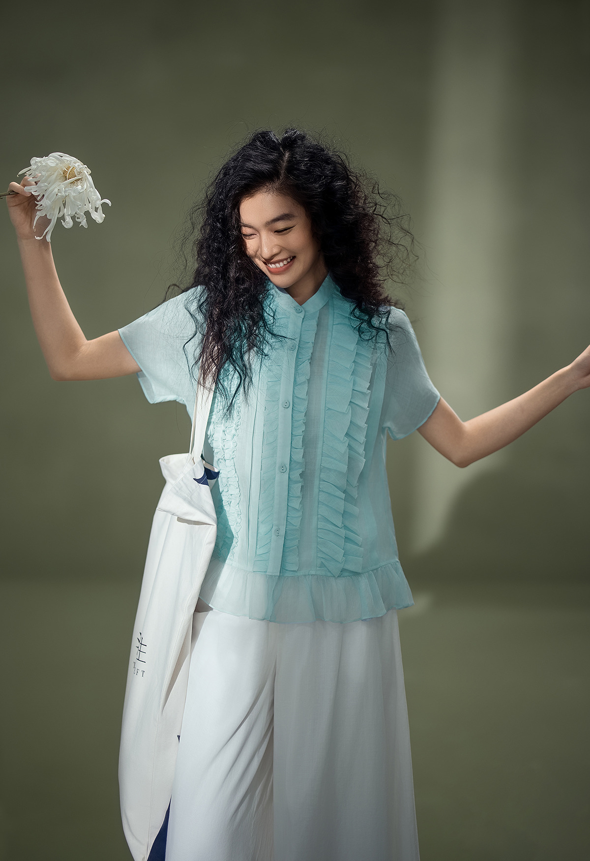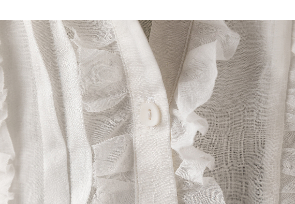 【林栖设计小店】荷影轻曳|苎麻优雅多色荷叶边夏新款花边衬衫上衣1962014