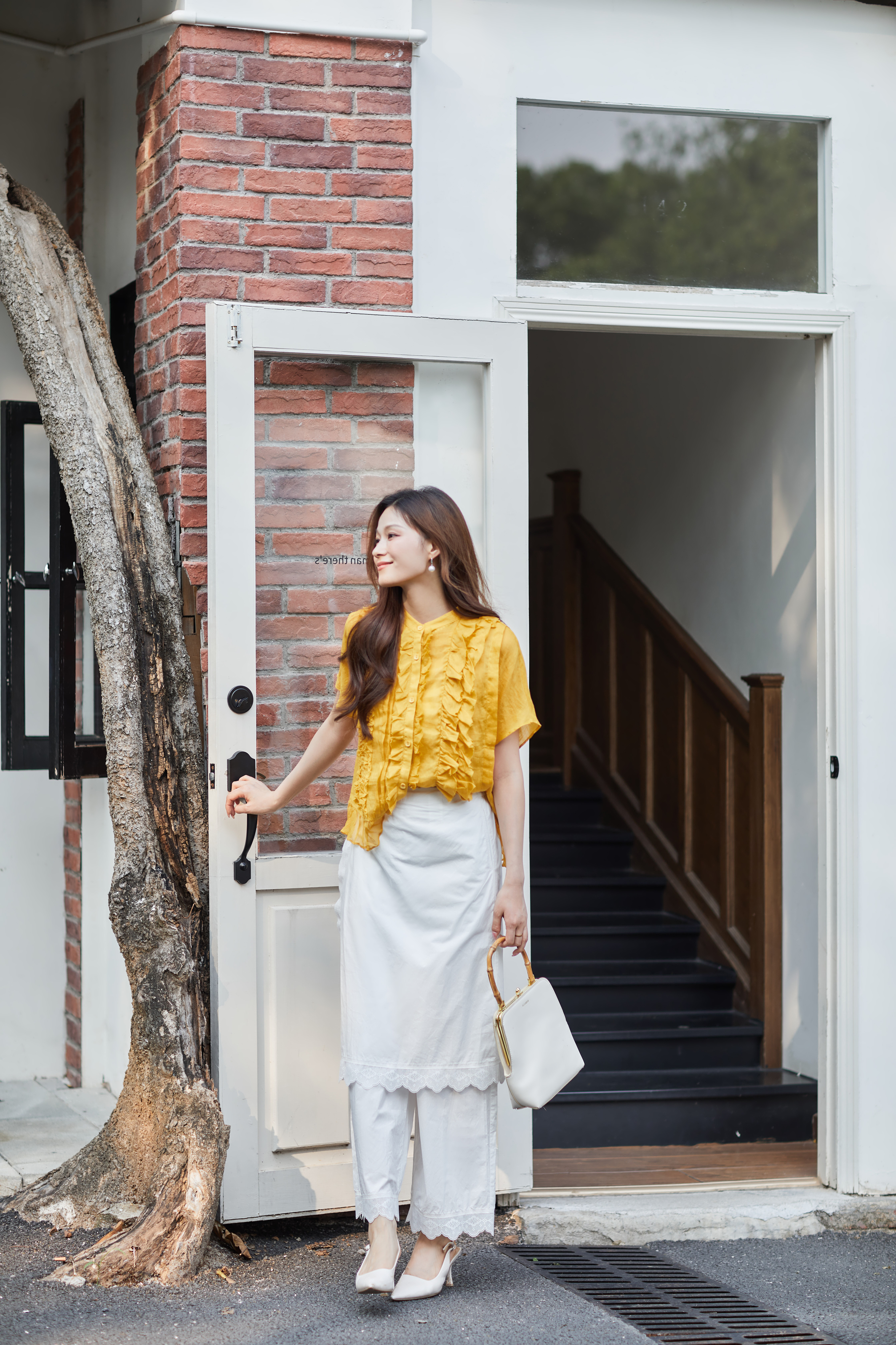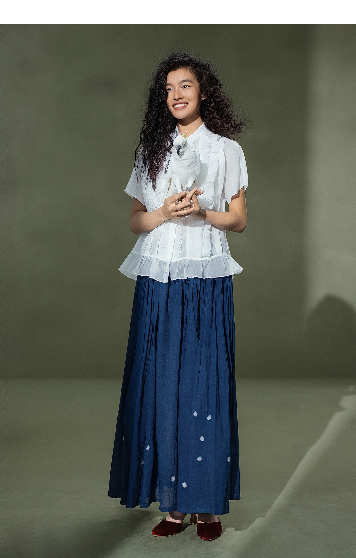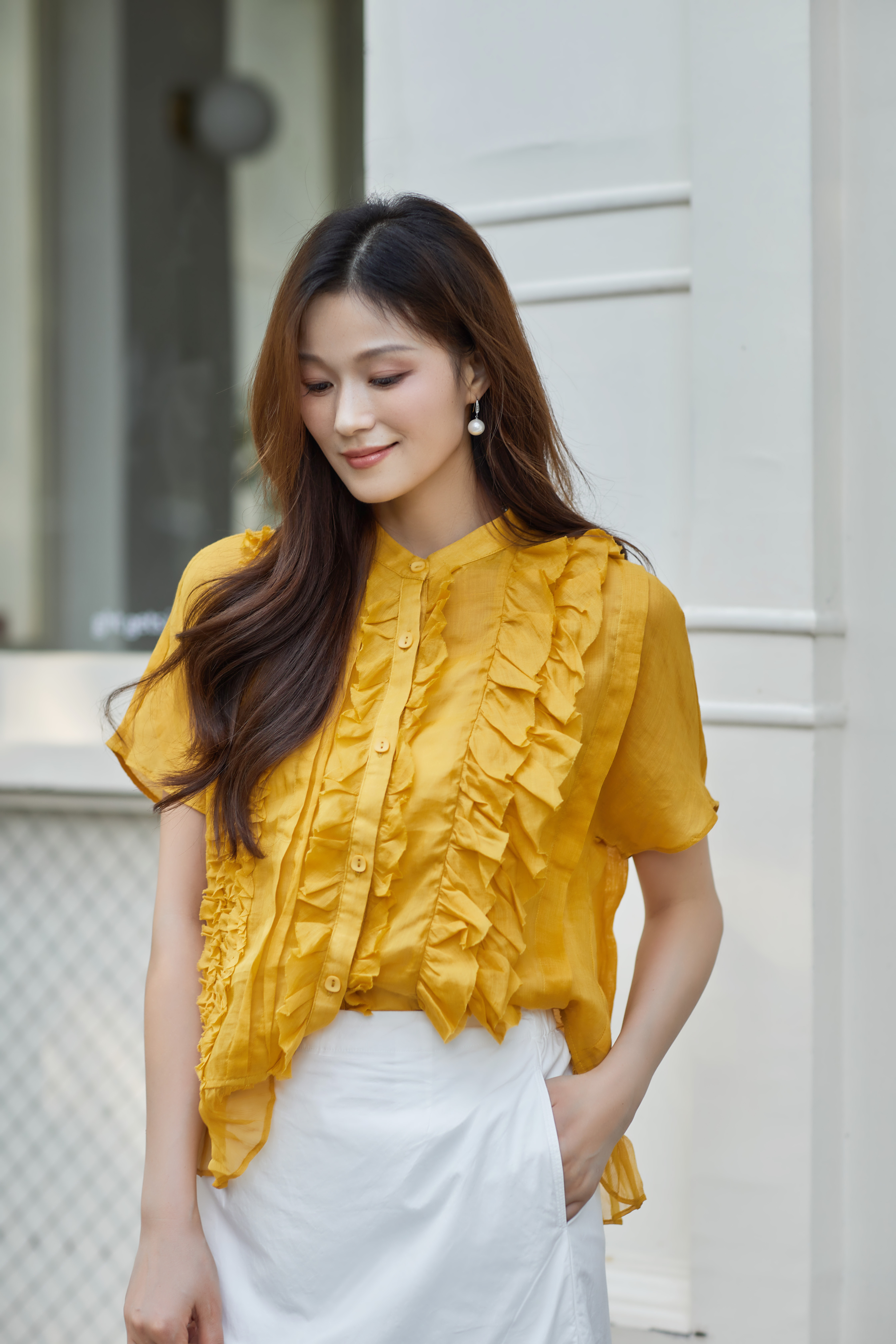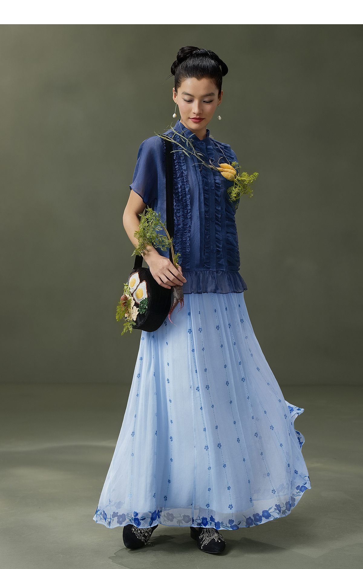 【林栖设计小店】荷影轻曳|苎麻优雅多色荷叶边夏新款花边衬衫上衣1962014