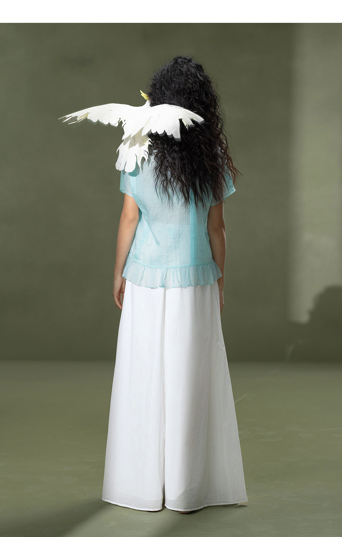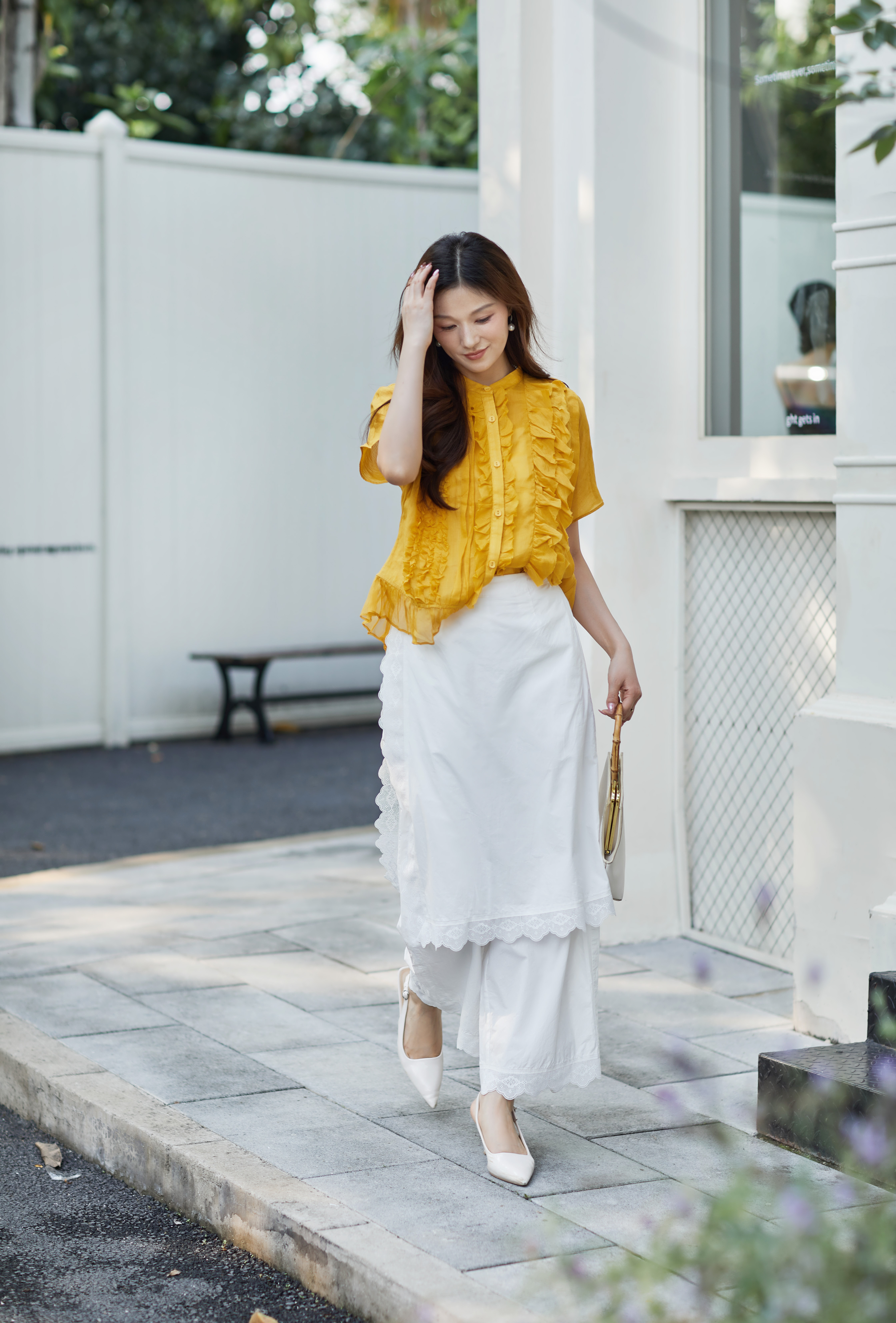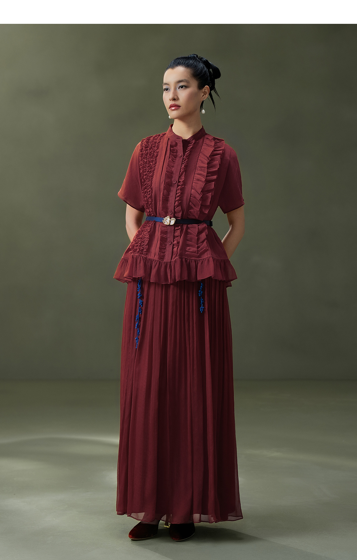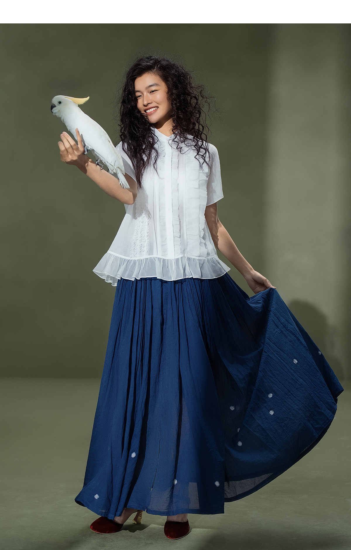 【林栖设计小店】荷影轻曳|苎麻优雅多色荷叶边夏新款花边衬衫上衣1962014