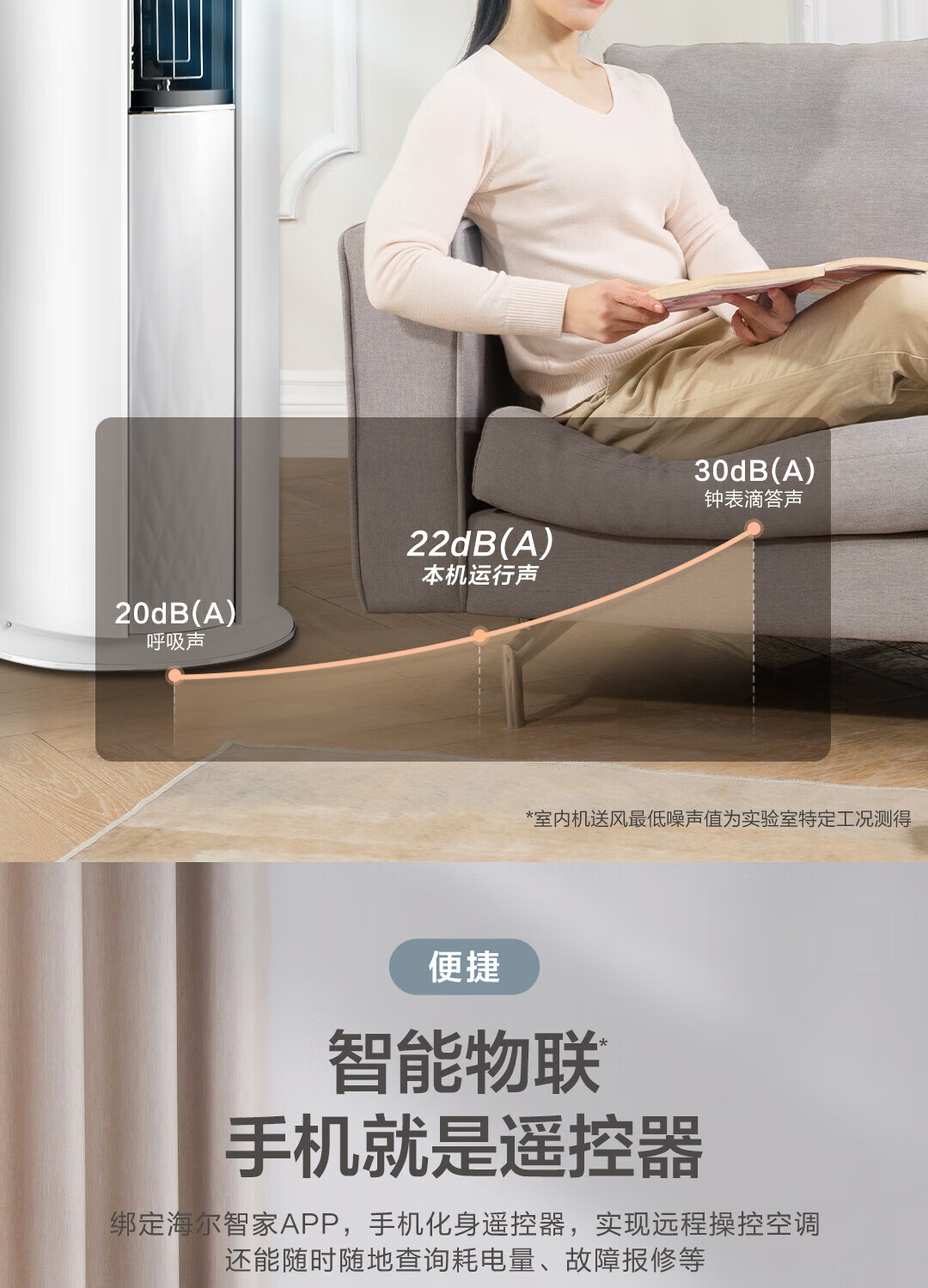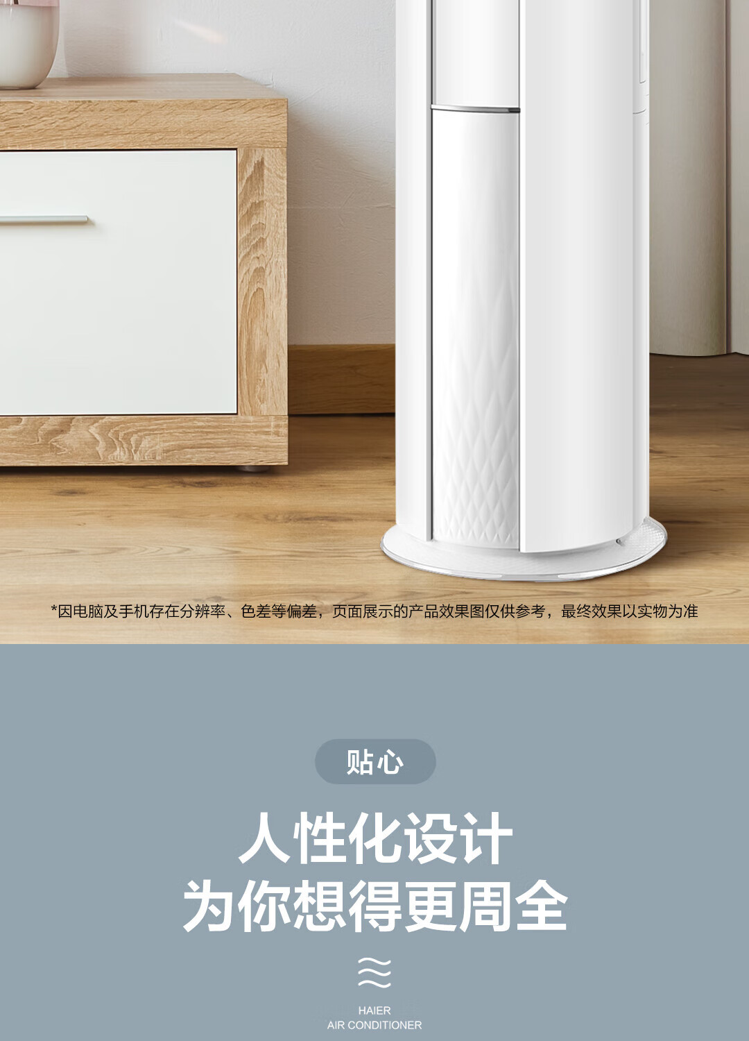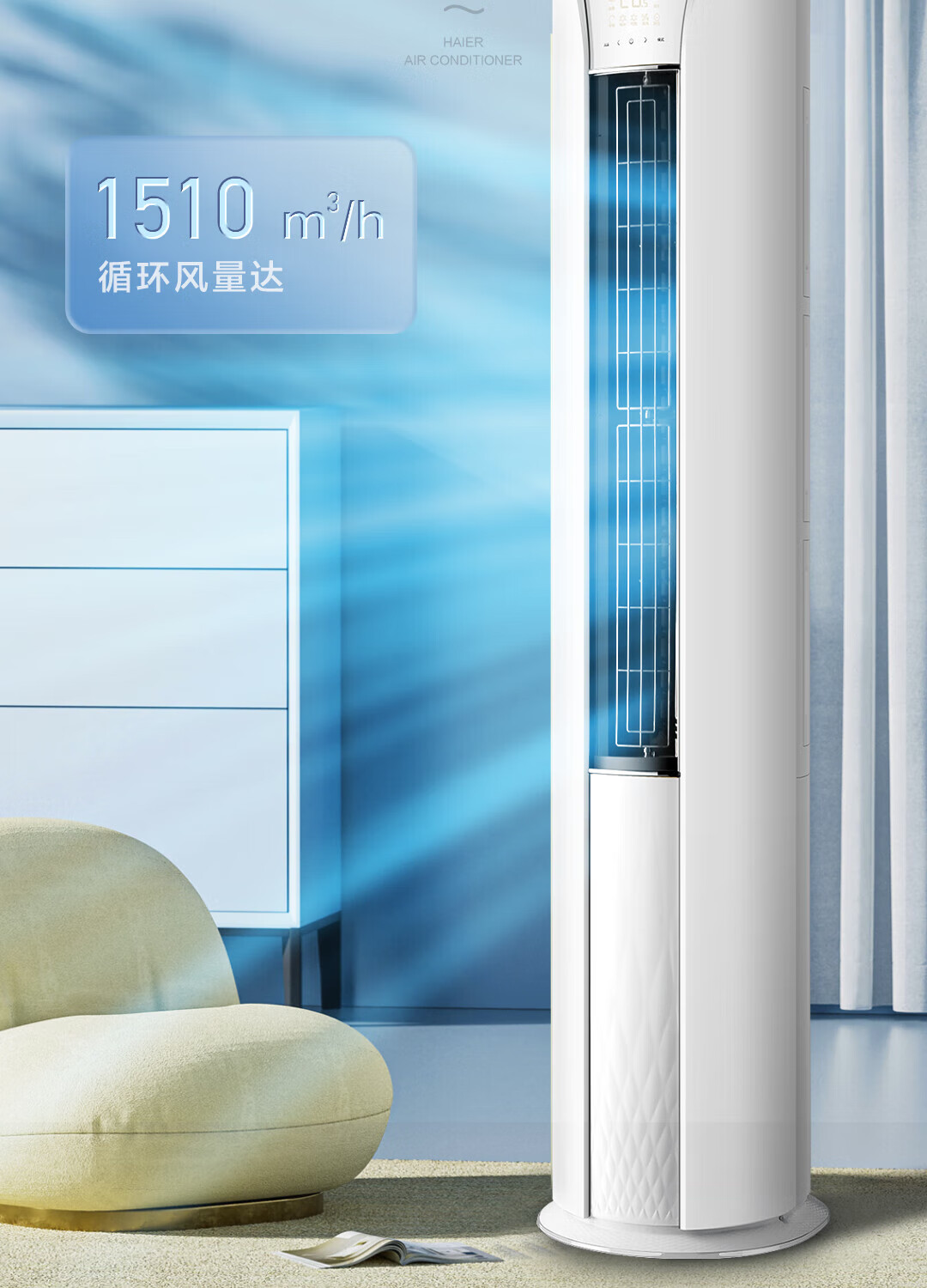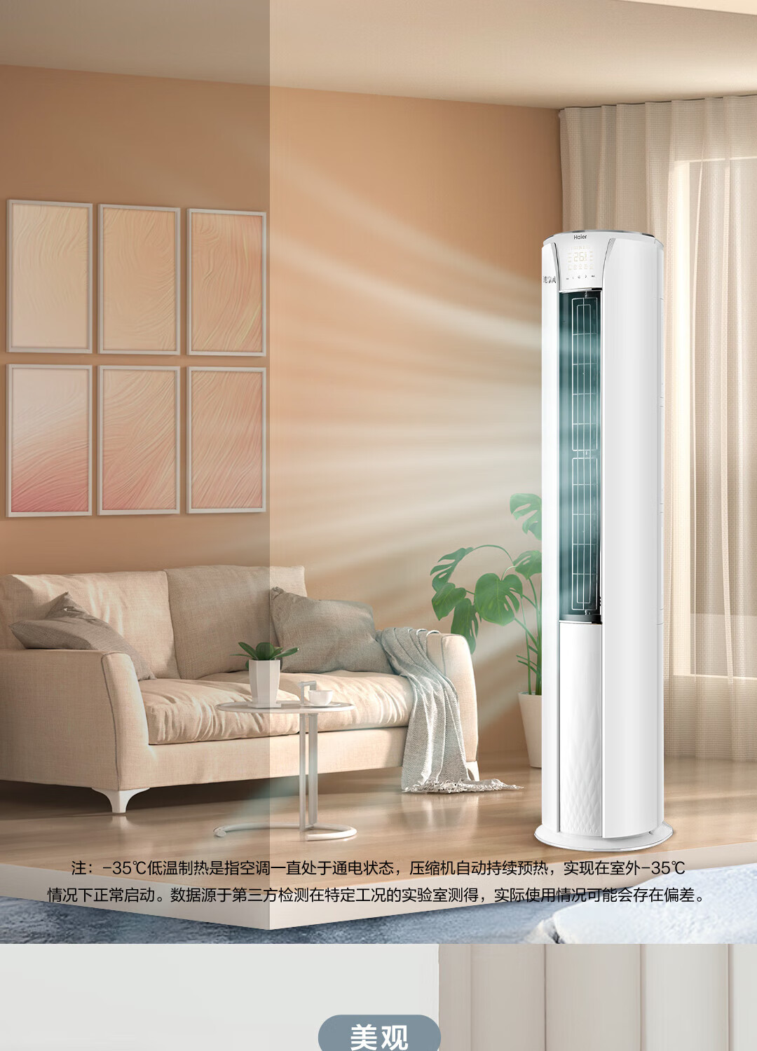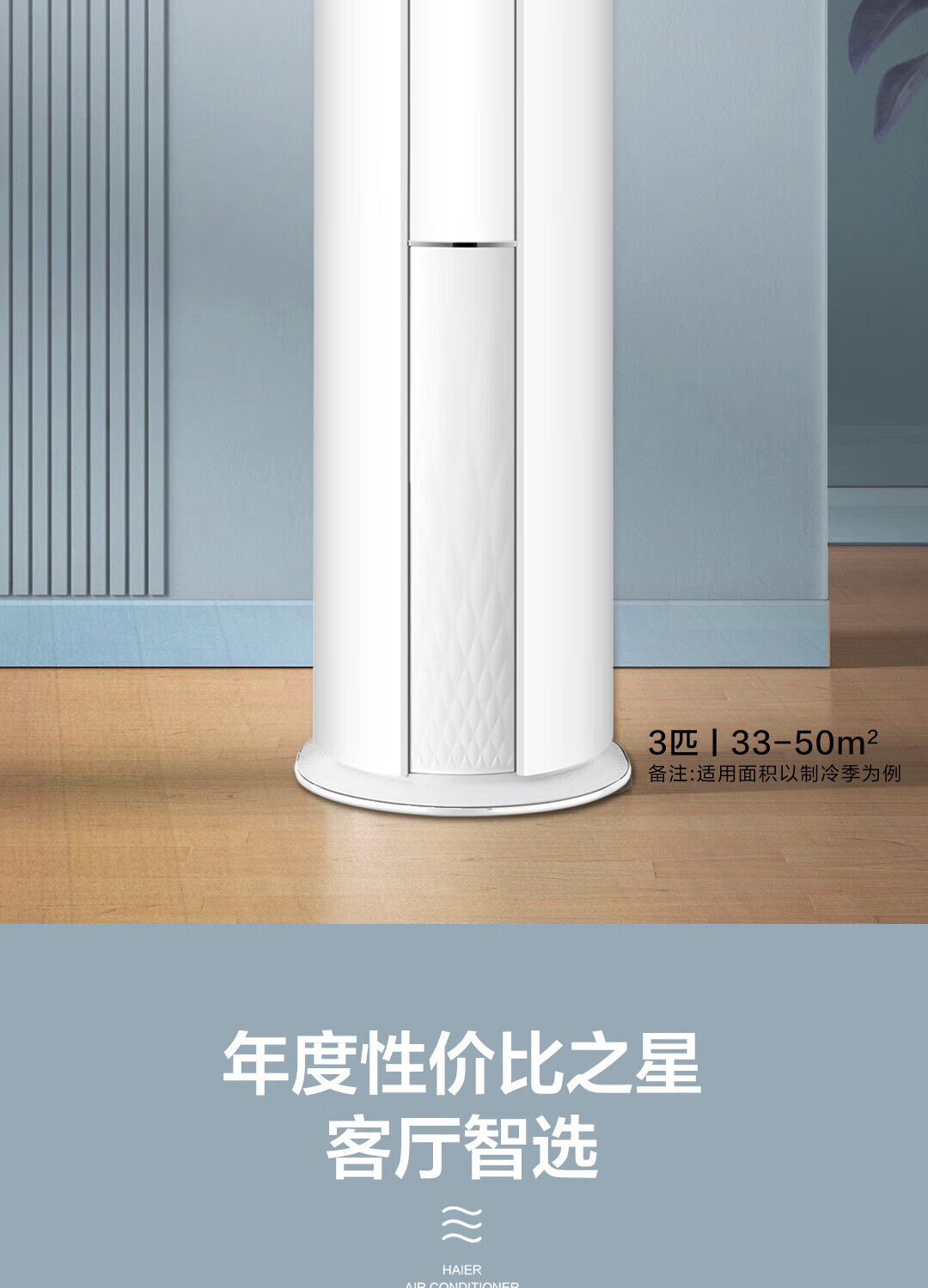 海尔空调立式柜机2匹/3匹变频一级能效 家用冷暖节能客厅圆柱式自清洁KFR-72LW/28PCA81U1