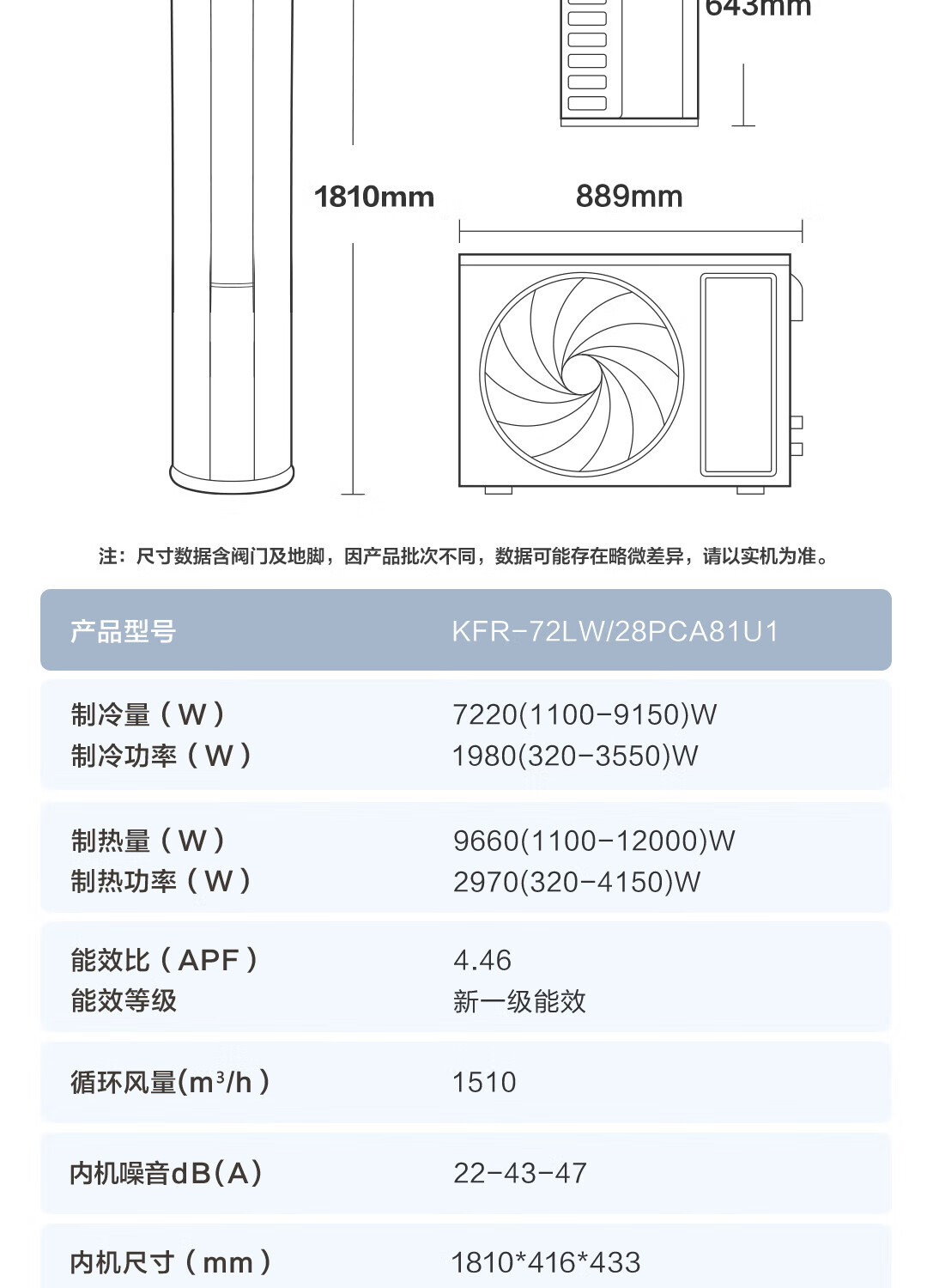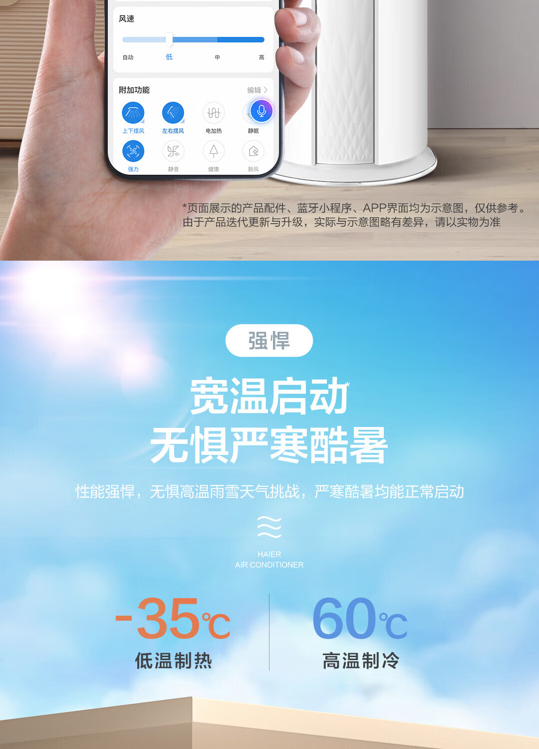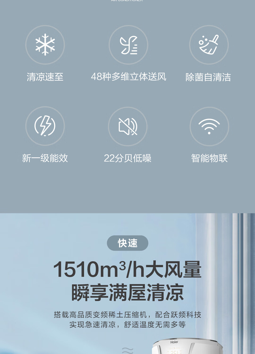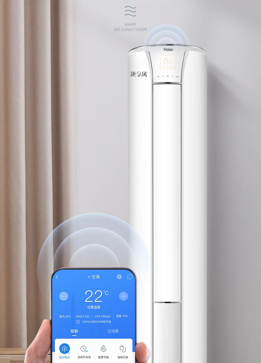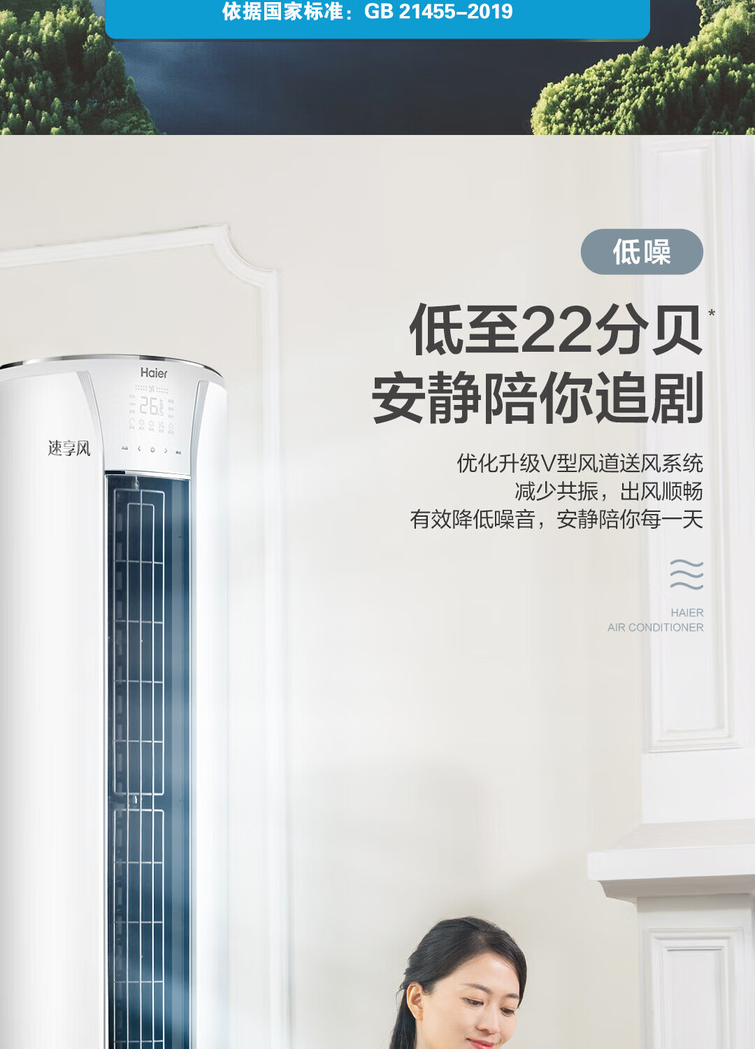 海尔空调立式柜机2匹/3匹变频一级能效 家用冷暖节能客厅圆柱式自清洁KFR-72LW/28PCA81U1