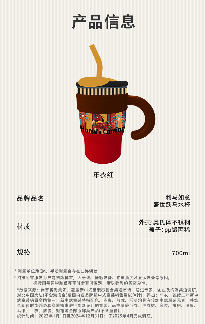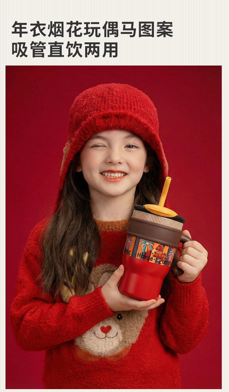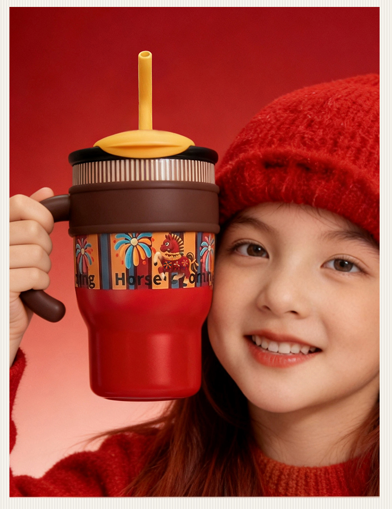 【盛世跃马水杯】吸管直饮两用保温杯