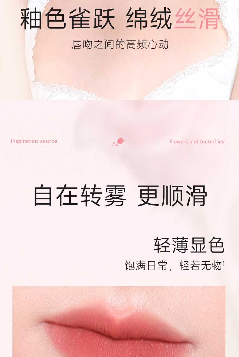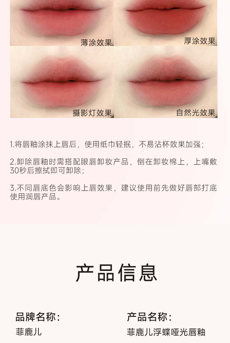 菲鹿儿浮蝶哑光唇釉丝绒雾面持久不易沾杯学生素颜显白口红