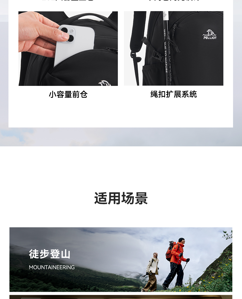 伯希和户外双肩包女轻量化徒步20升登山背包男旅行爬山防水书包