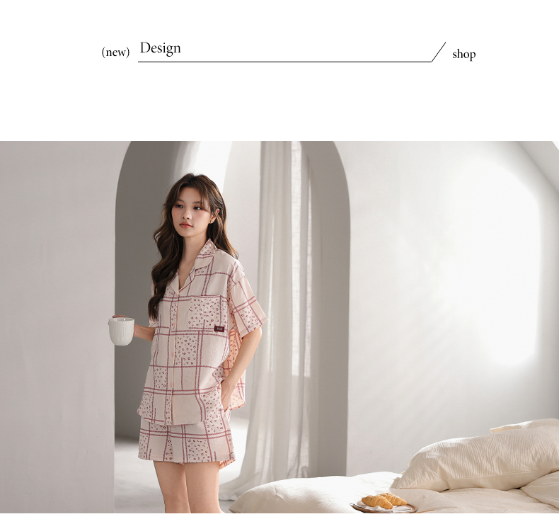 可人儿栗茵小众设计师新款泡泡绵夏季女短袖睡衣时尚可外出家居服