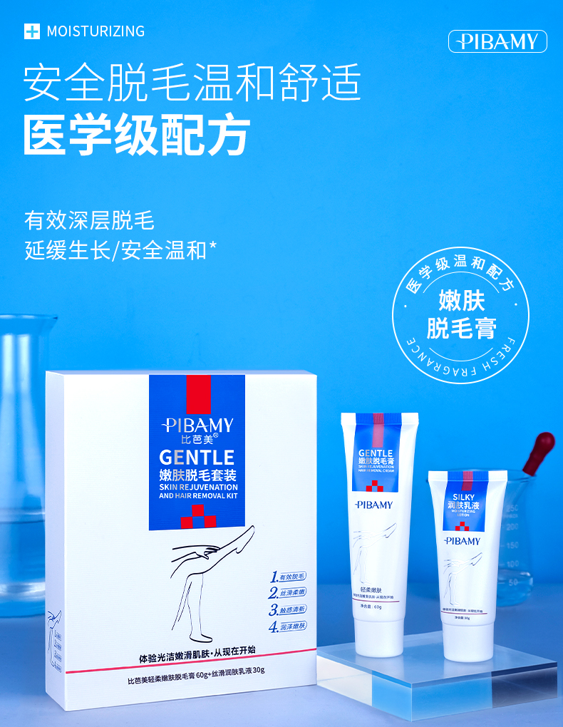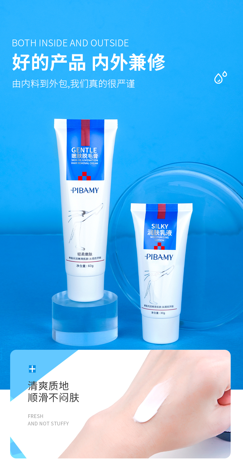 【买1送1】轻柔嫩肤脱毛套装 嫩肤脱毛膏60g+润肤乳液30g 告别毛手毛脚