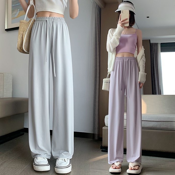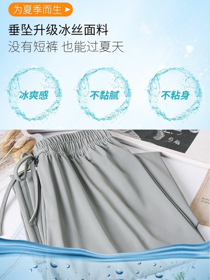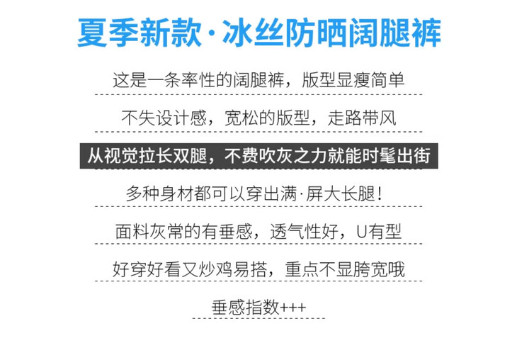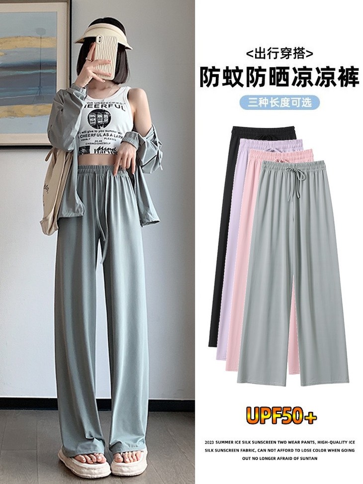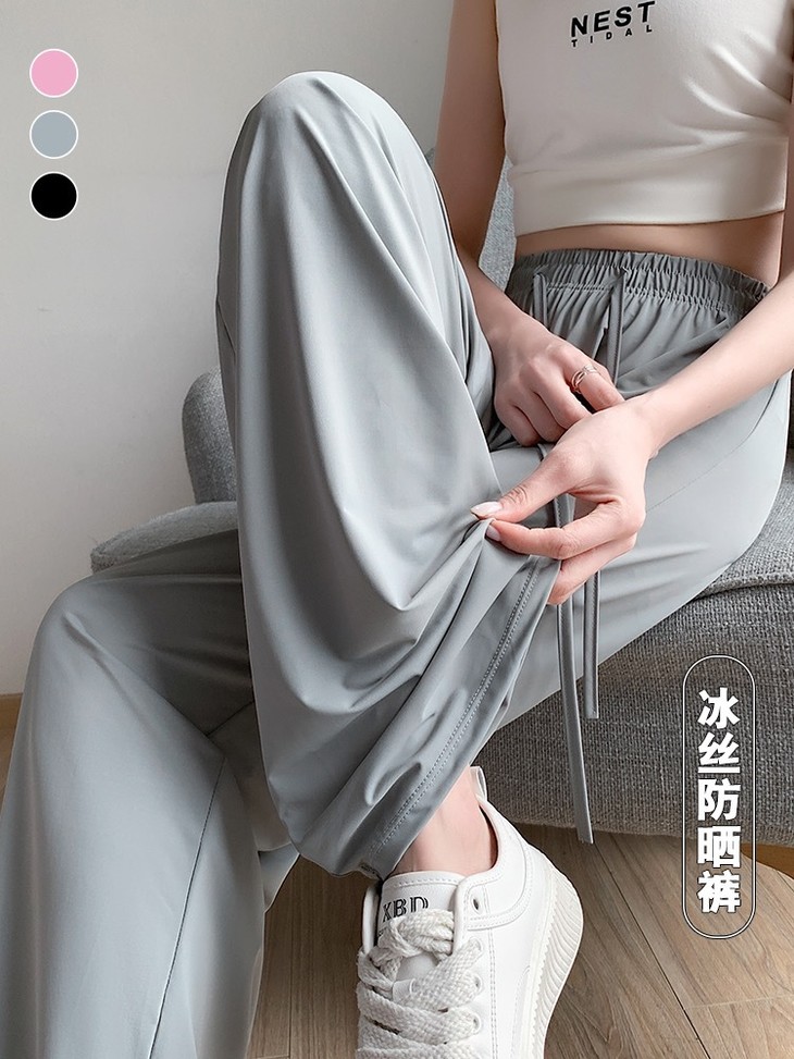 冰丝防晒裤女薄款高腰垂感直筒阔腿裤百搭显瘦宽松休闲速干裤