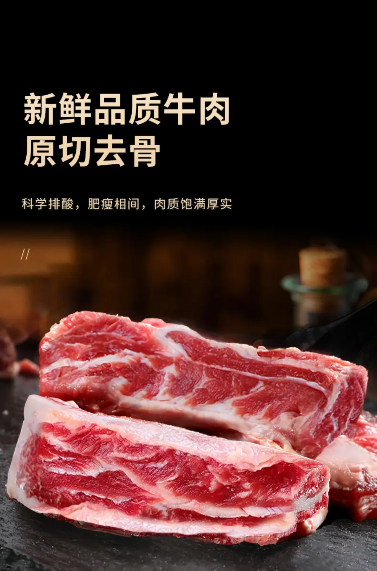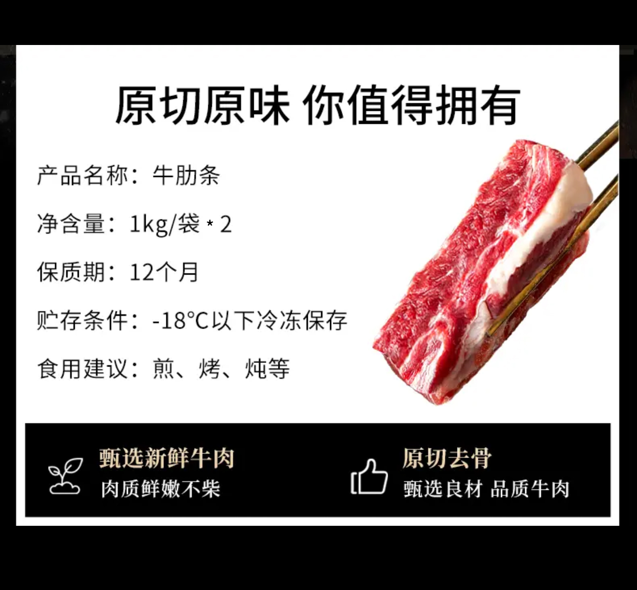 精选草原散养原切去骨牛肋条1000g*2袋