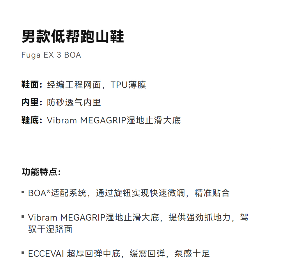 KAILAS凯乐石 男女款低帮跑山鞋(Fuga EX 3 BOA) KS2613119/KS2613219