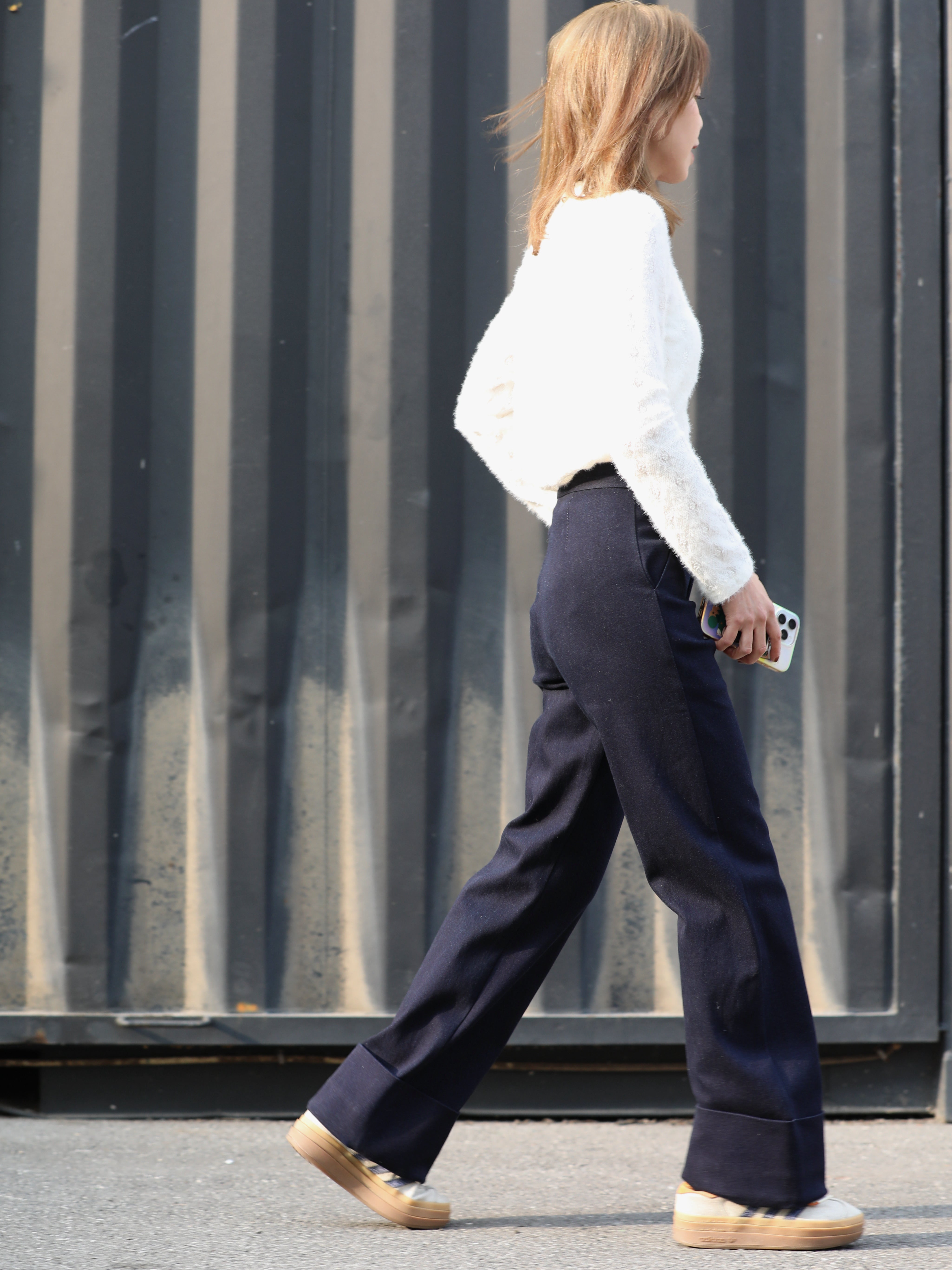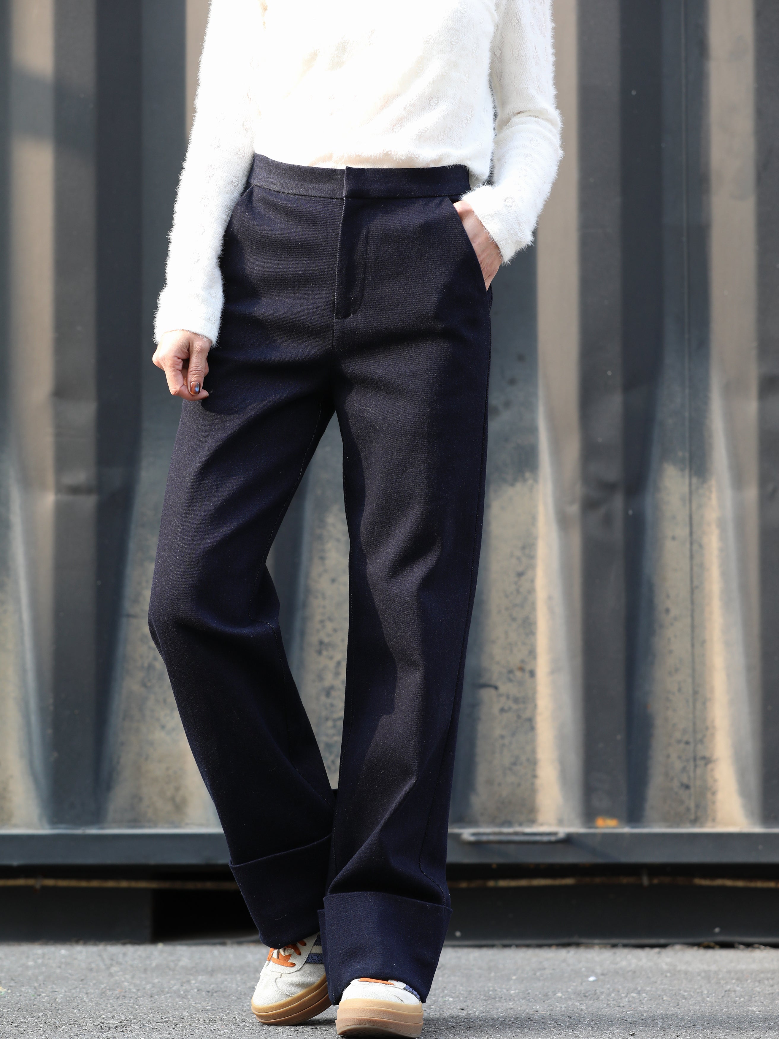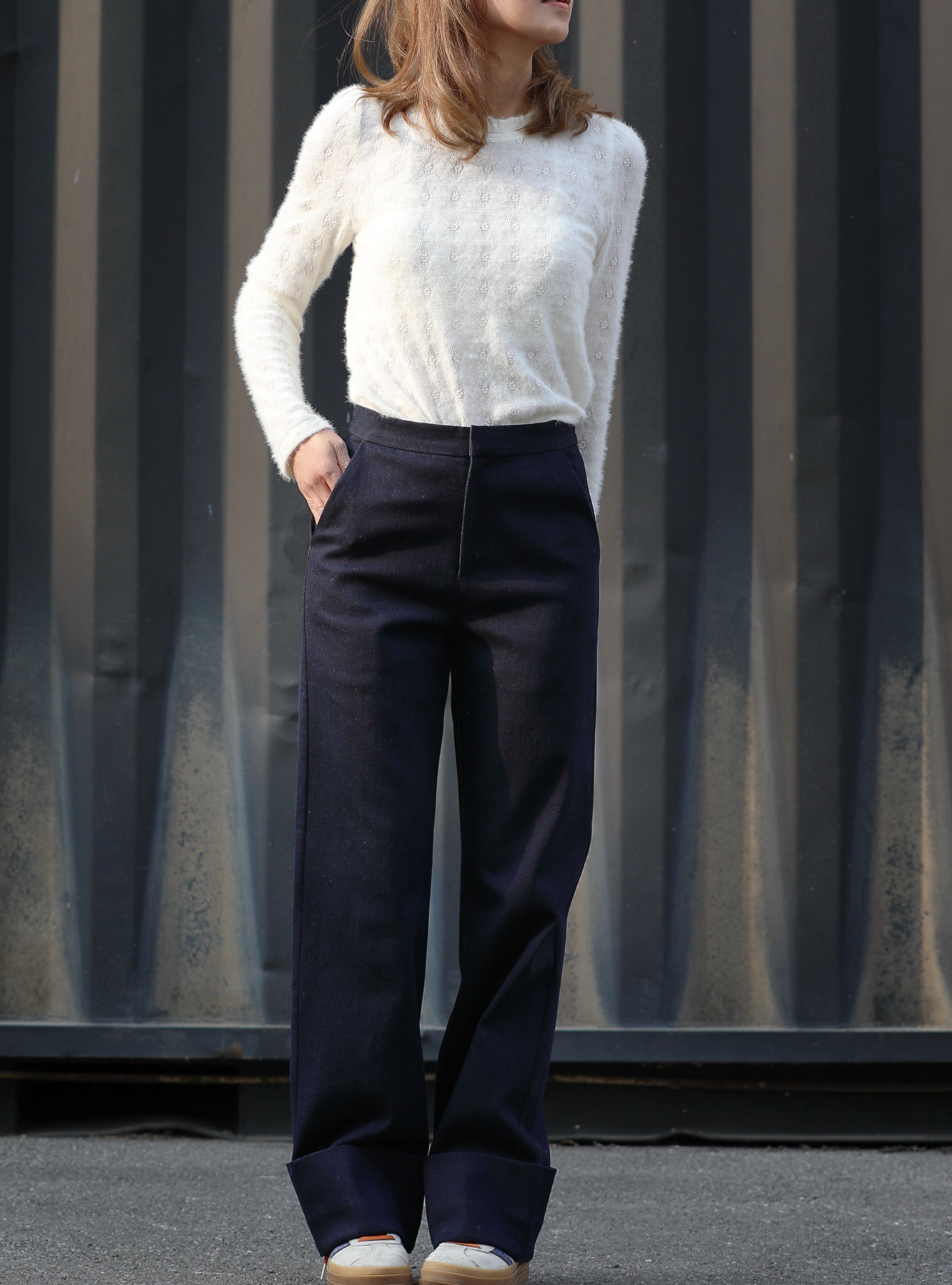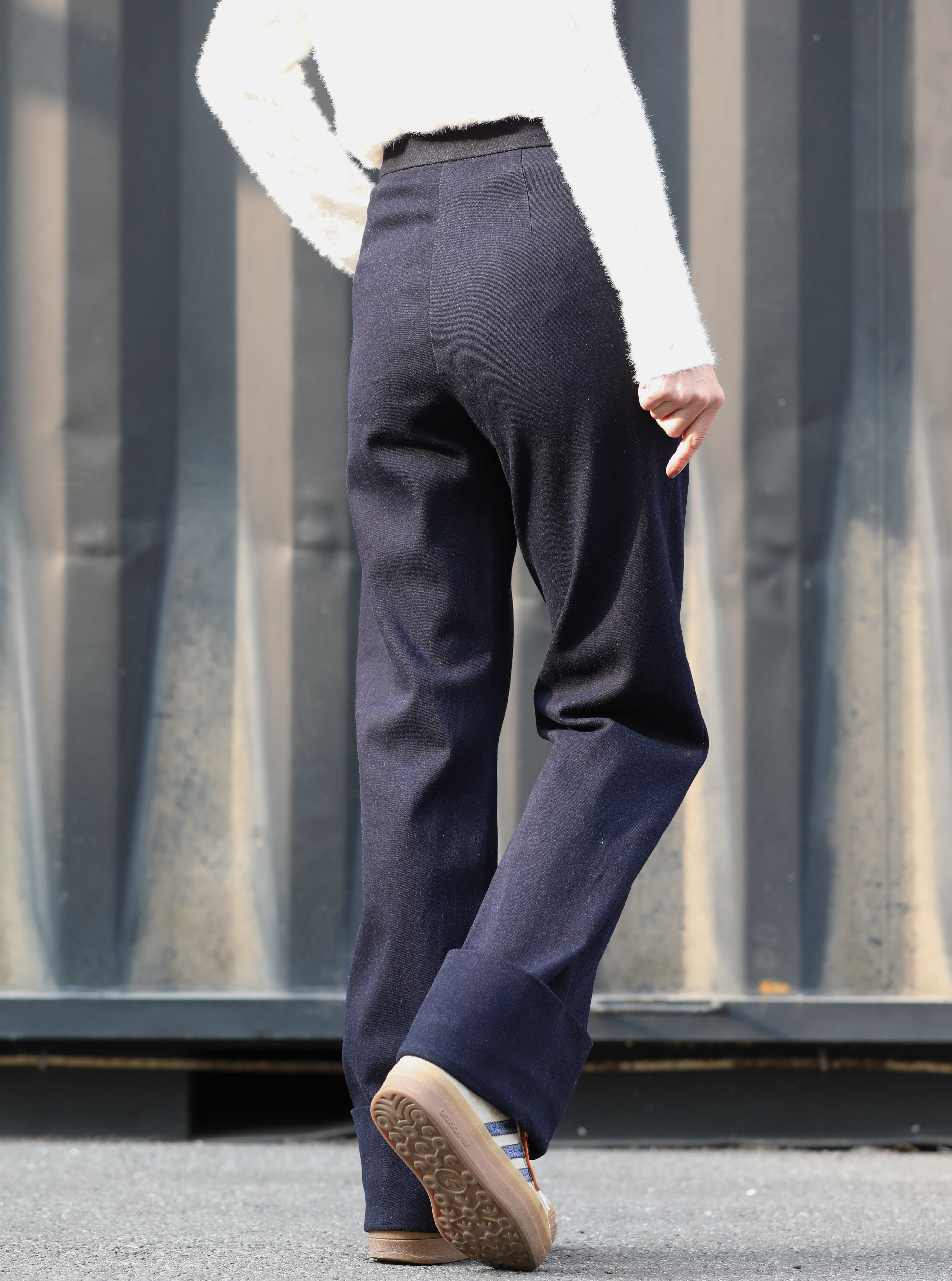TYNVIE 荷叶边袋口装饰廓形西装-蓝色白点
