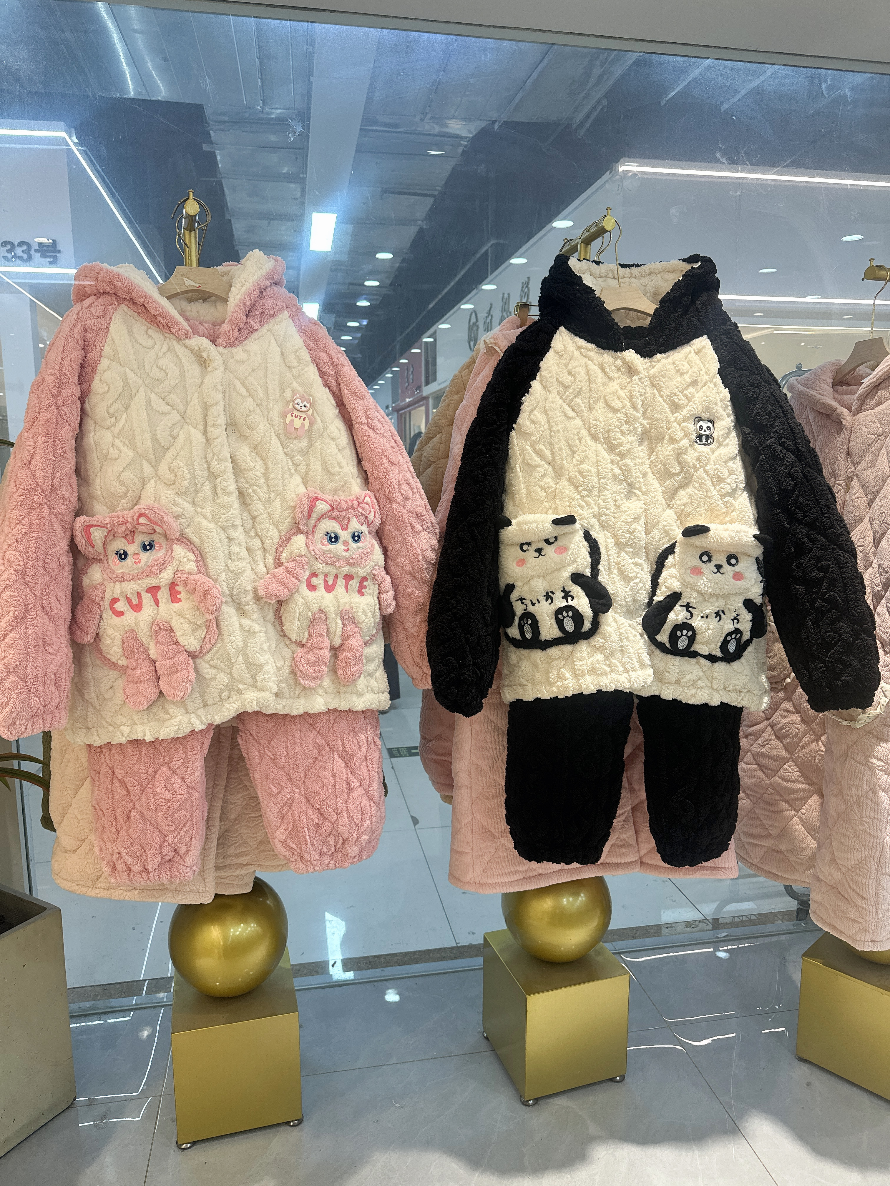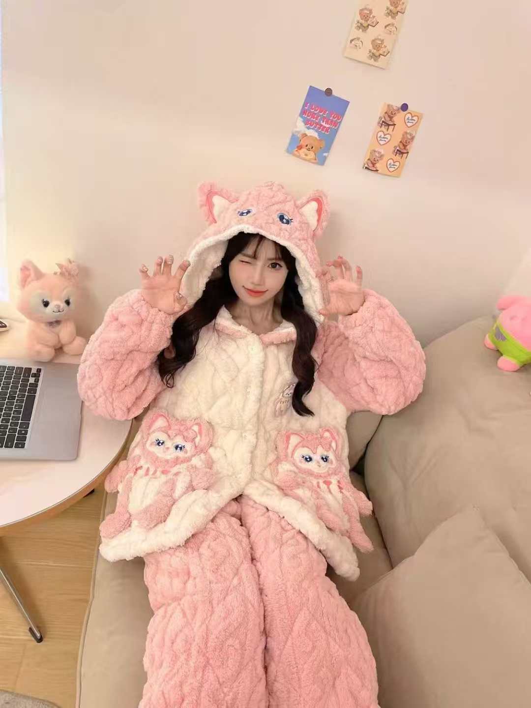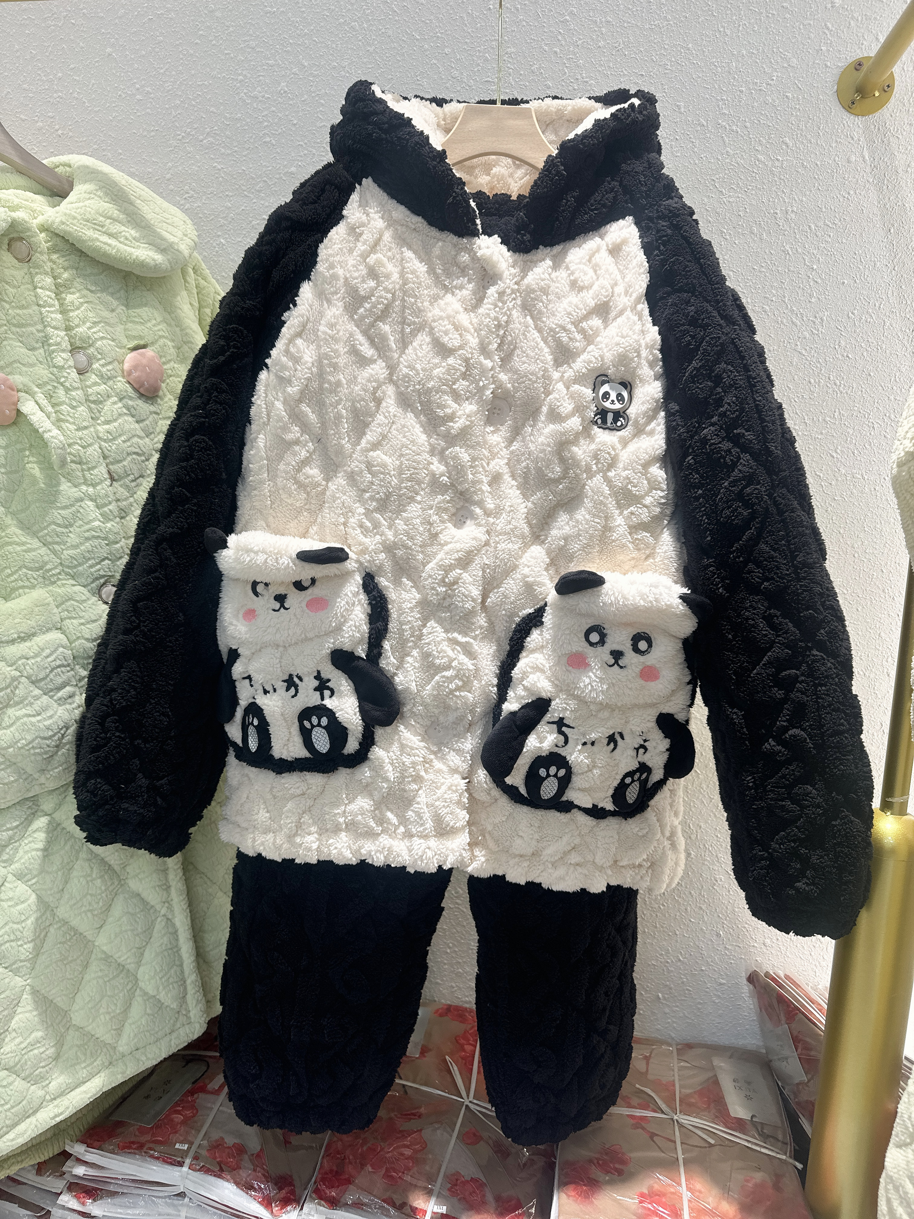 【YW】无忧购“清仓特价”可爱睡衣冬季女款加厚加绒保暖珊瑚绒三层夹棉小熊猫家居服套装(截单后3-5天发货)