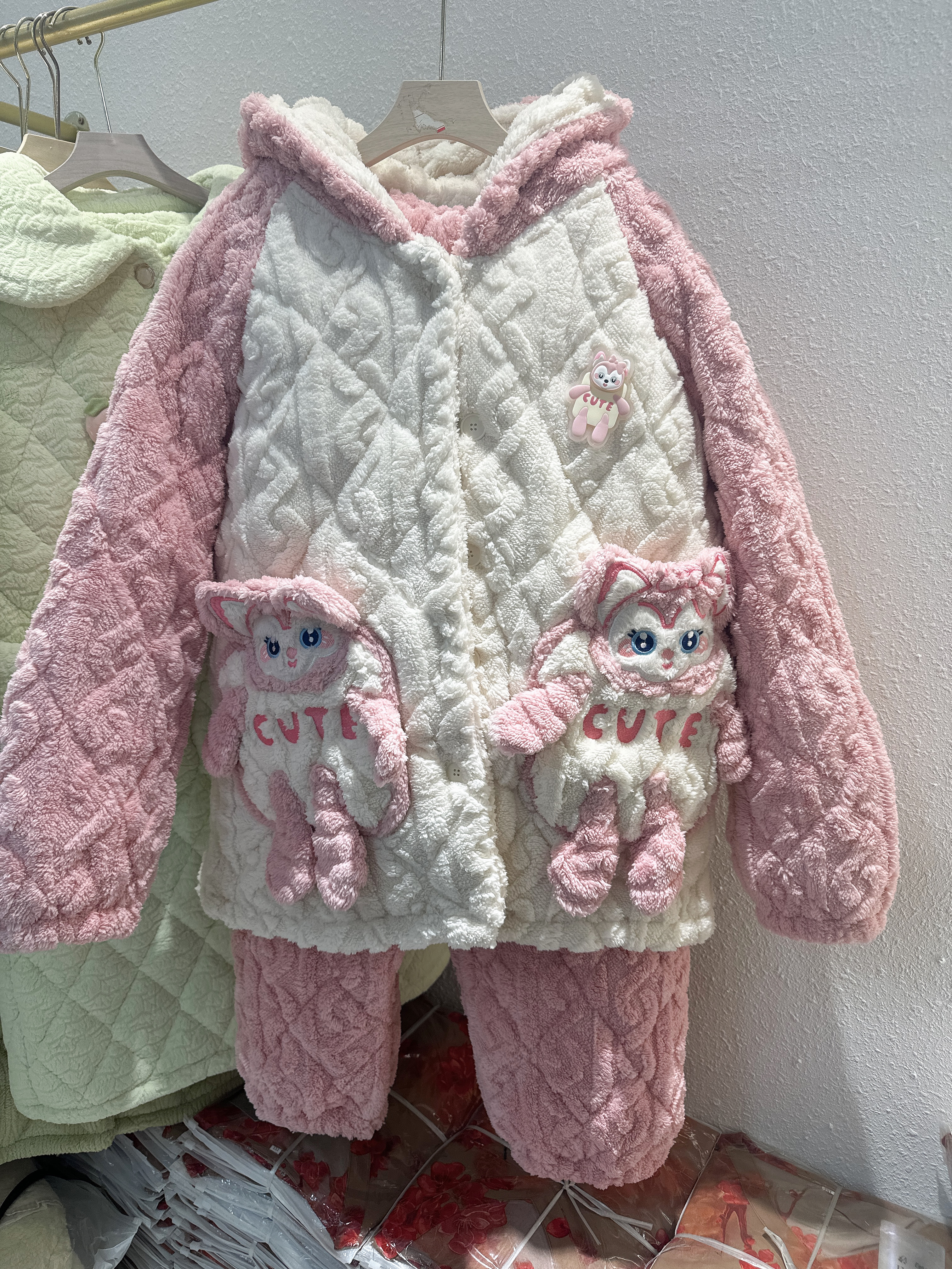 材质:珊瑚绒三层夹棉