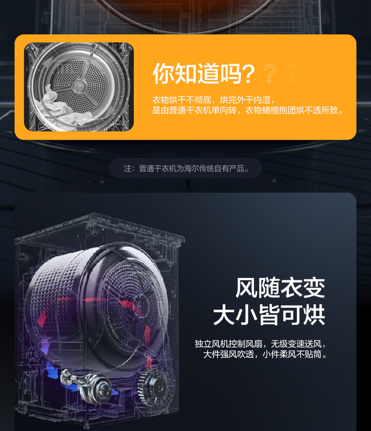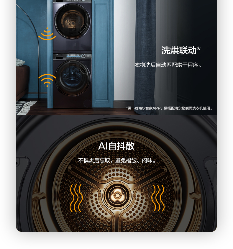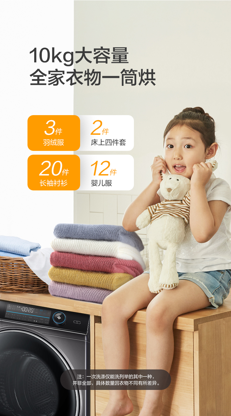 海尔(Haier)(251916)10公斤大容量 热泵干衣机 滚筒式 烘干机 全时正反转 纤美系列HBNS100-FQ176U1洗衣机