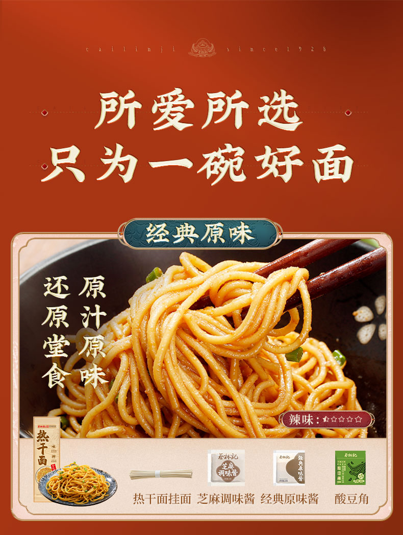 【199积分+59.9元】蔡林记袋装武汉热干面16包(内含2种口味原味/红油味)