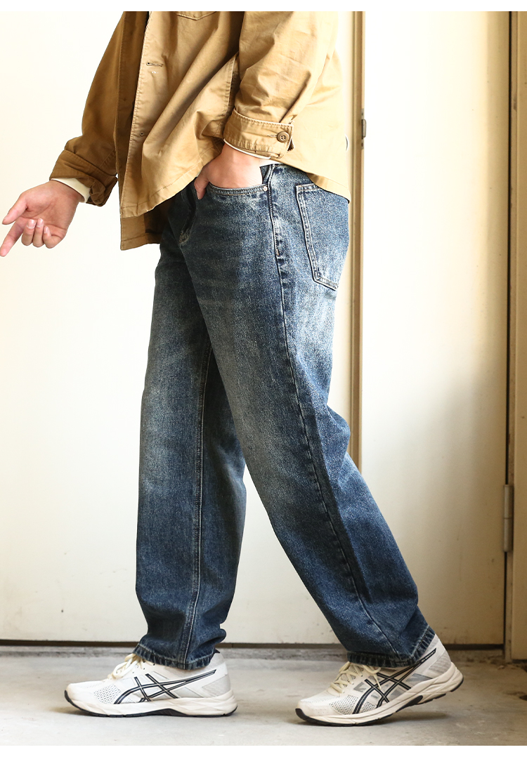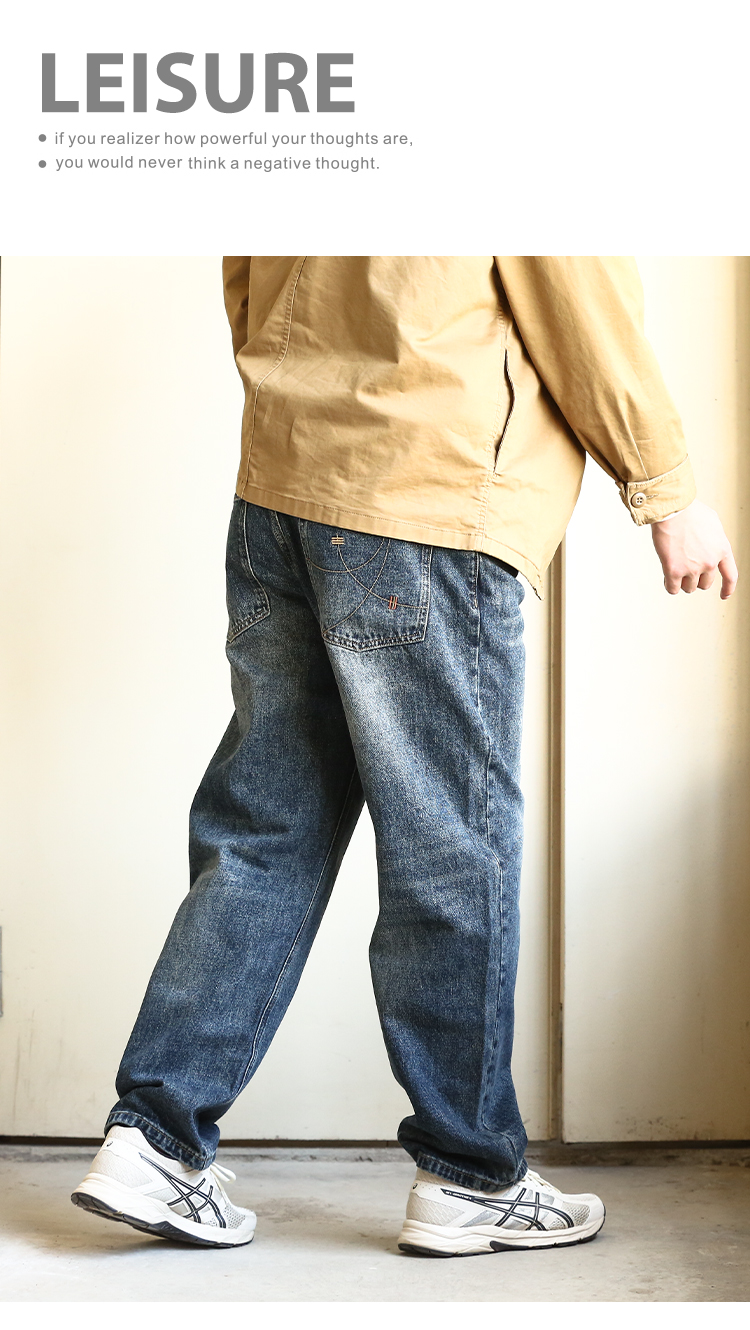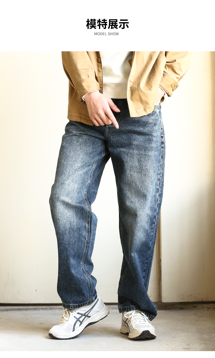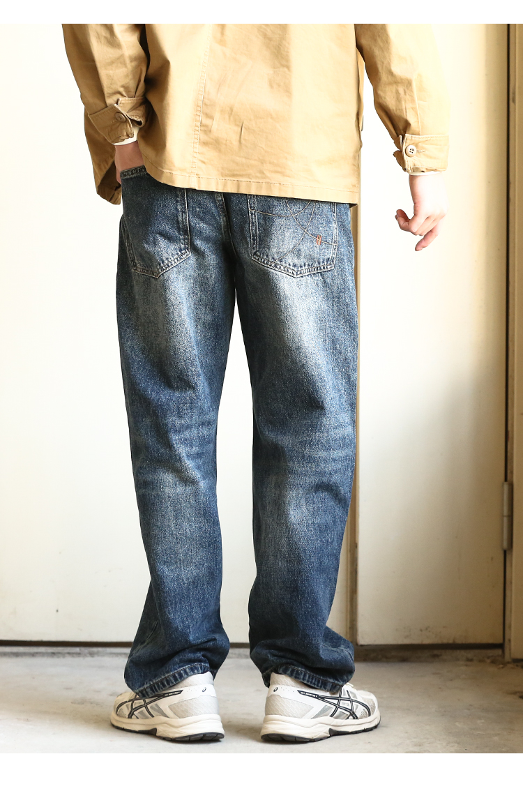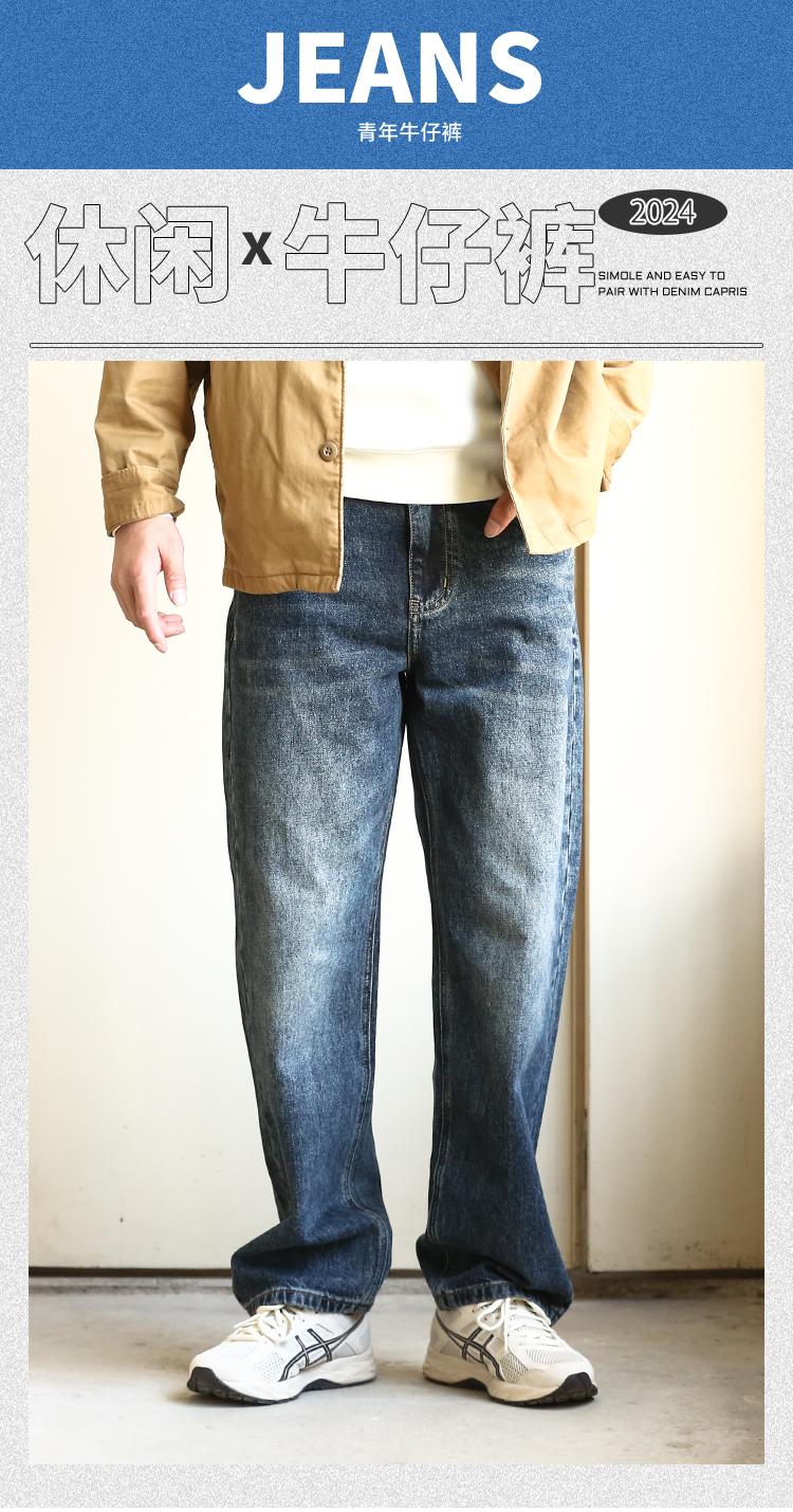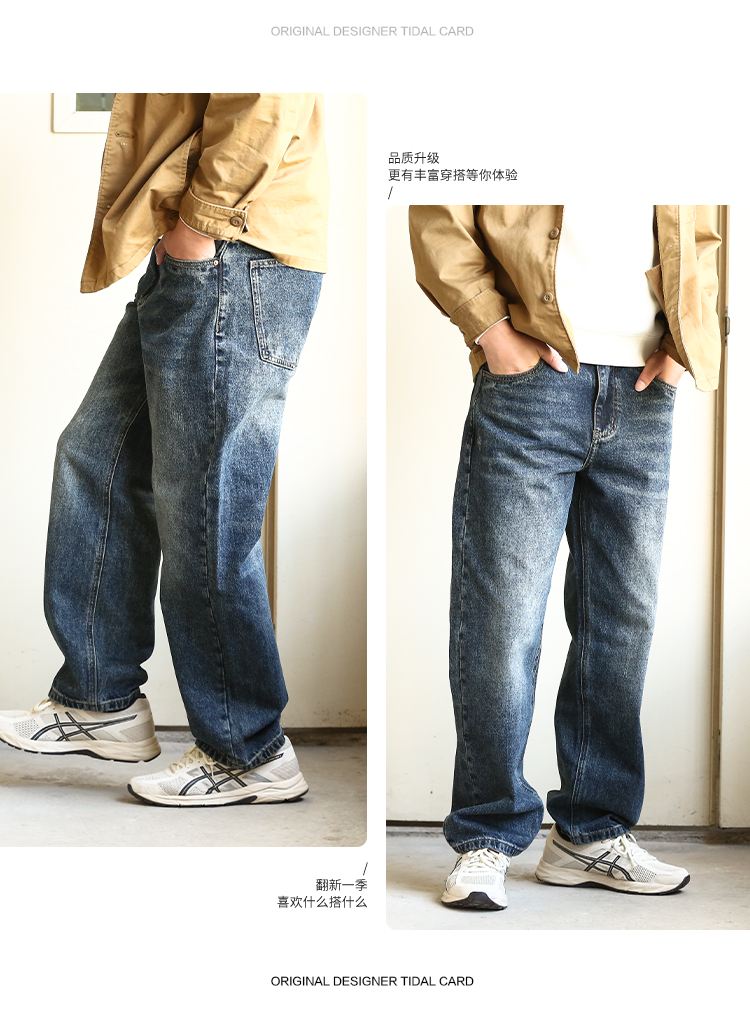 DRONKOO 2024 正常腰表袋红绿双杠刺绣微吊磨小直筒中厚牛仔长裤