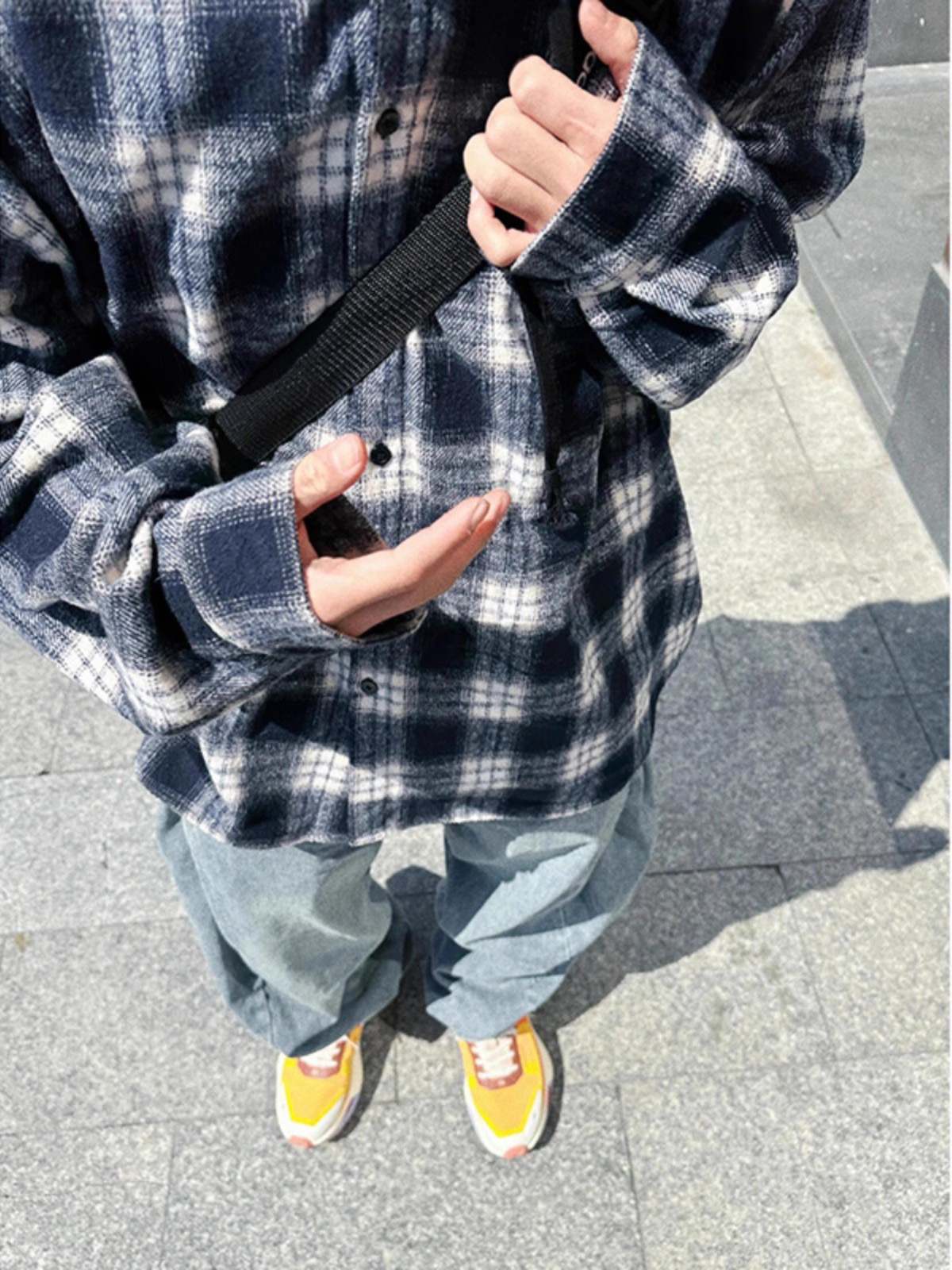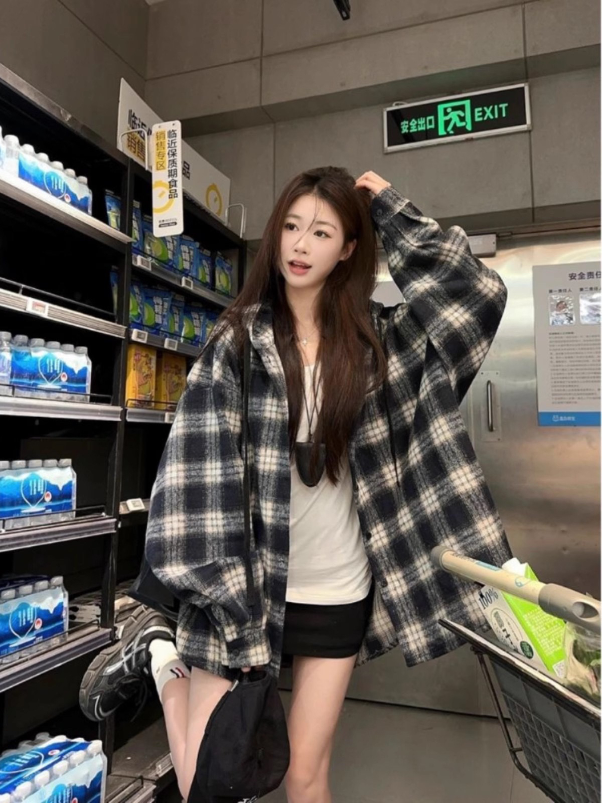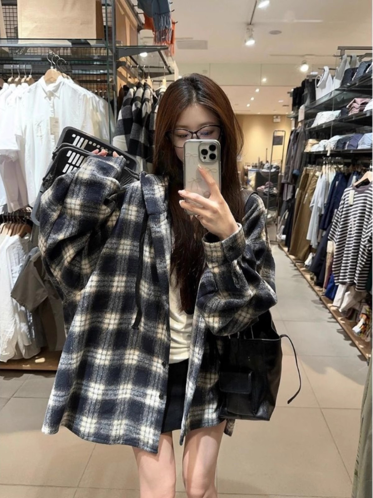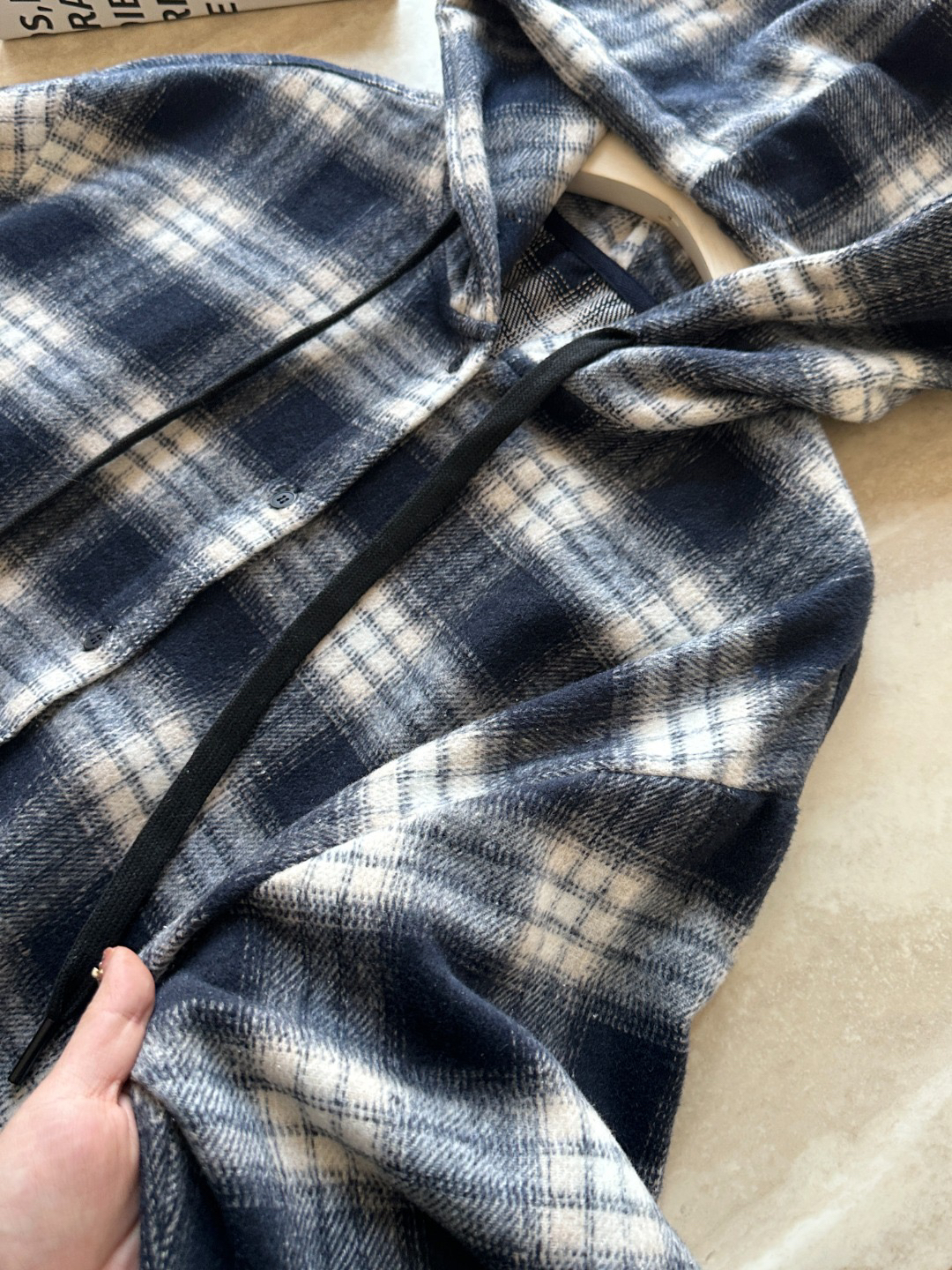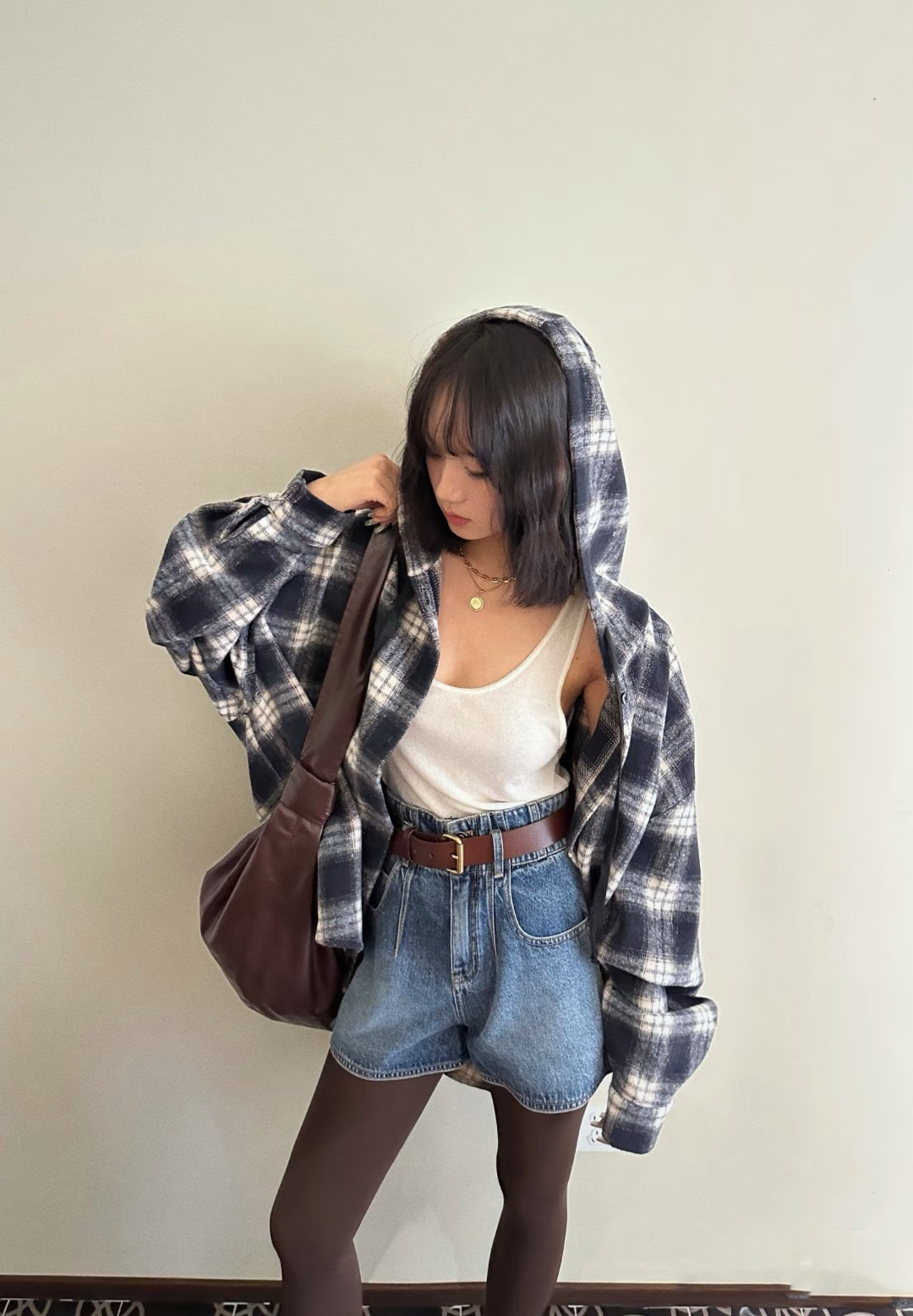 衬衫式拼接帽子的设计 更能弱化格纹的板正感!双层超大体量的帽子 戴上帽子松弛度真的拉满~