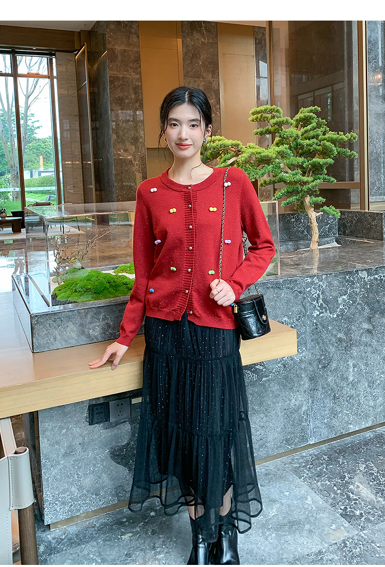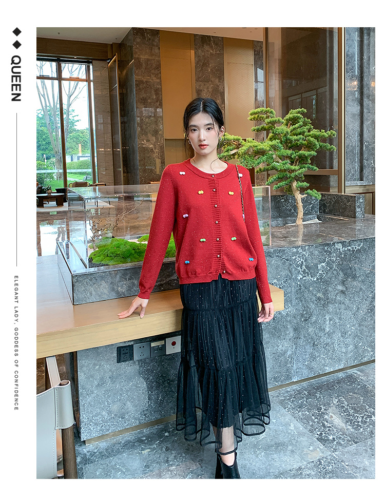 奢姿大码女装2025秋季时尚立体装饰上衣胖妹妹气质减龄长袖针织衫9653669903