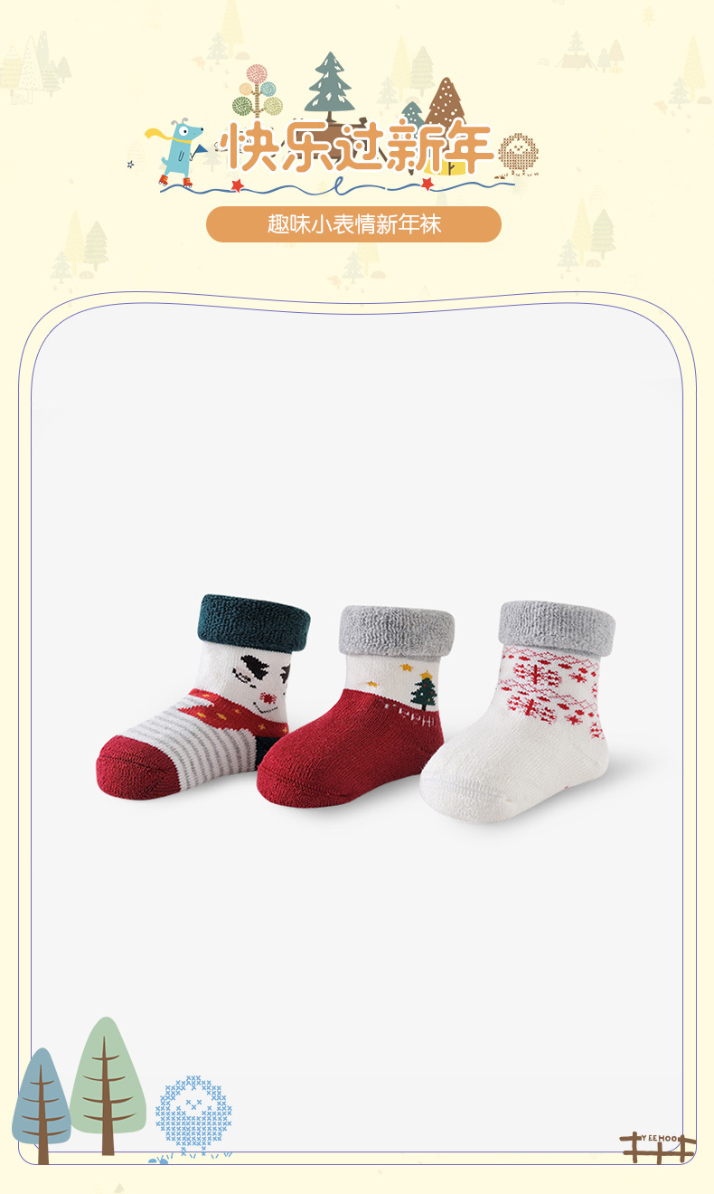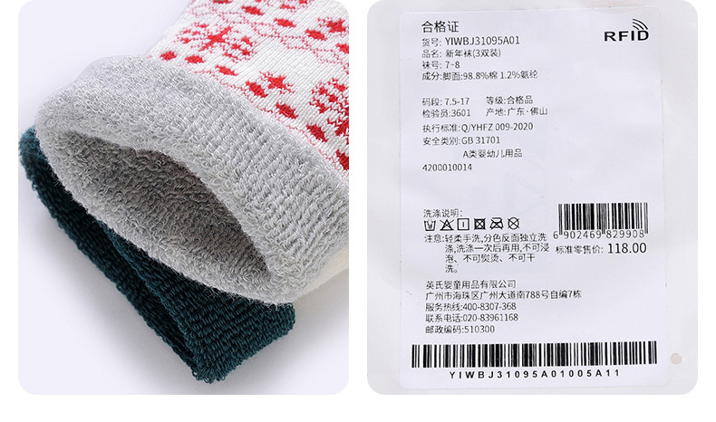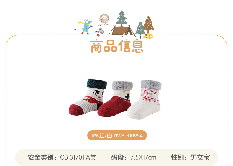 英氏-寝具类(冬)E1新年袜3双装RW红白11CM