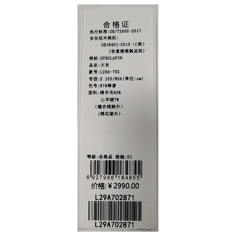 戴布拉芬大衣L29A702