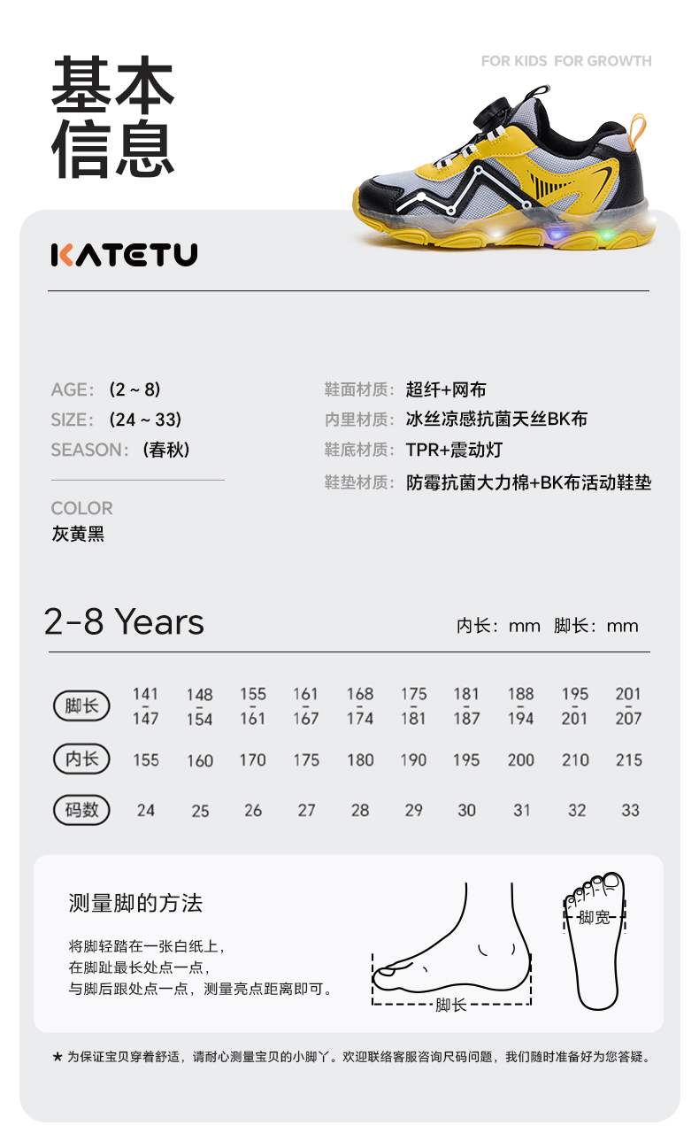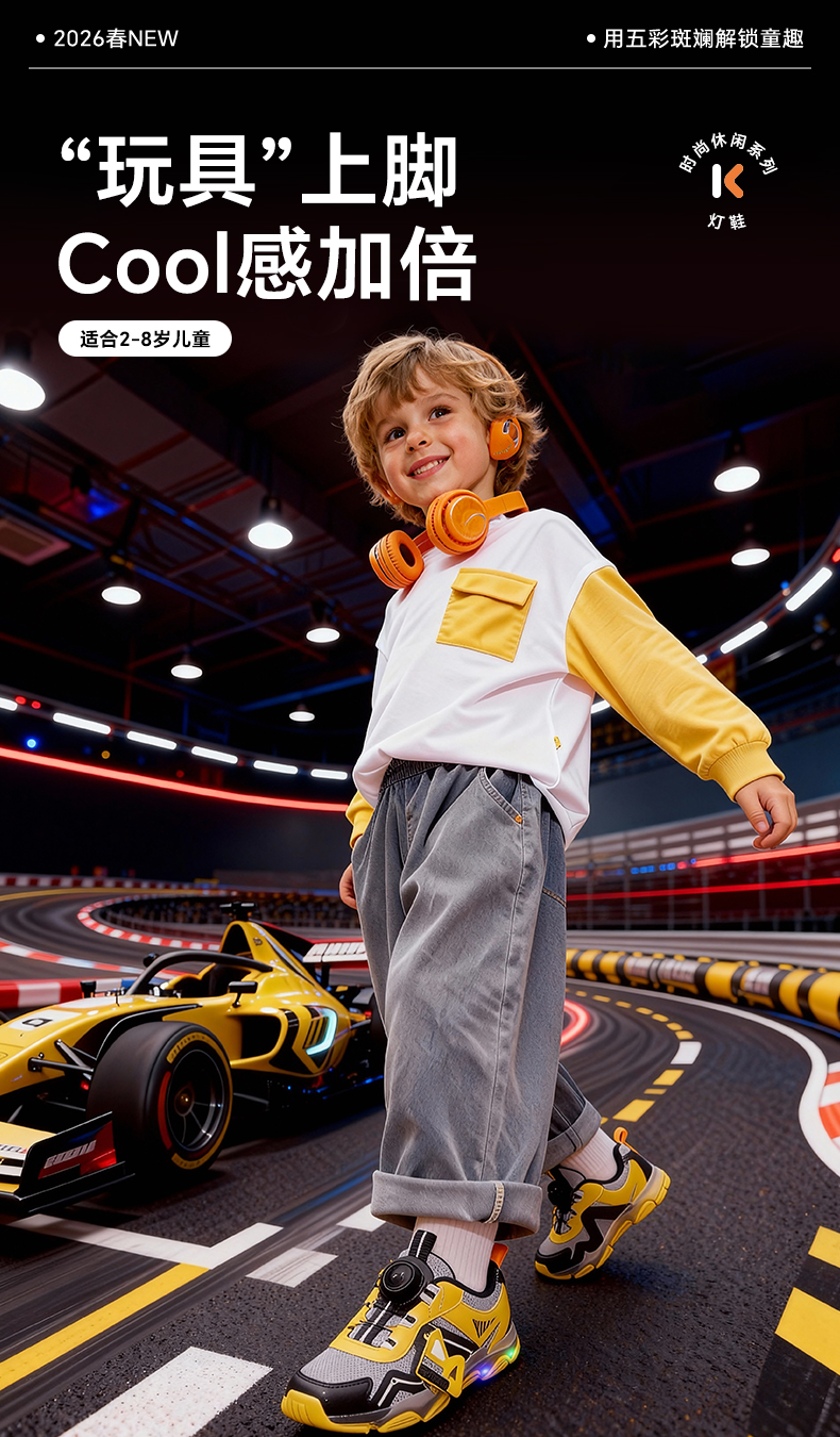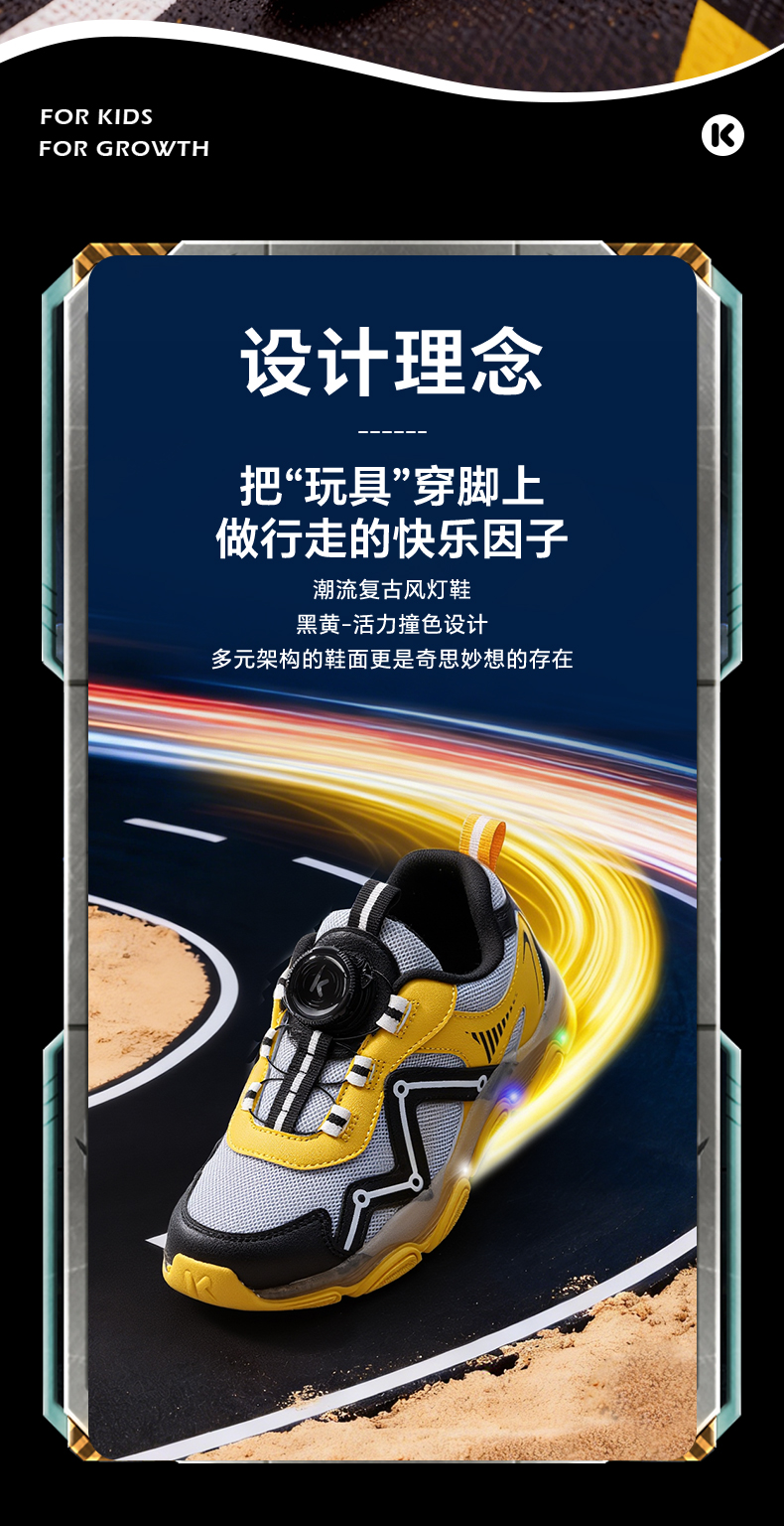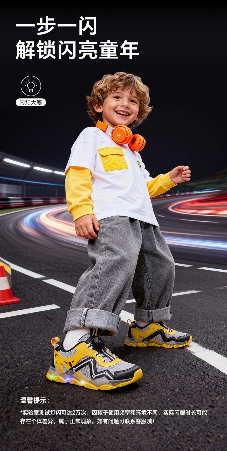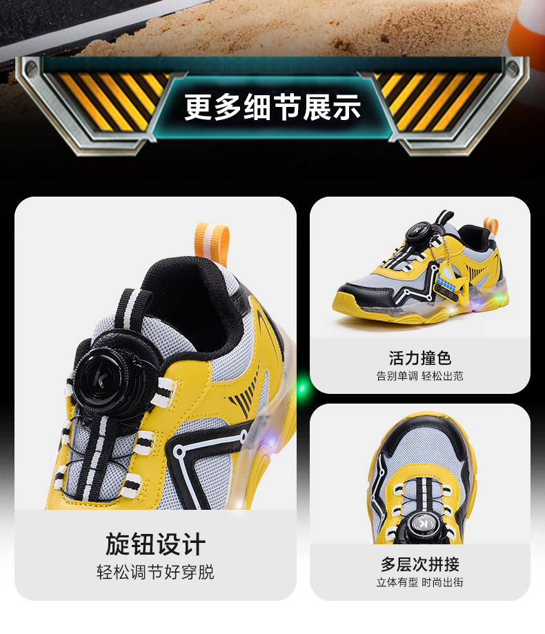 卡特兔童鞋儿童运动鞋2026年春季宝宝灯鞋发光鞋子防滑透气老爹鞋