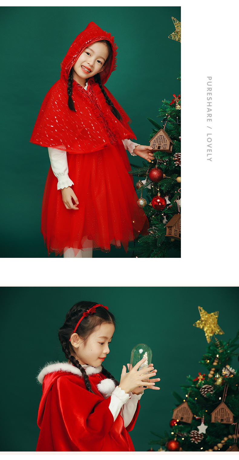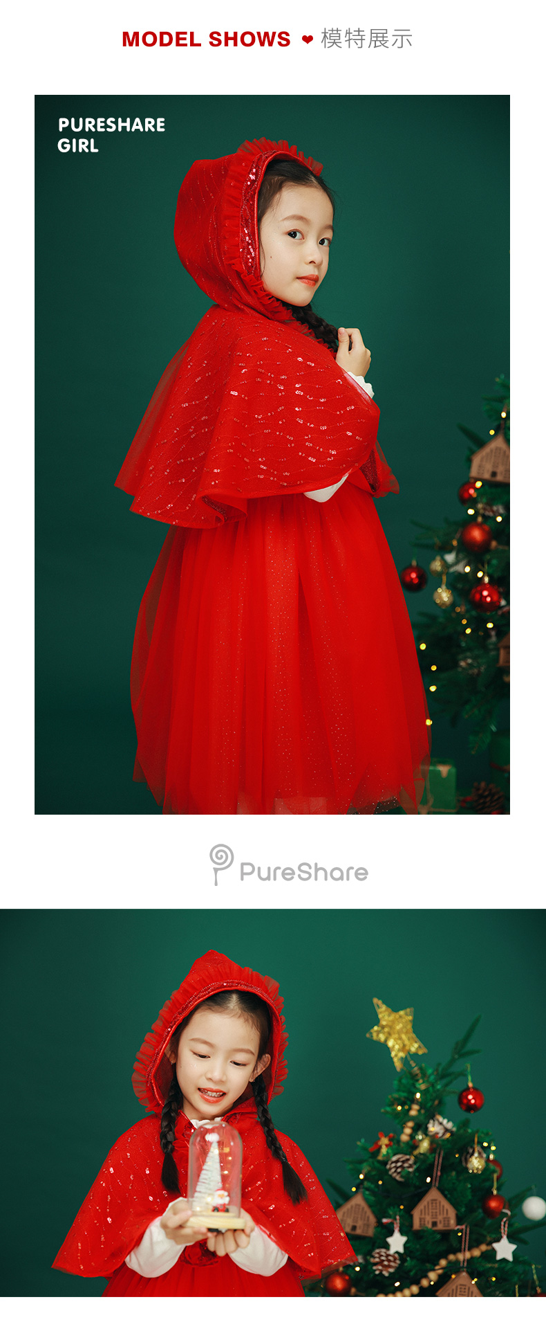 【云优选】pureshare 欢禧 女童连衣裙秋冬宝宝洋气圣诞公主裙小女孩卡通裙子女