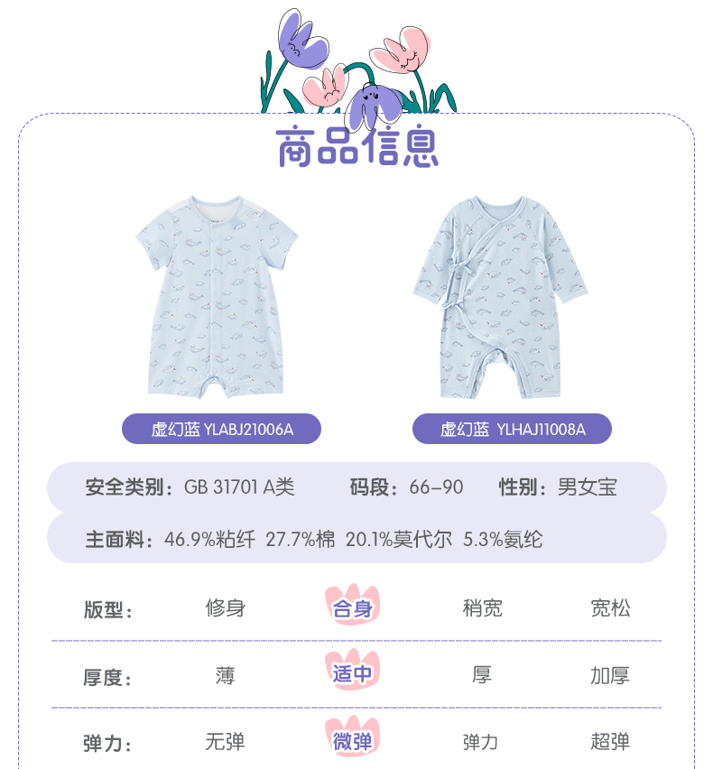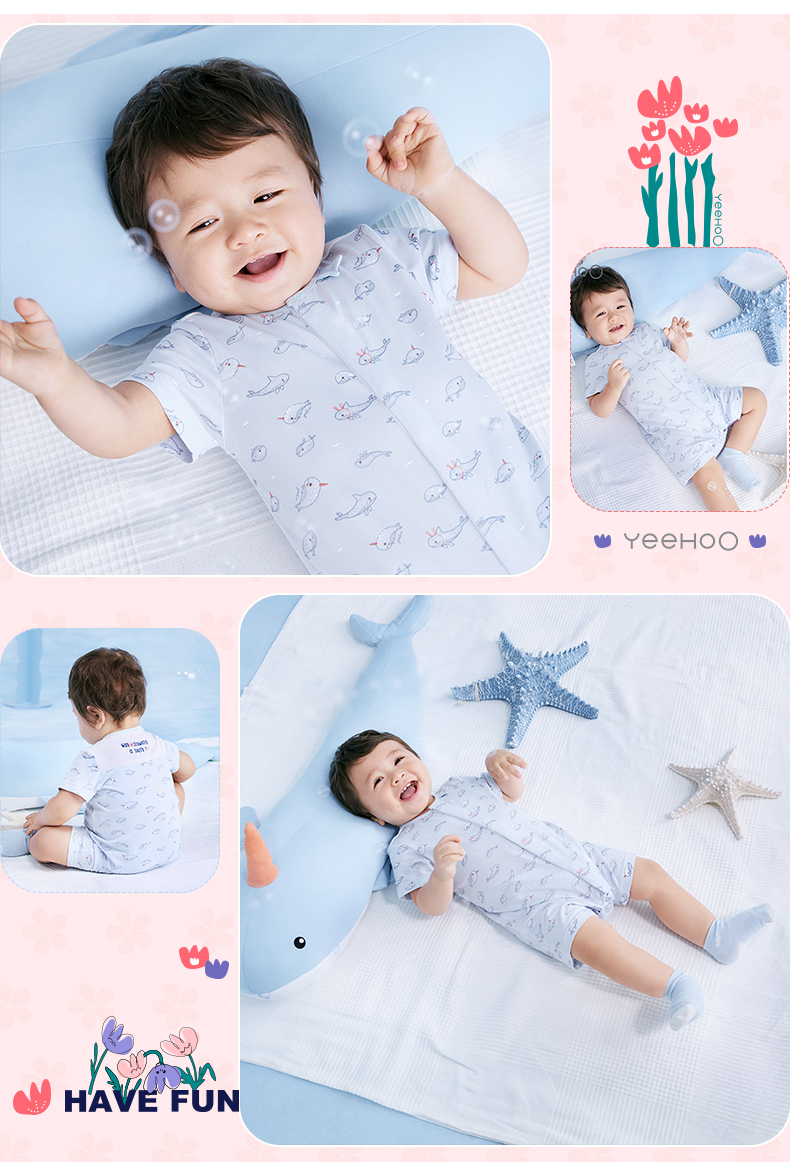 英氏婴儿连体衣男女宝夏季薄款爬服YLABJ21006A01 YLHAJ11008A01