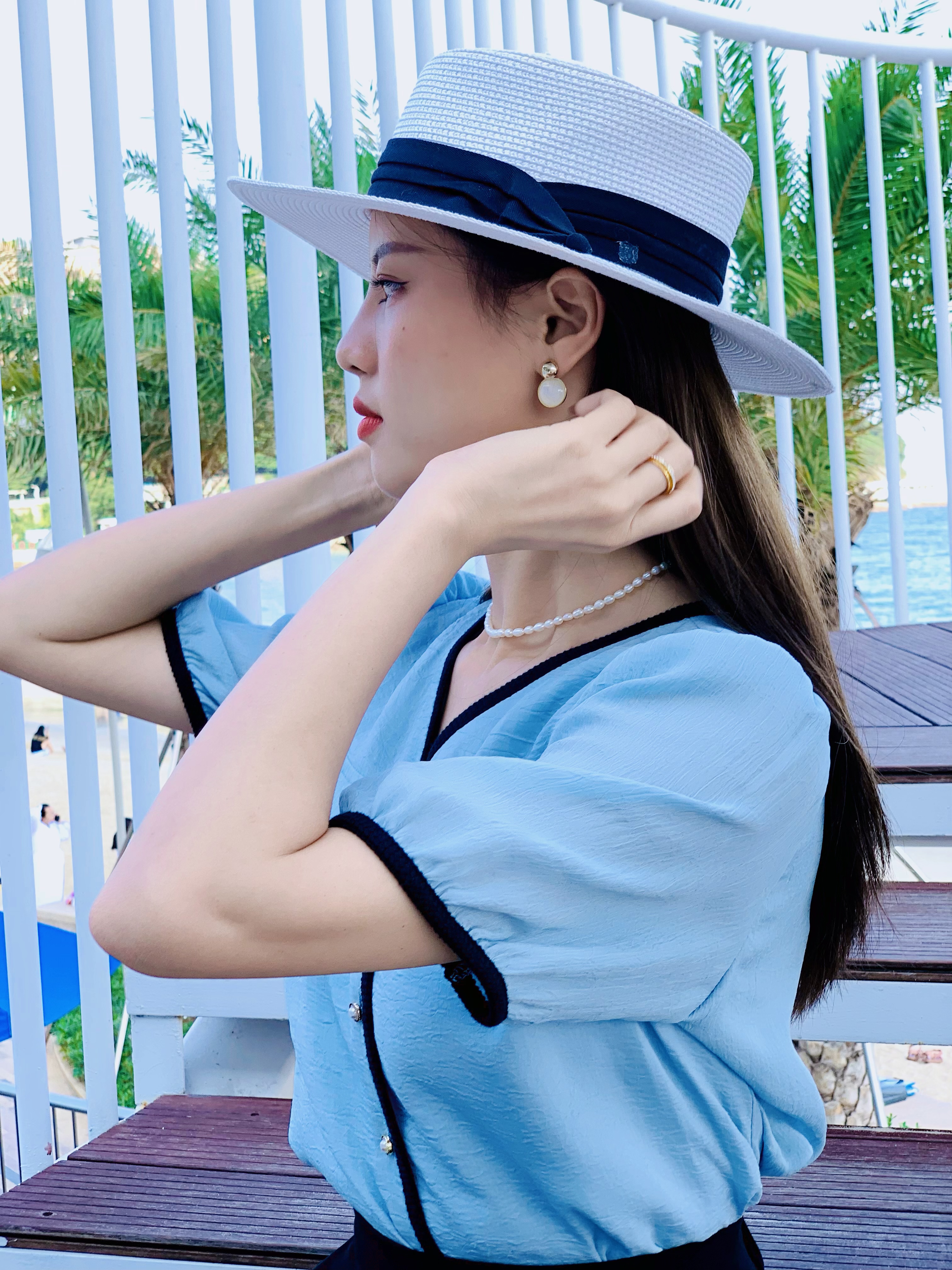 【百图lulu定制】【小香风衬衫】气泡纱面料 撞色 衬衫