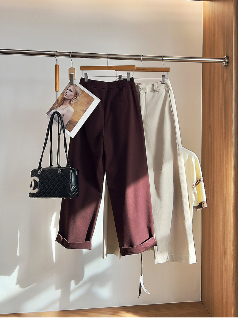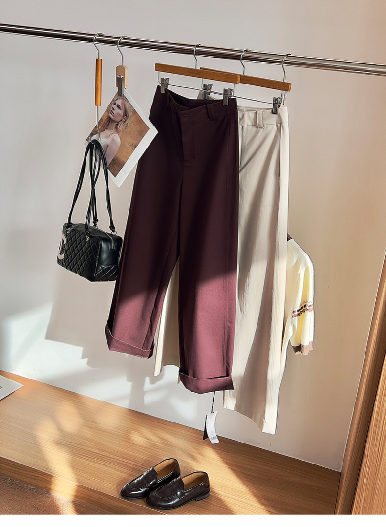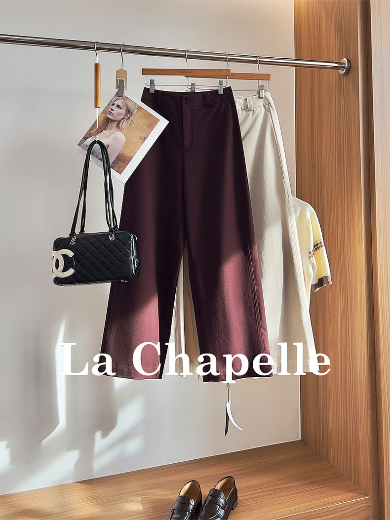 专柜实拍【轻奢高质感】拉夏贝尔/La Chapelle含莱赛尔垂坠有型~高腰单扣宽松极简风休闲装★