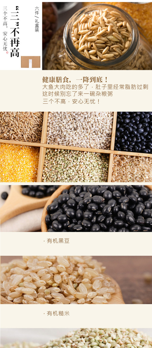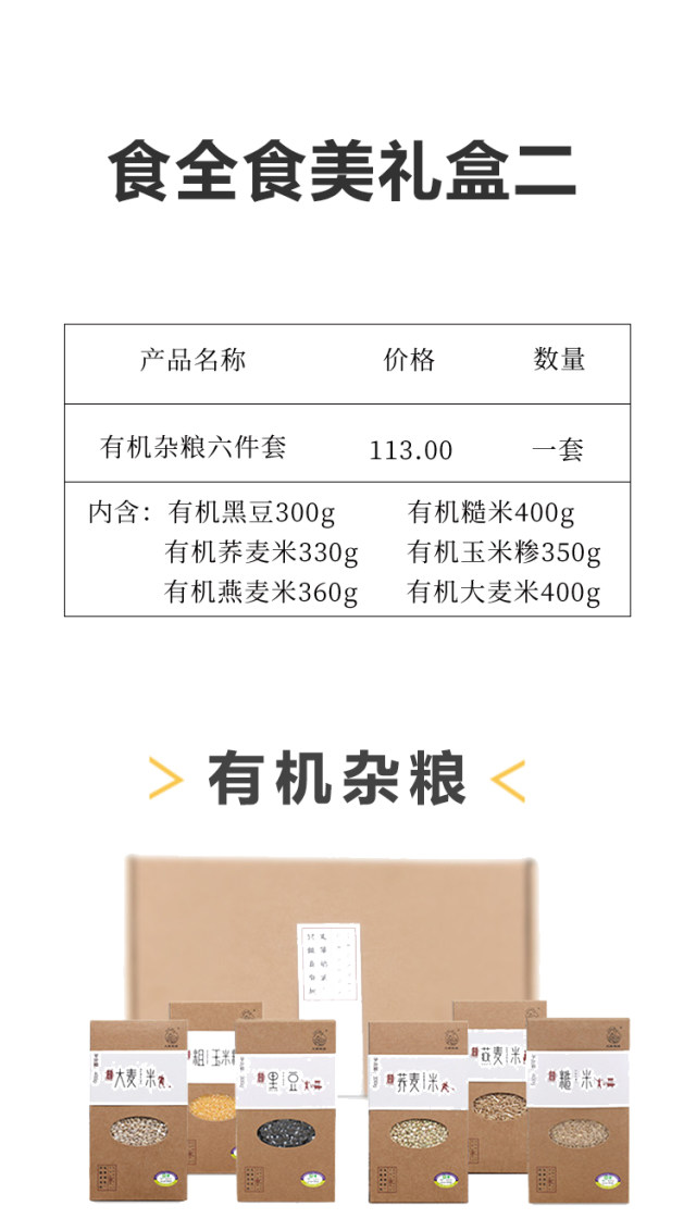 有机五谷杂粮组合6件套2140g/礼盒装 三不再高(中国有机认证)
