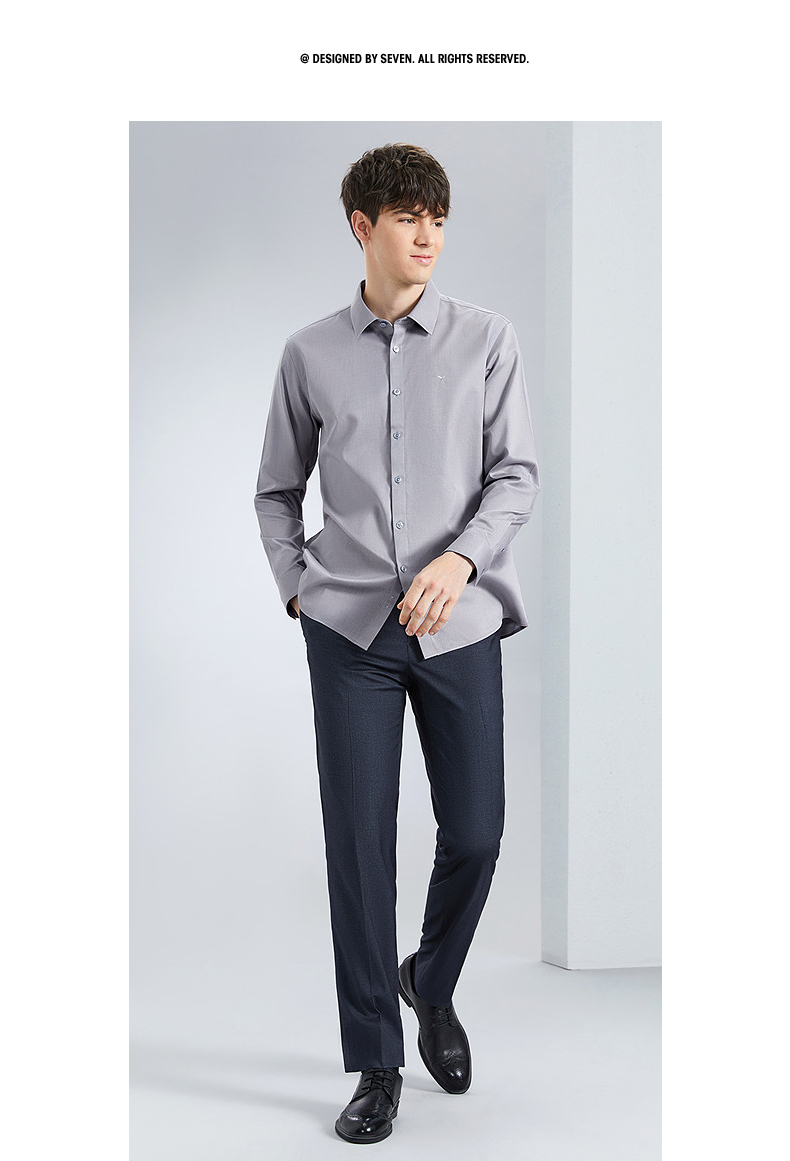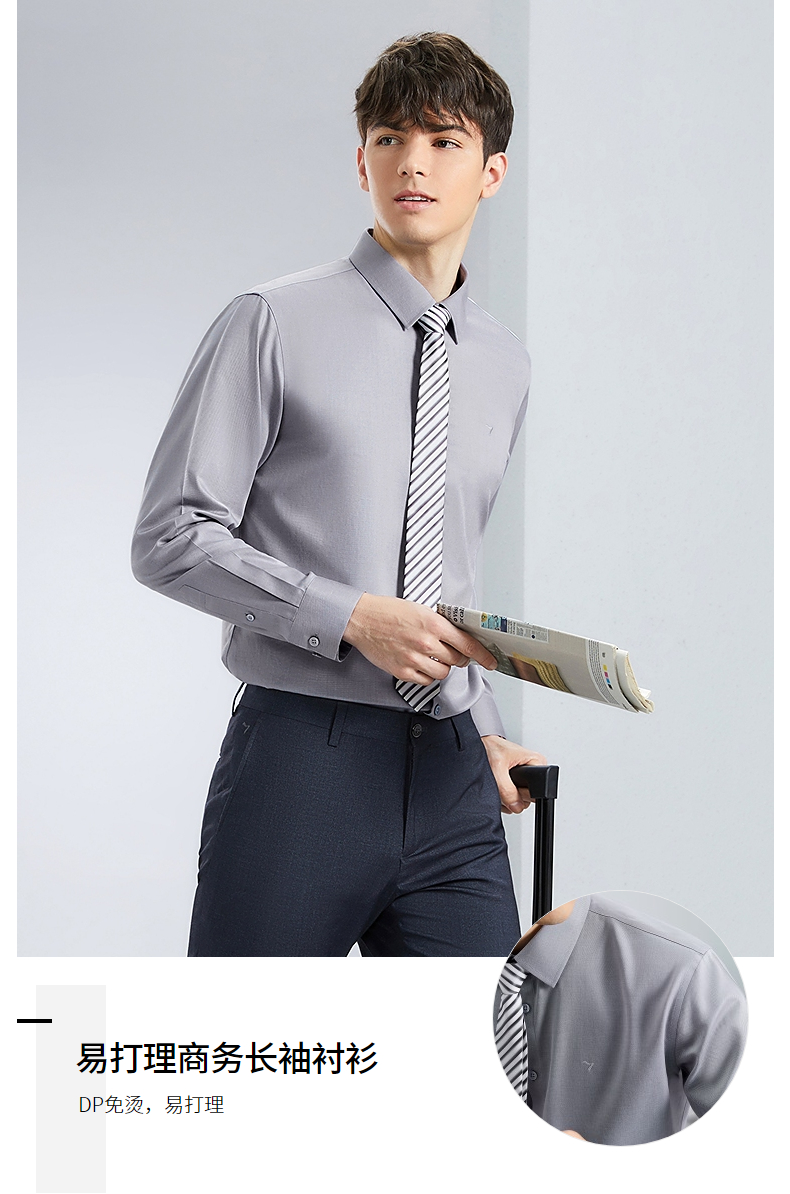 【DP免烫】柒牌男士长袖衬衫2024春季新款纯棉商务正装易打理衬衣 126A71060