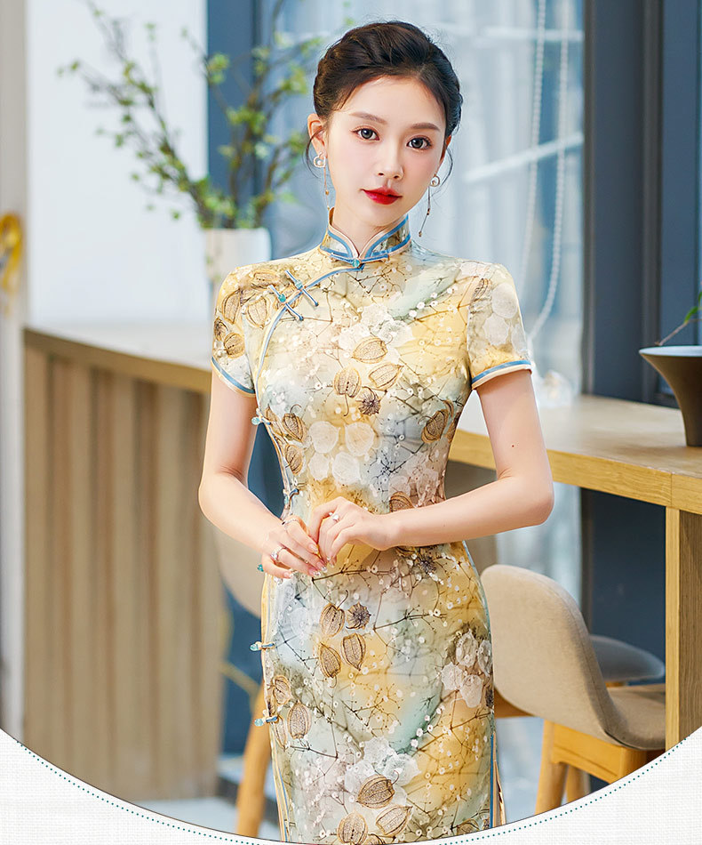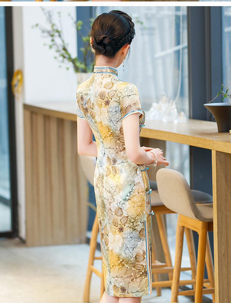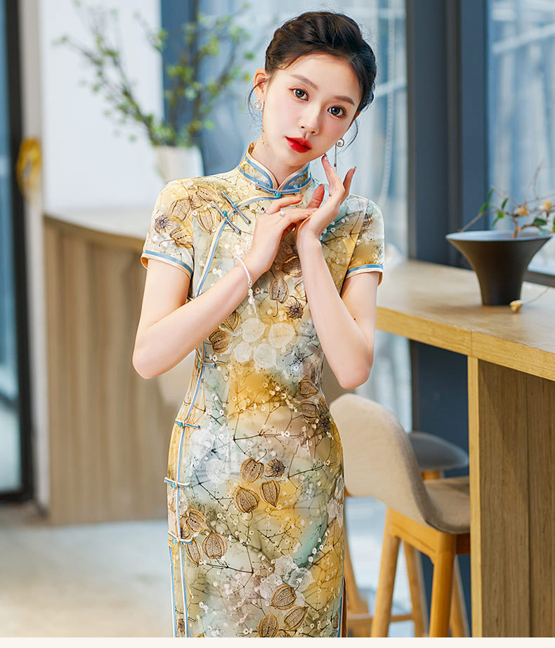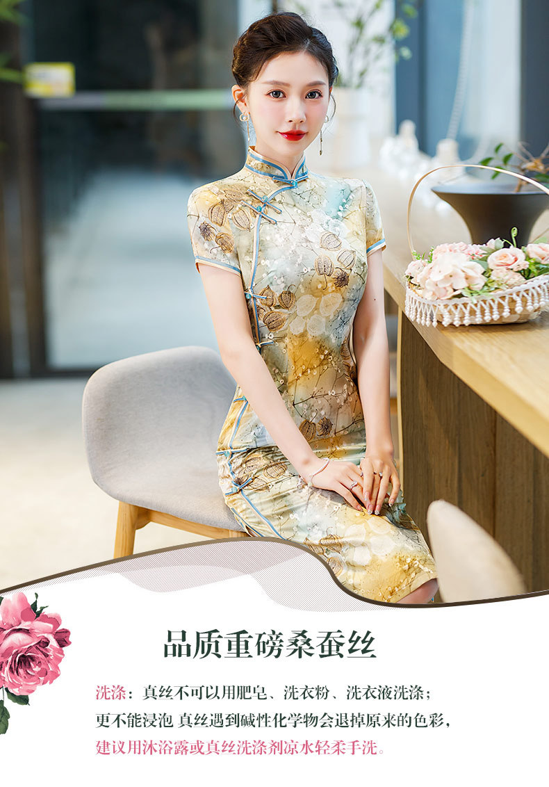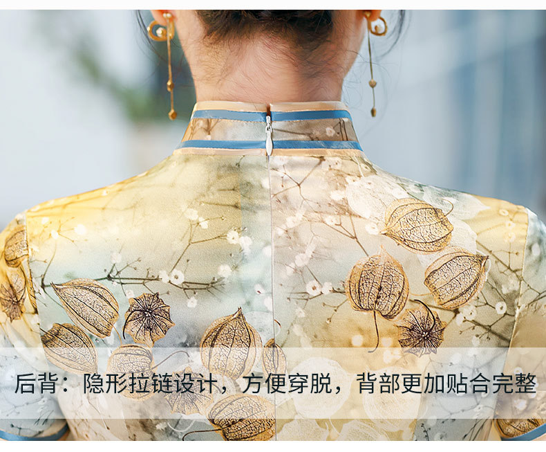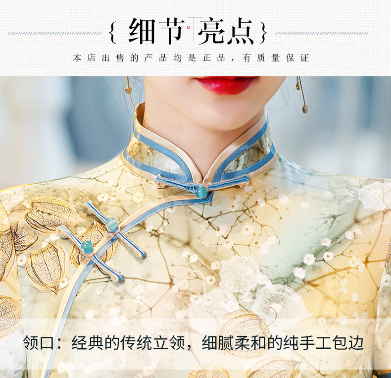 真丝旗袍桑蚕丝高端品质长款复古旗袍WXG-D347