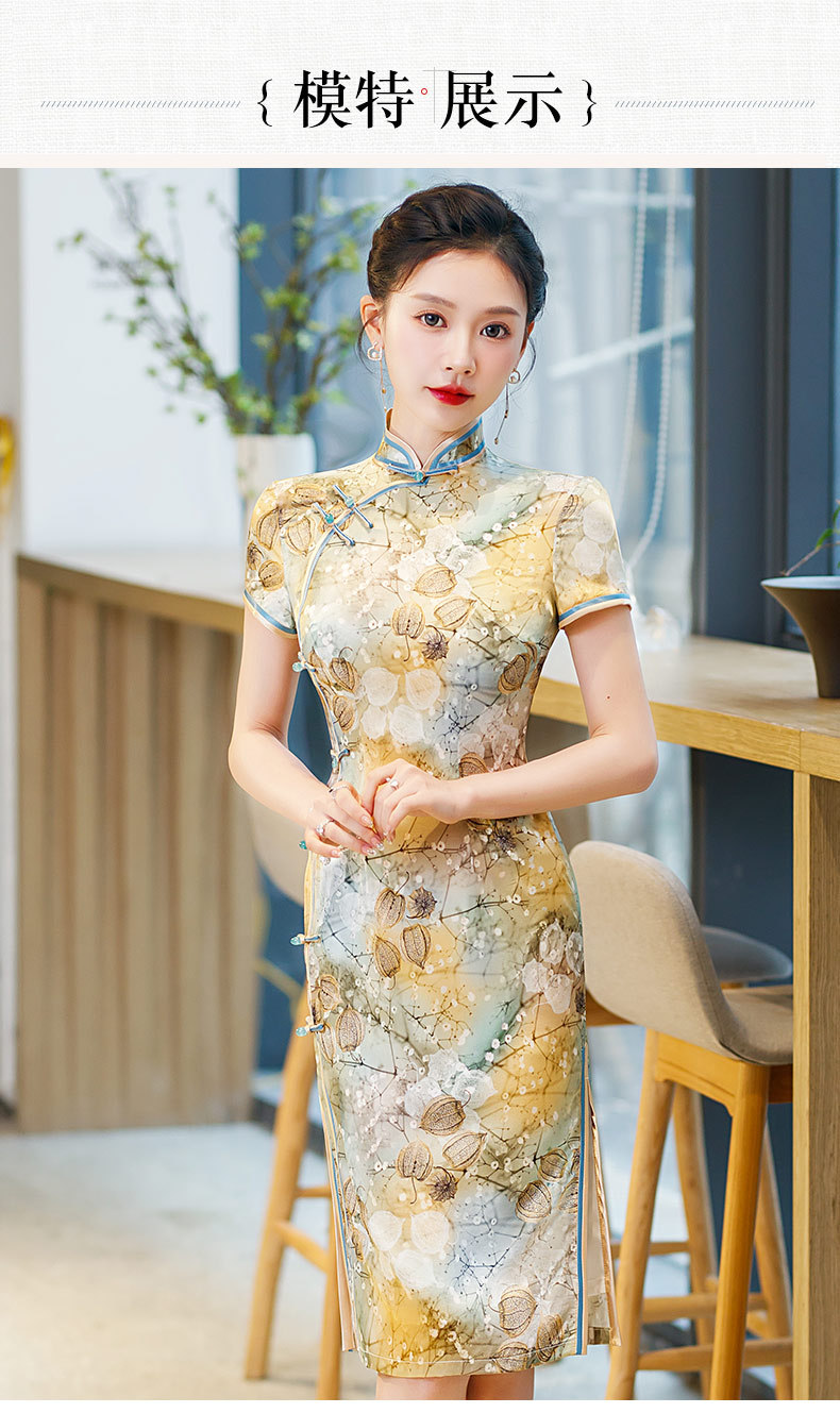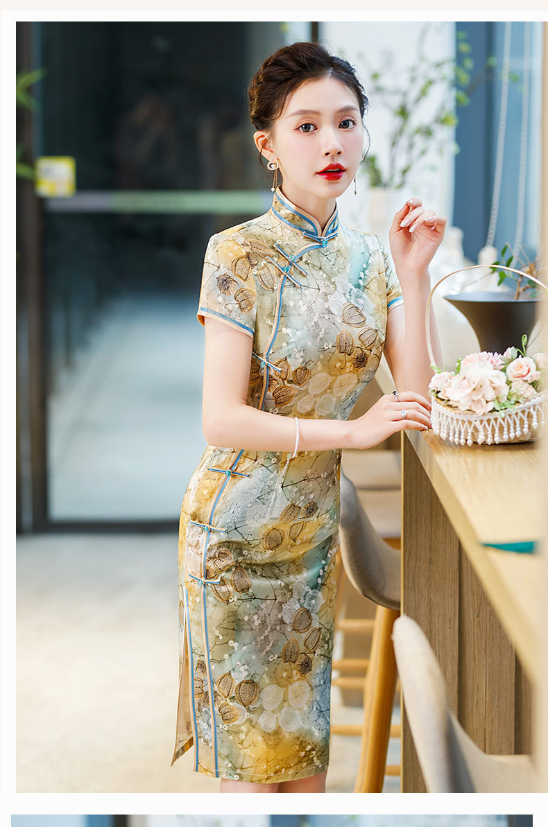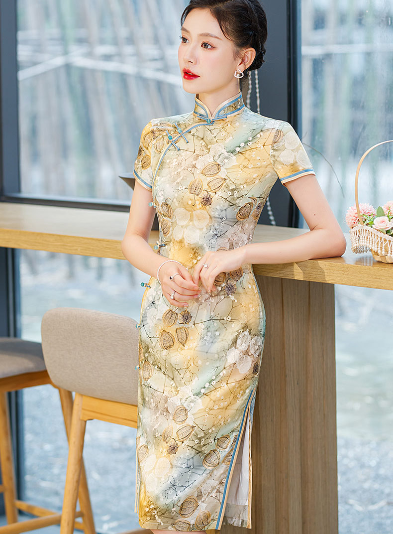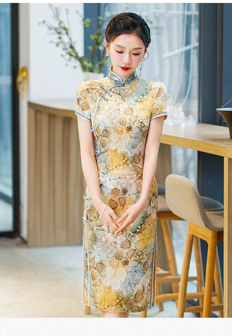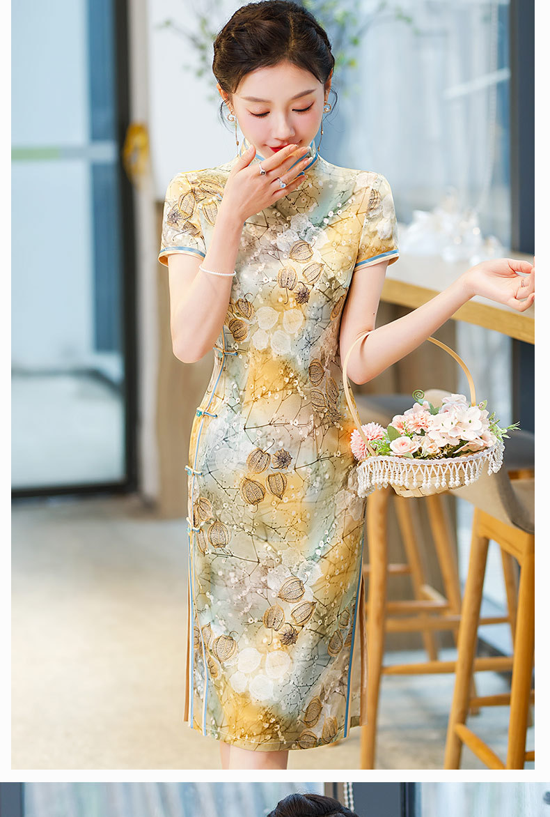 真丝旗袍桑蚕丝高端品质长款复古旗袍WXG-D347