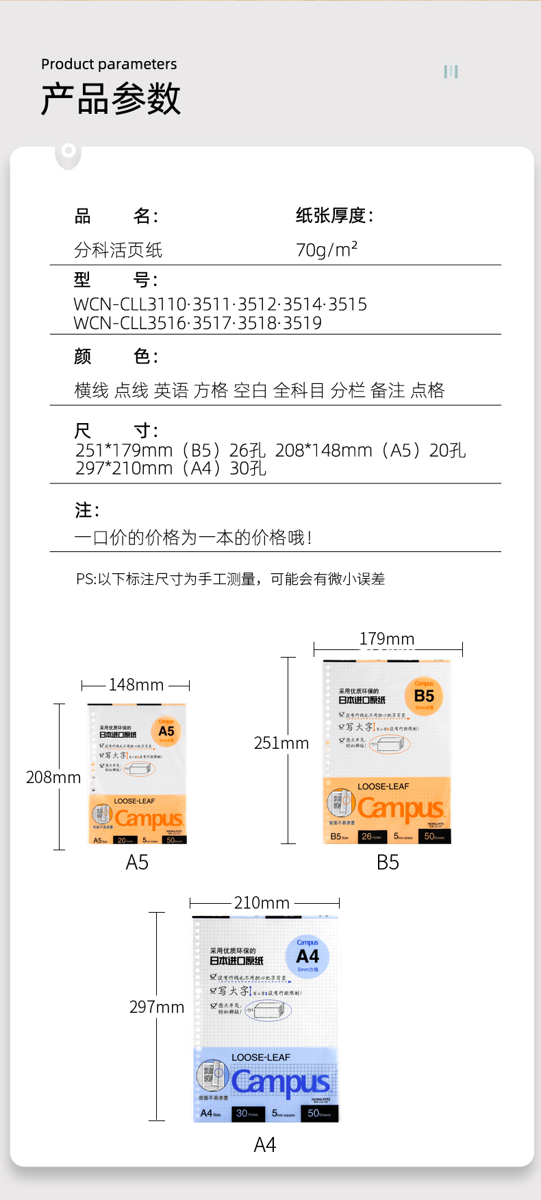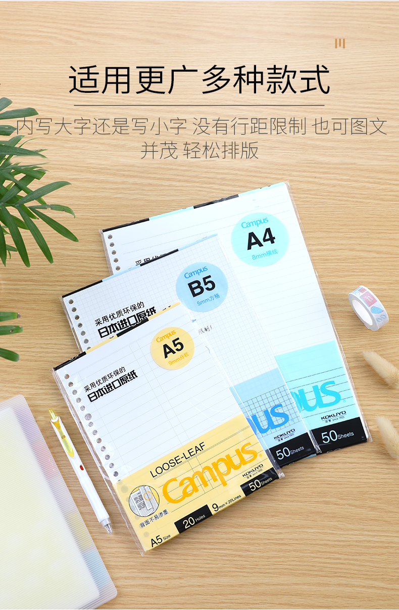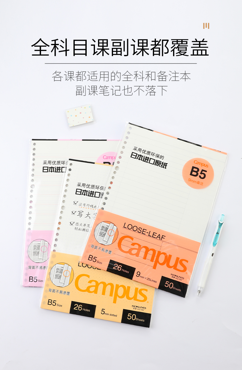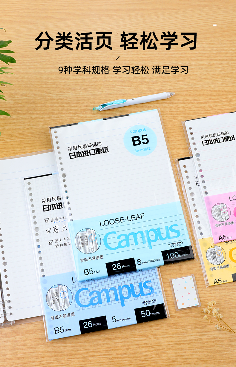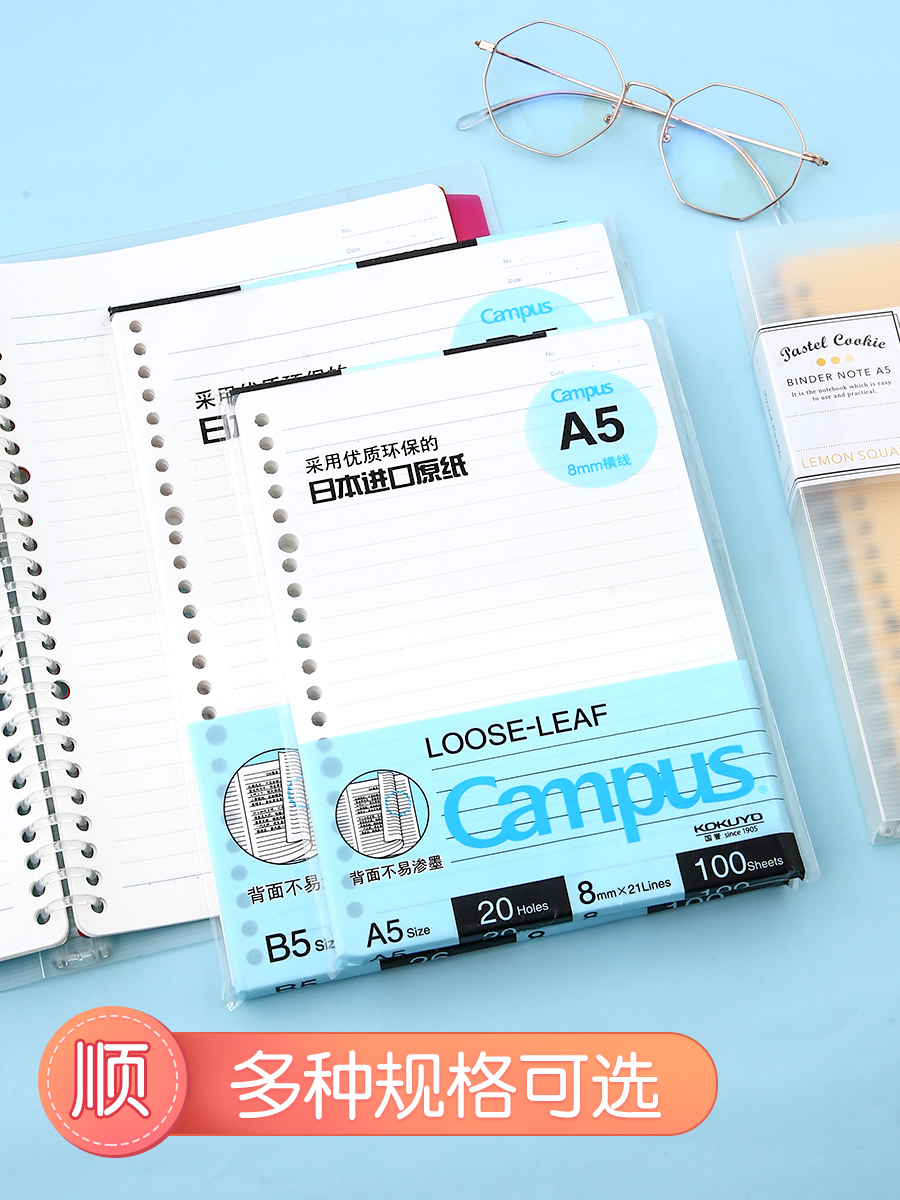 kokuyo/日本国誉/活页纸/活页本/26孔/A5/B5/横条格/点线/空白替芯