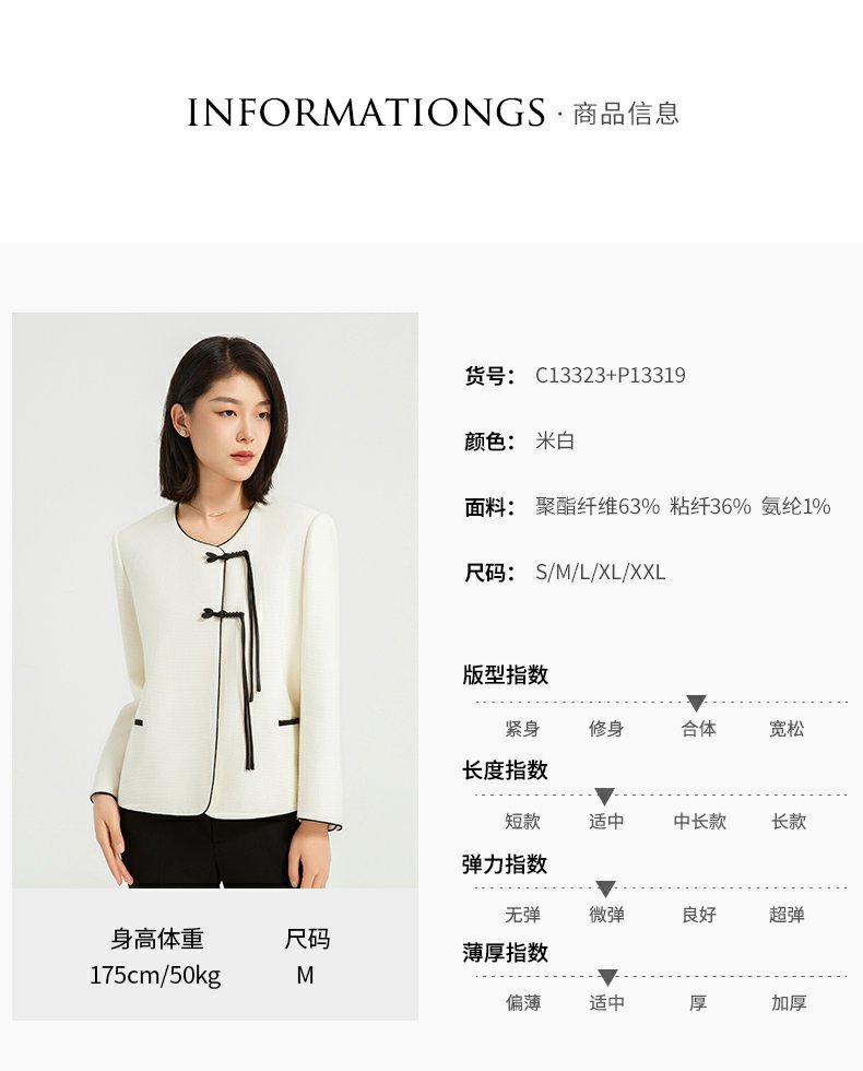 IWY/时尚气质国风盘扣西装套装高端设计感主持人上镜正装医美工作服C13323+P13319