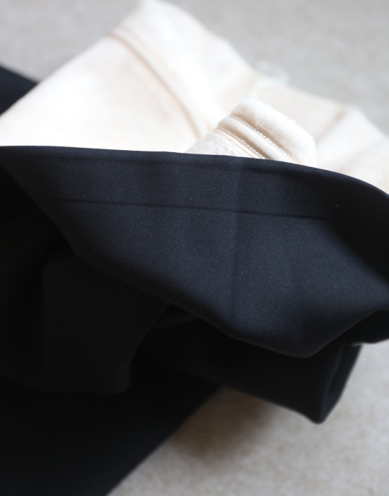因为 这款穿起来有点微压力 所以 对面料及缝线的拉伸力度 要求会更高