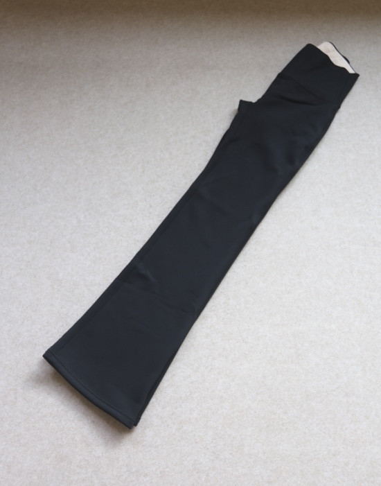 然后 束口款/九分裤长 微喇款/裤长很足 常规收边 可去改短