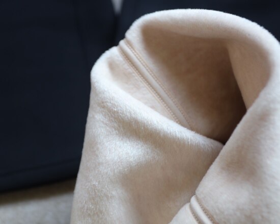 非常典型的复合短绒 少量羊绒的加入 更亲肤轻盈保暖