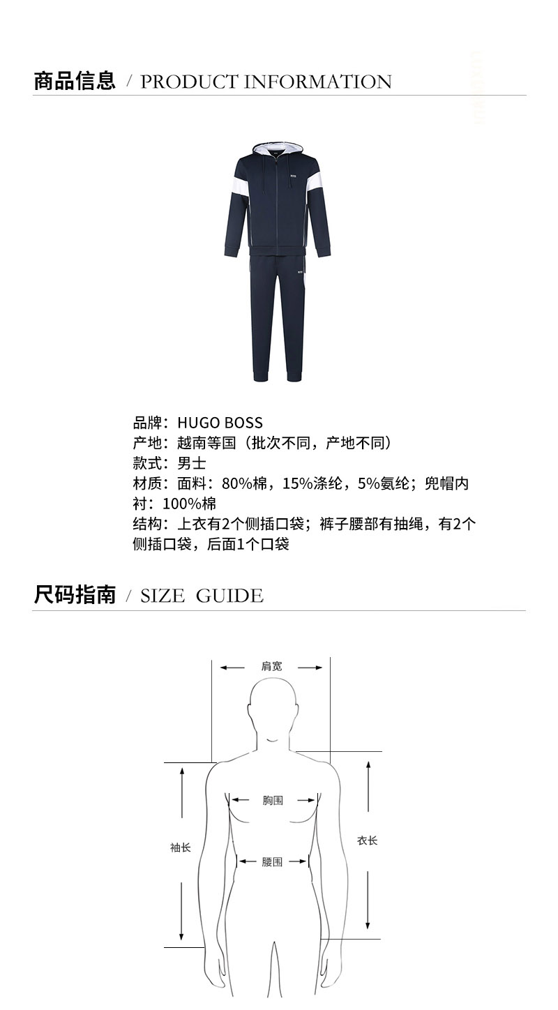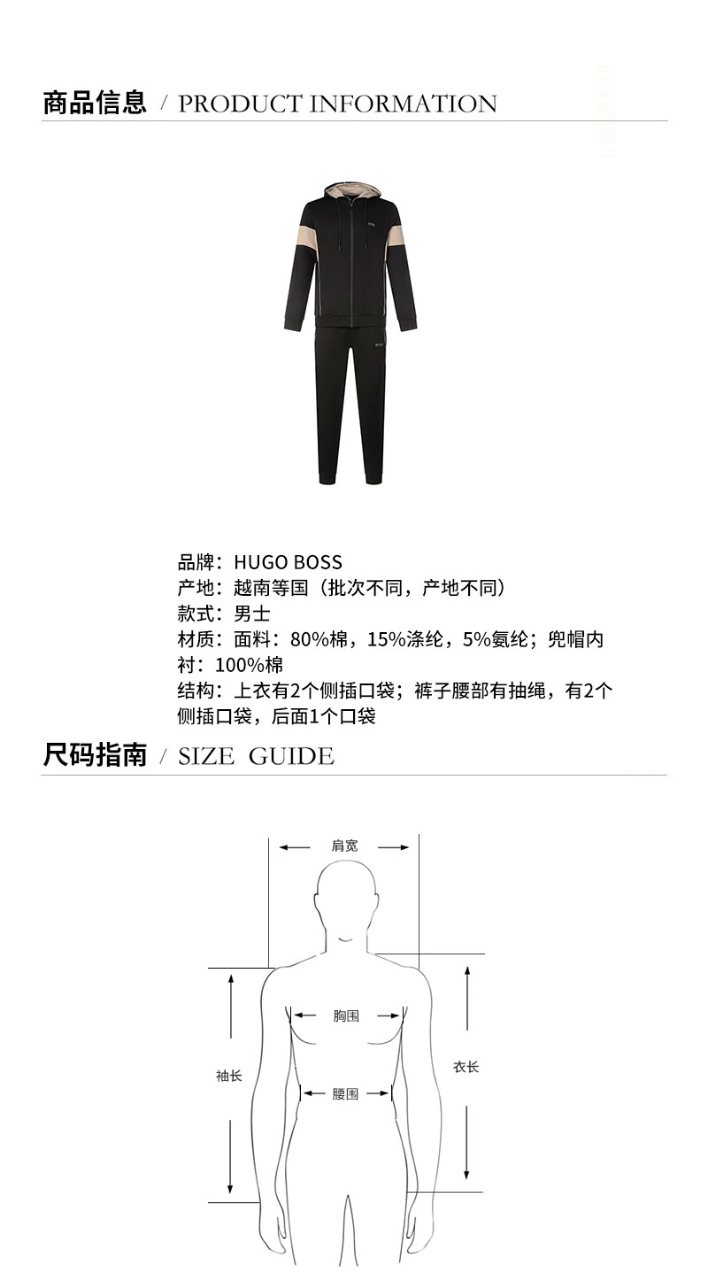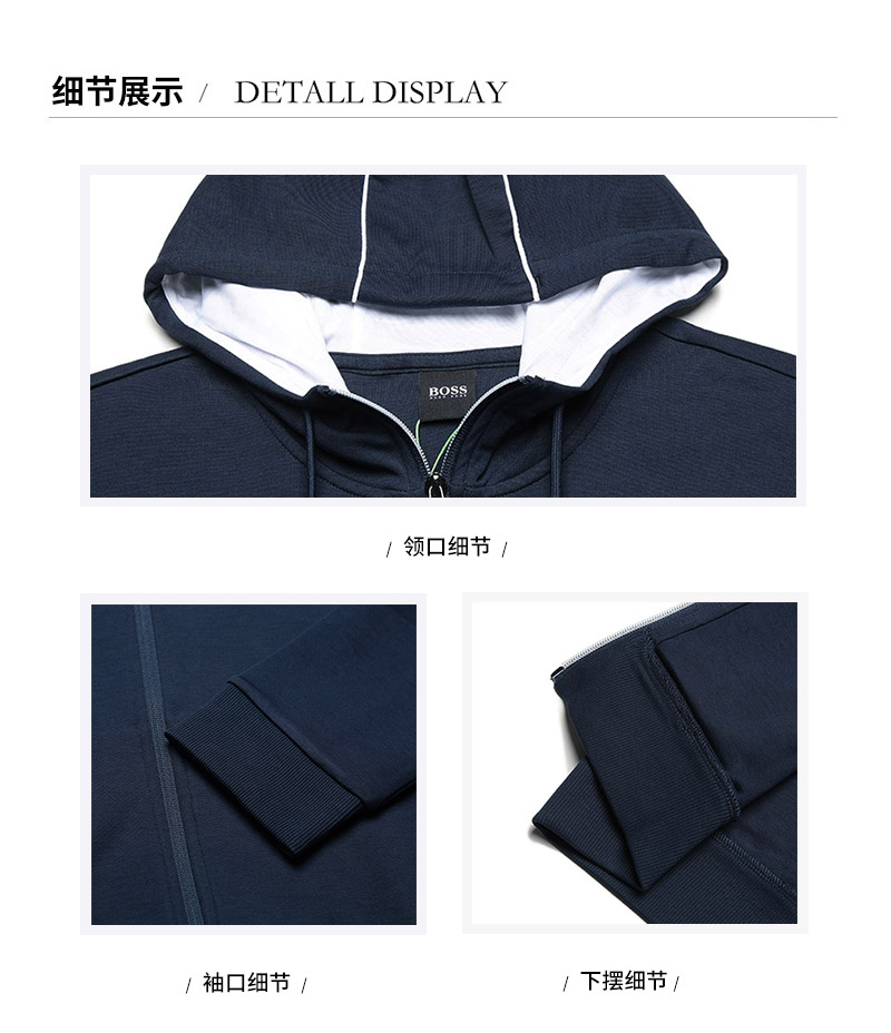 HUGO BOSS/雨果博斯 【22春夏新款】 男士棉质徽标连帽拉链卫衣开衫运动套装 50462855