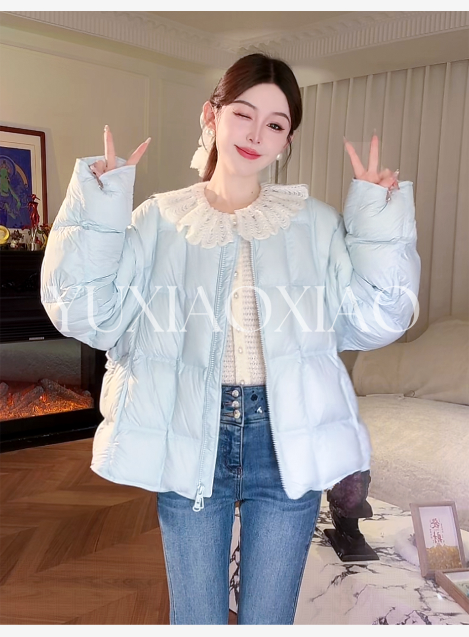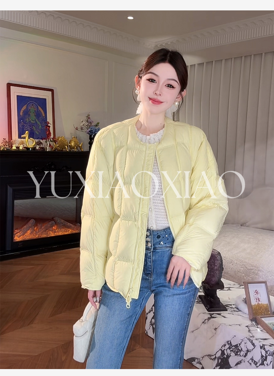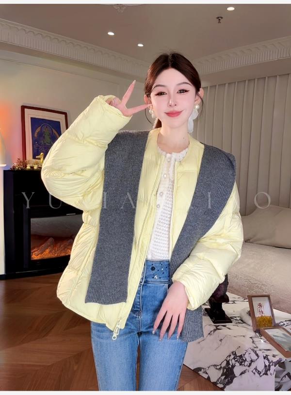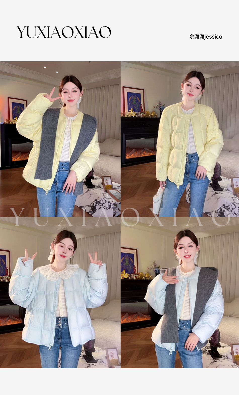 余潇潇【元气星球】时尚保暖90白鸭绒三防面料圆领羽绒服配送披肩