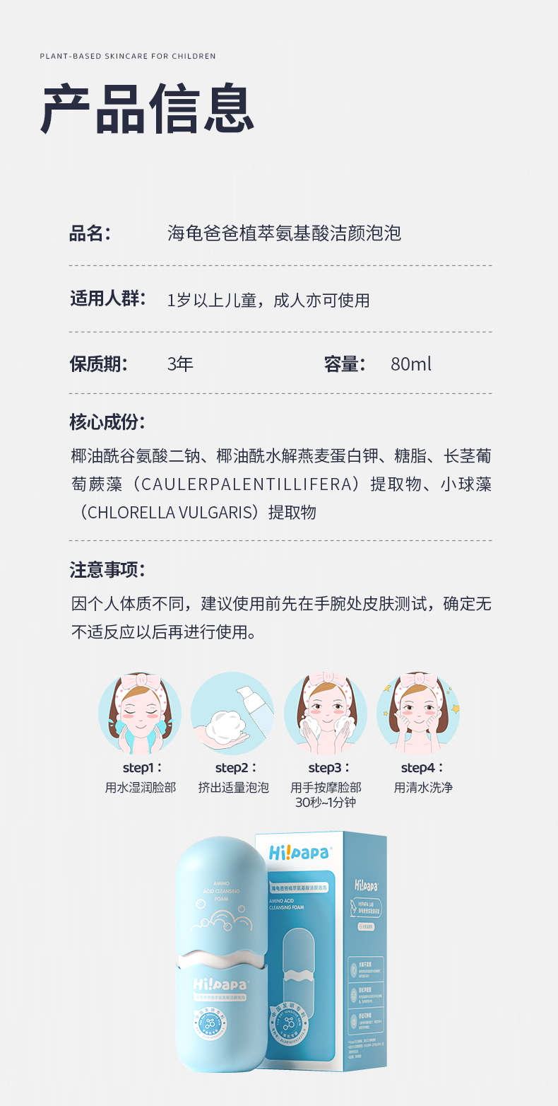 海龟爸爸植萃氨基酸洁颜泡泡(海葡萄)