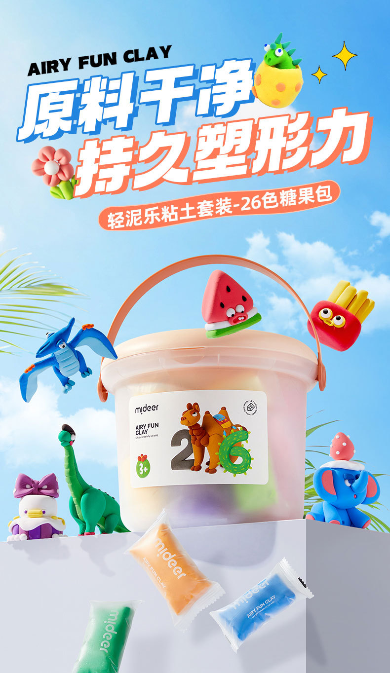 六一儿童节礼物【弥鹿儿童轻泥】乐轻粘土糖果色彩泥黏土 橡皮泥幼儿园DIY玩具