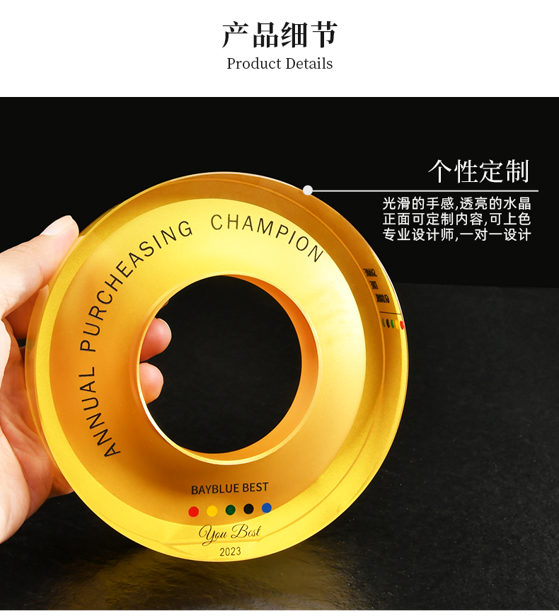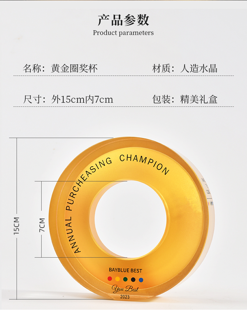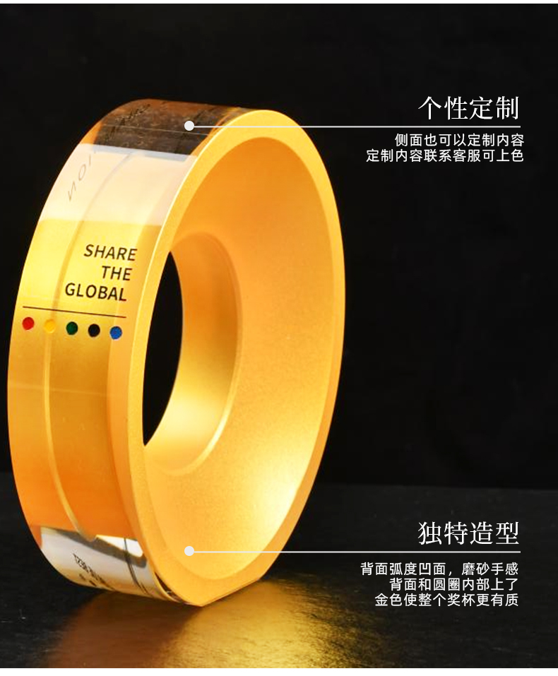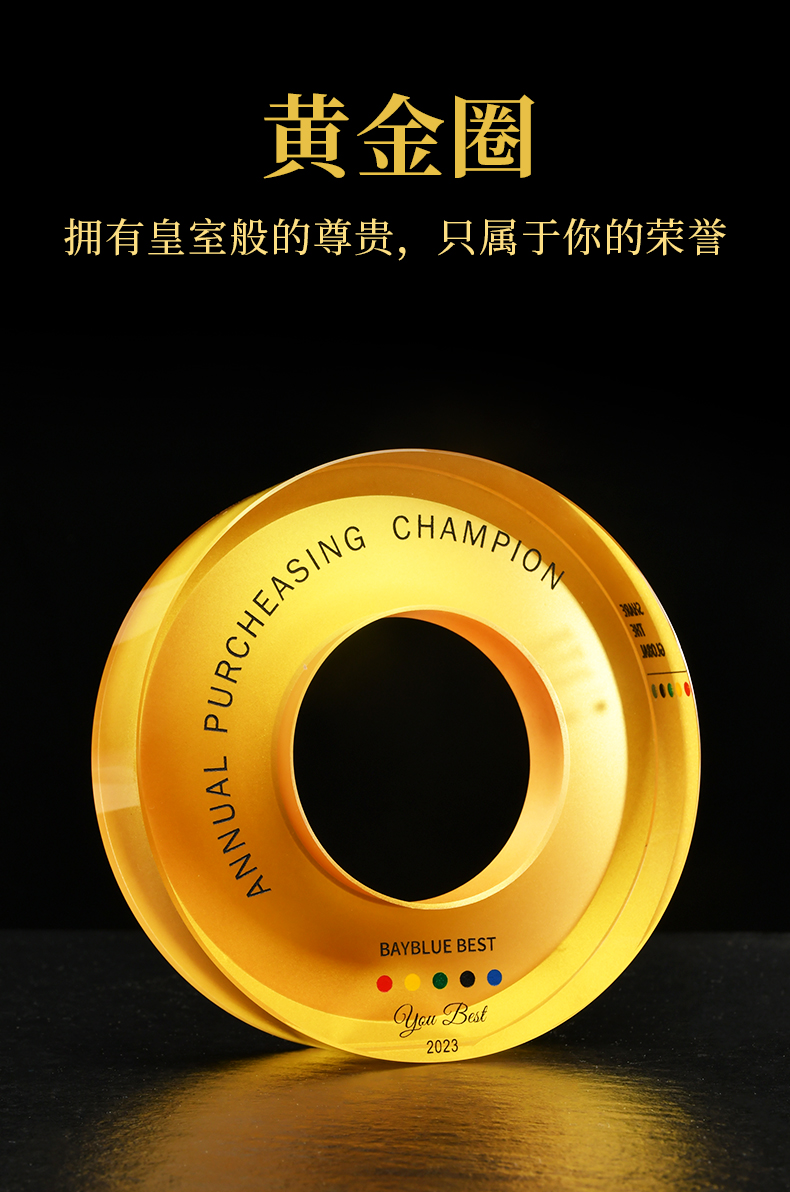 黄金圈纪念品奖杯水晶定制奖牌授权牌创意比赛奖品奖盘销售冠军