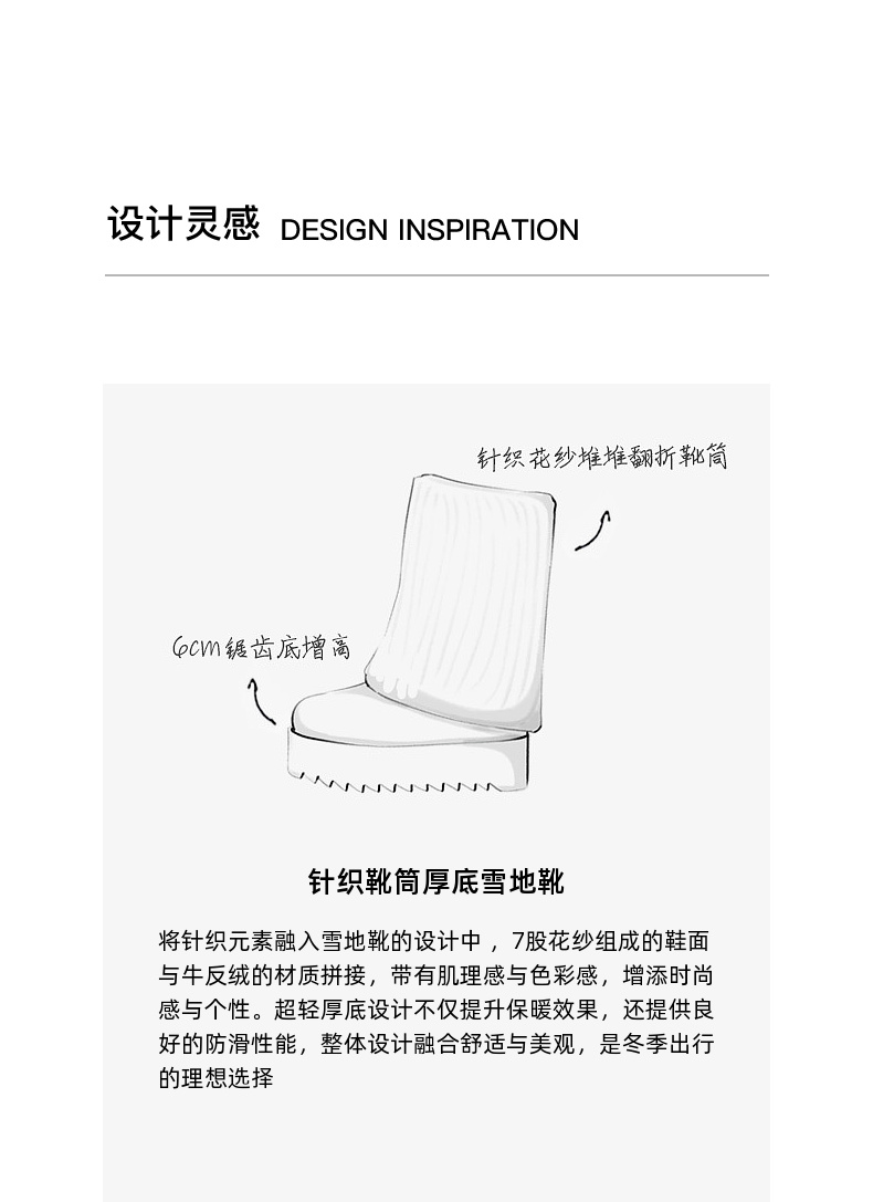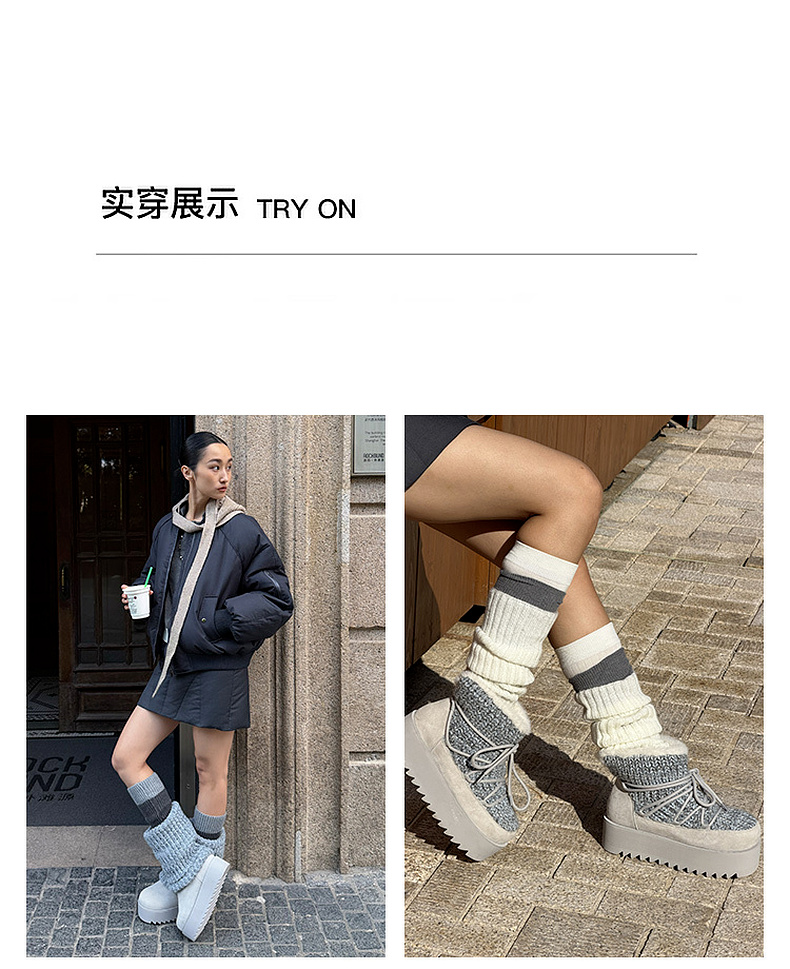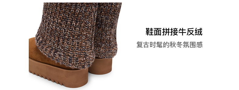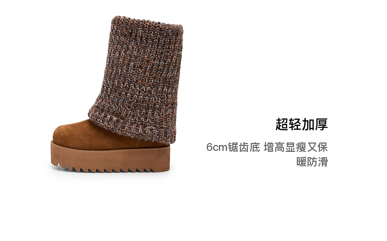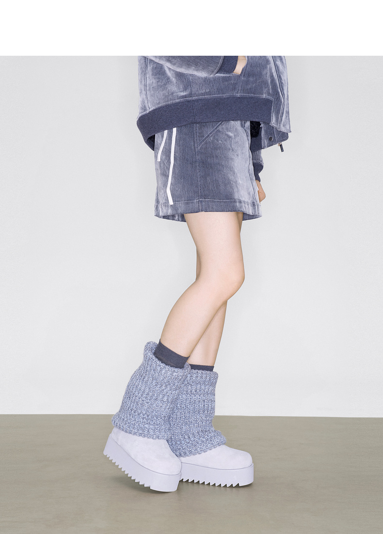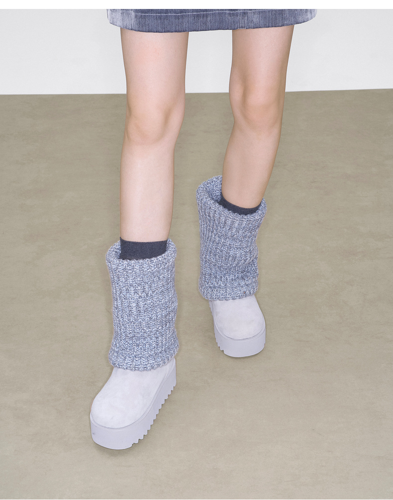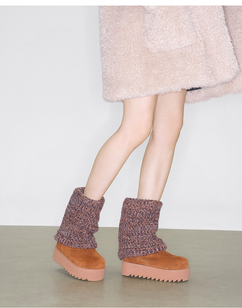 lost in echo2025秋冬新款时尚复古针织拼接堆褶显瘦厚底雪地靴女