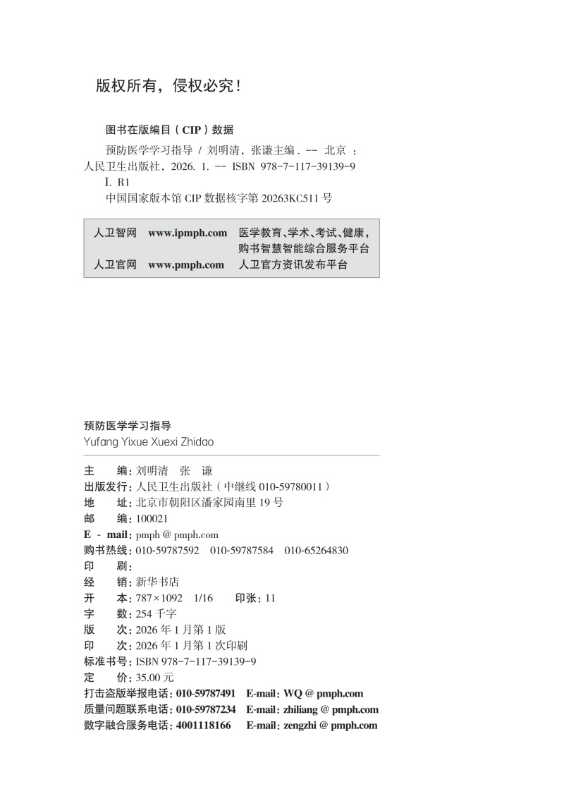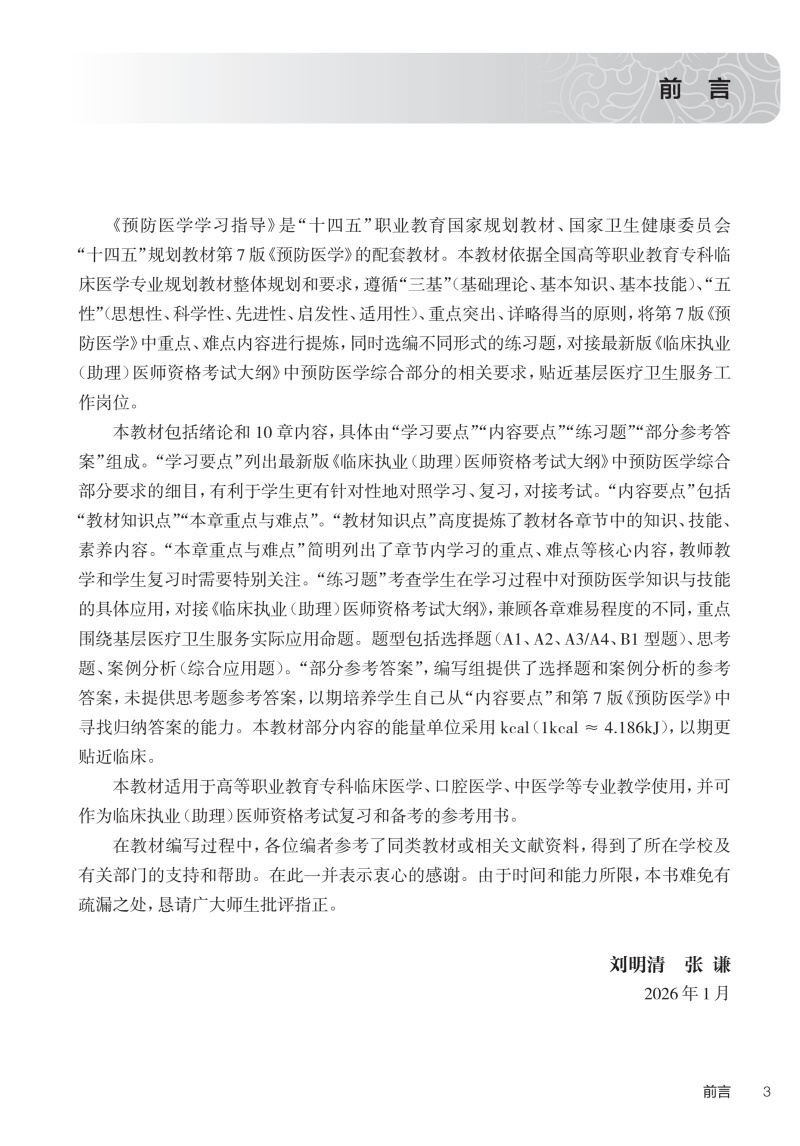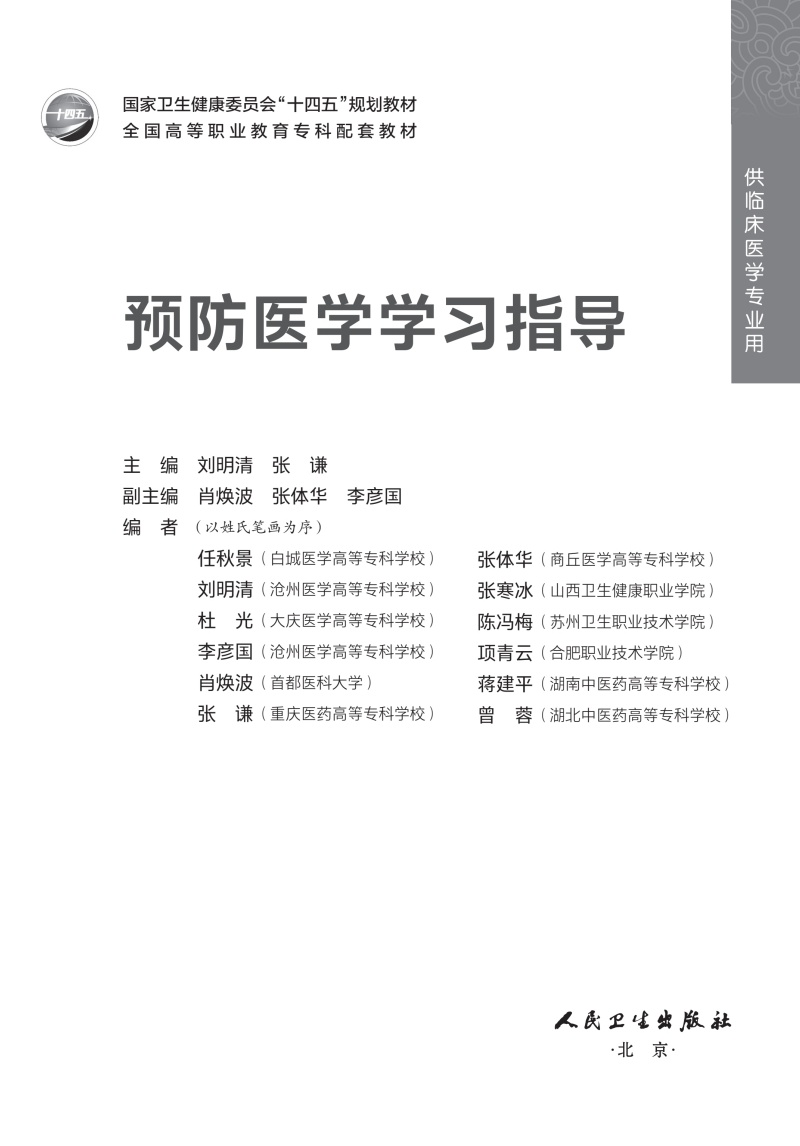 预防医学学习指导 刘明清 张谦 十四五规划教材 全国高等职业教育专科配套教材 供临床医学专业用 9787117391399 人民卫生出版社