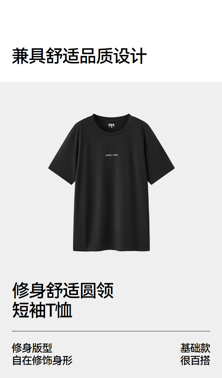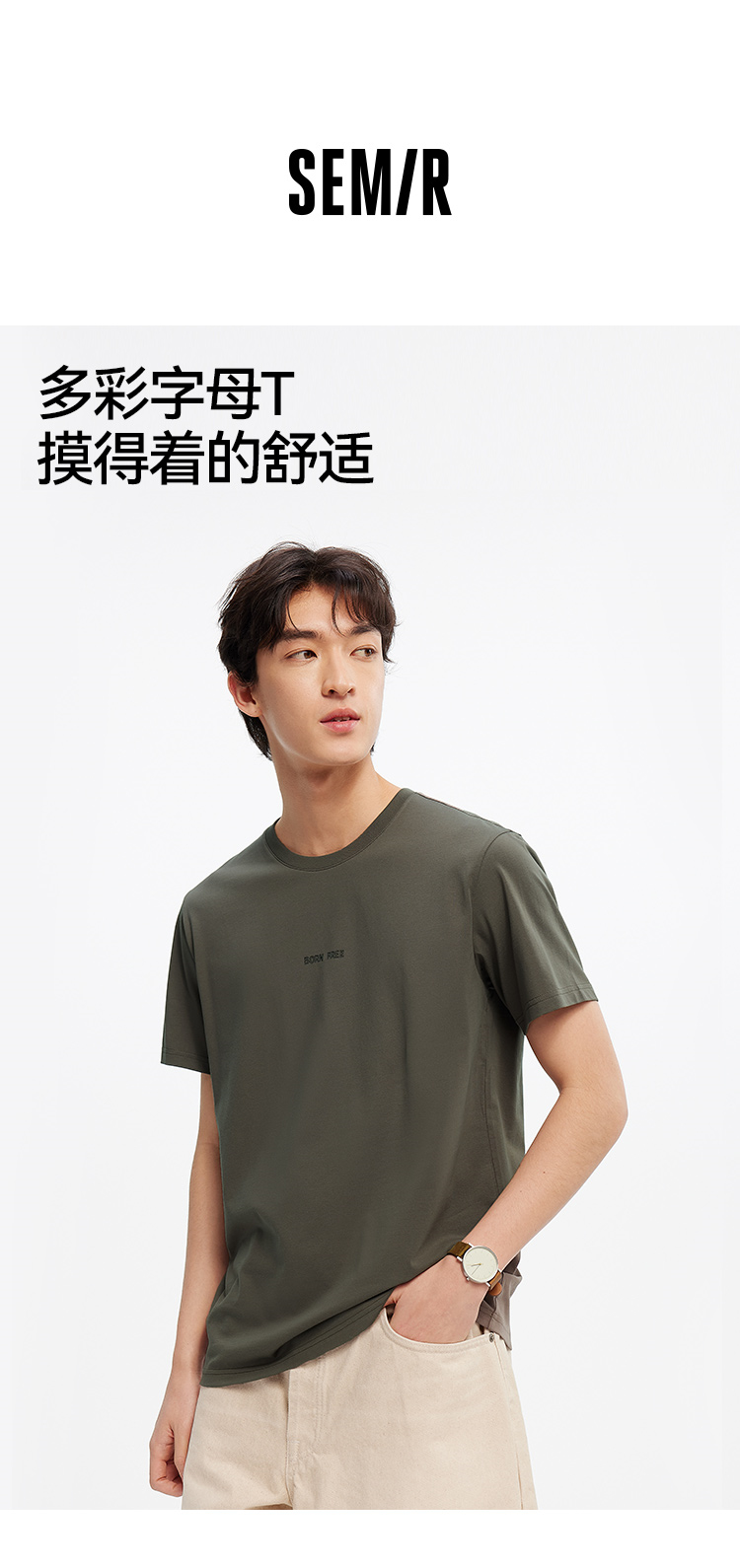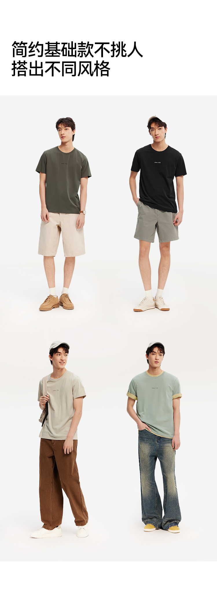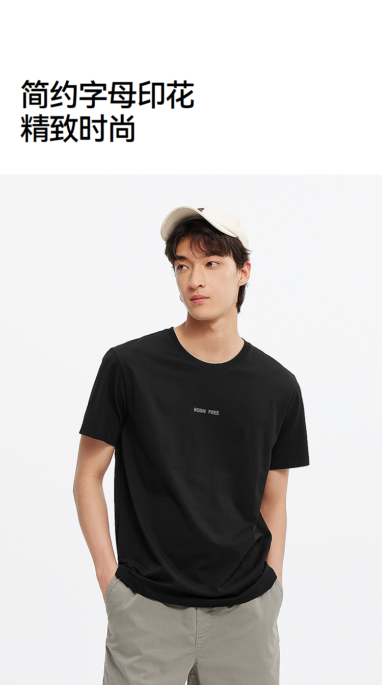 森马短袖T恤男夏季修身内搭百搭基础圆领上衣休闲字母印花针织衫