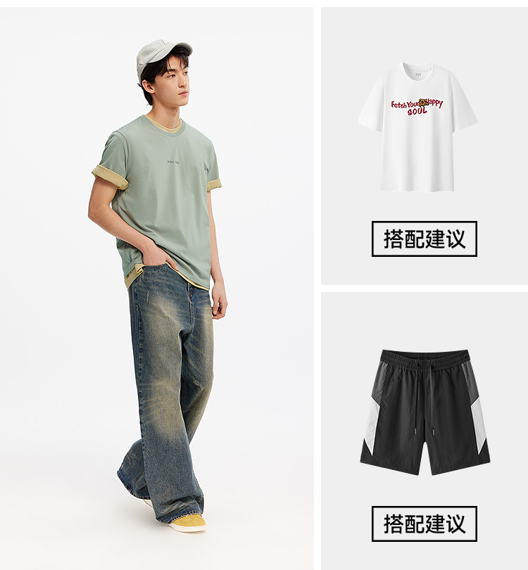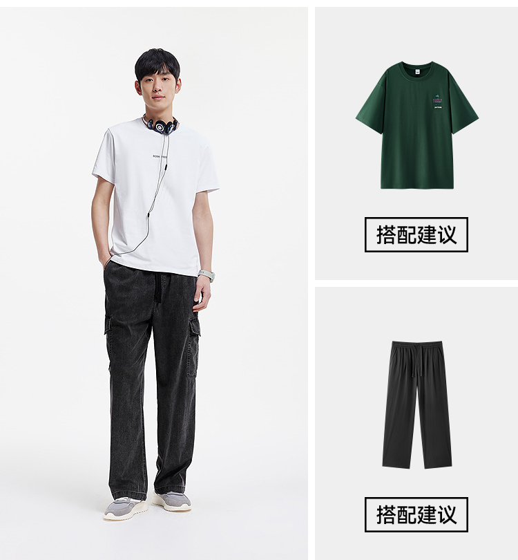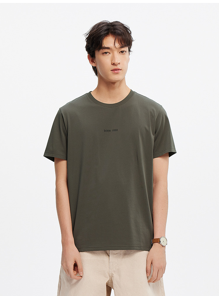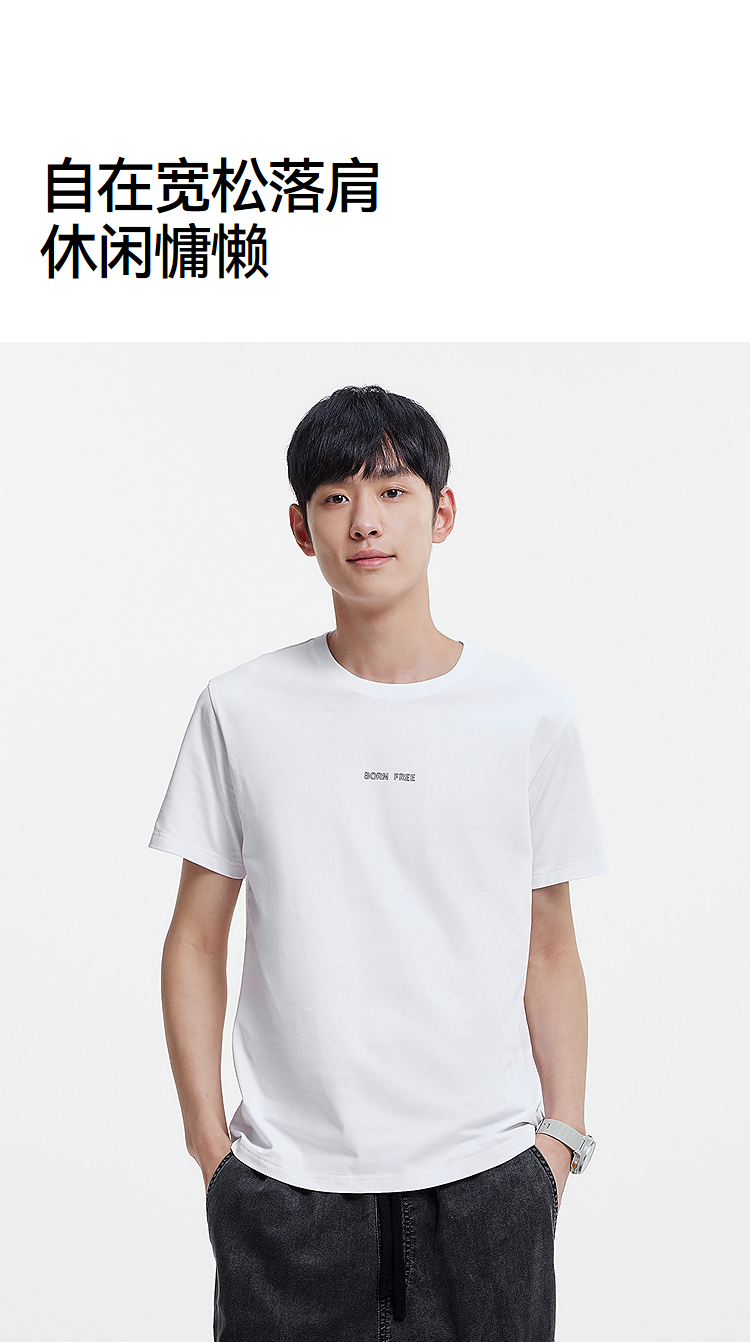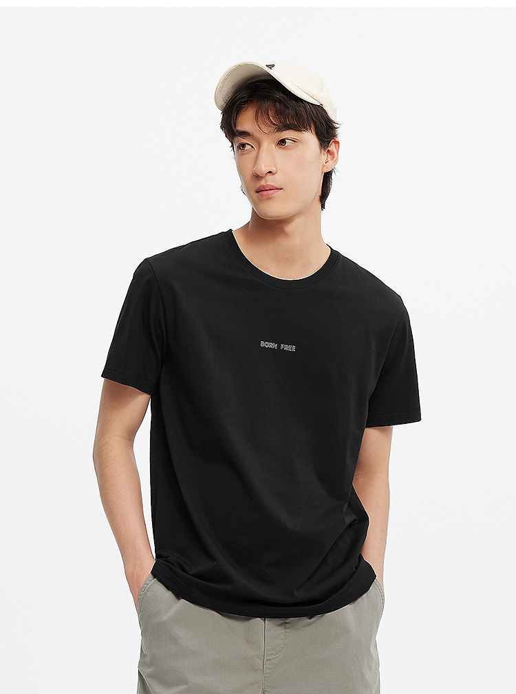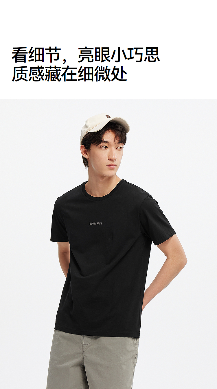 森马短袖T恤男夏季修身内搭百搭基础圆领上衣休闲字母印花针织衫