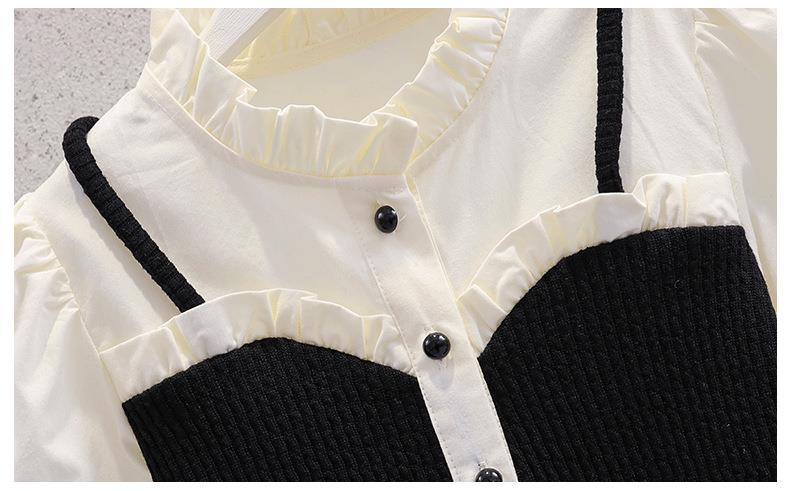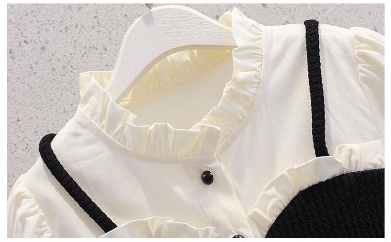 女童时髦洋气套装裙春秋装新款韩版网纱泡泡袖小香风公主裙两件套