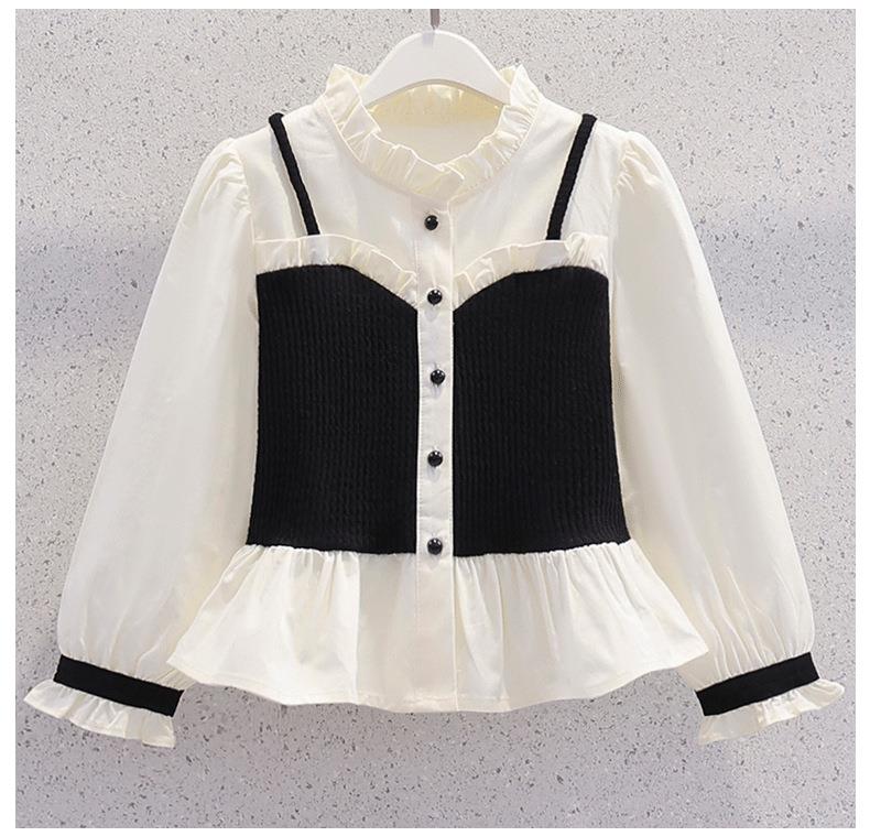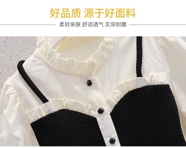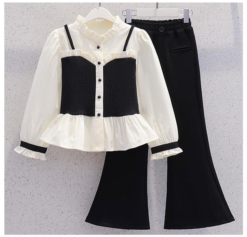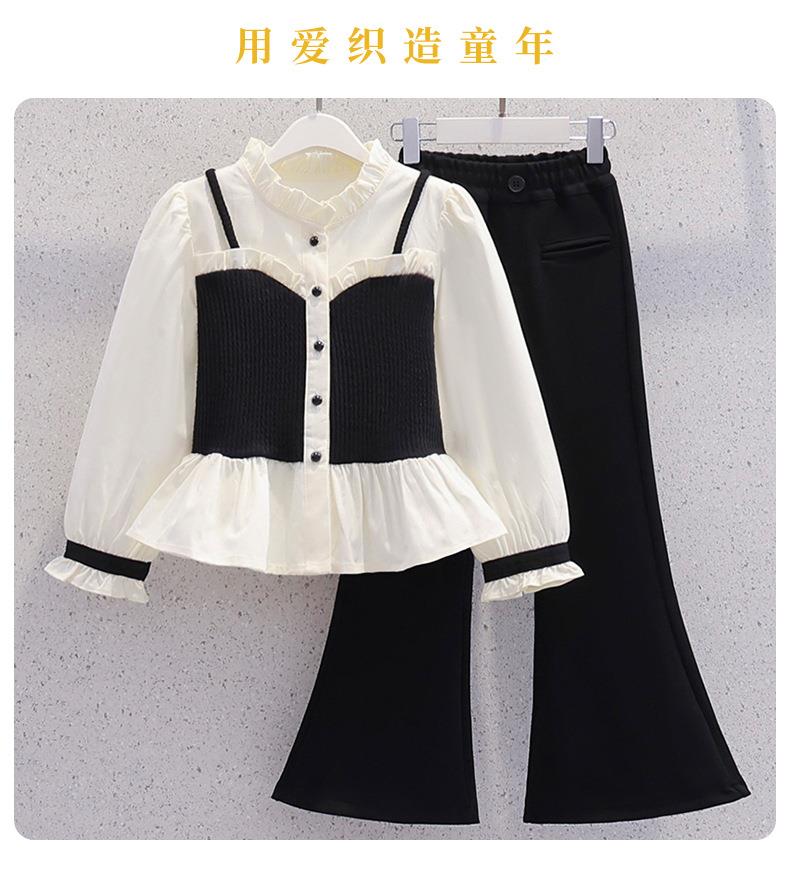 女大童洋气时髦套装春装气质女孩千金小香风儿童衬衫喇叭裤两件套